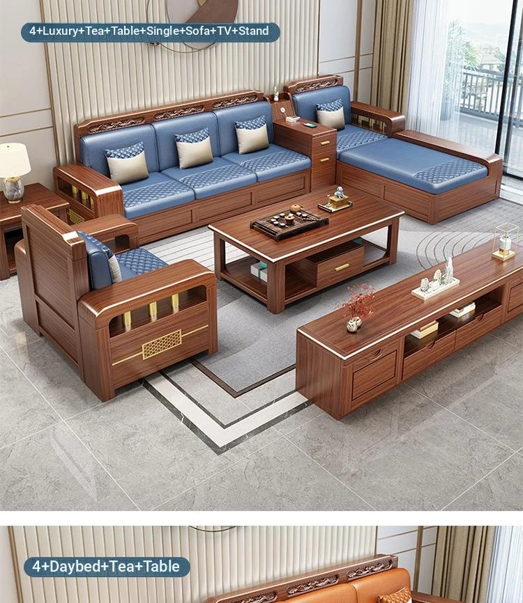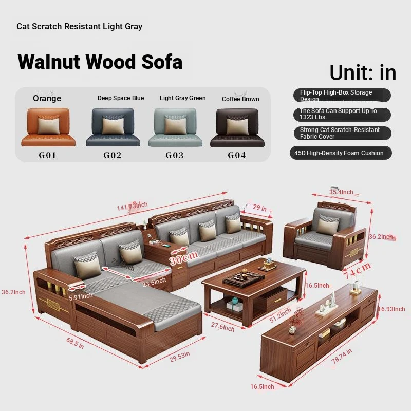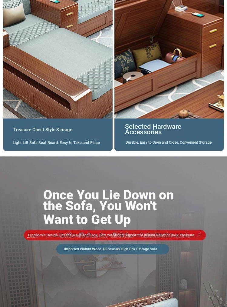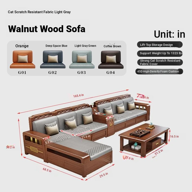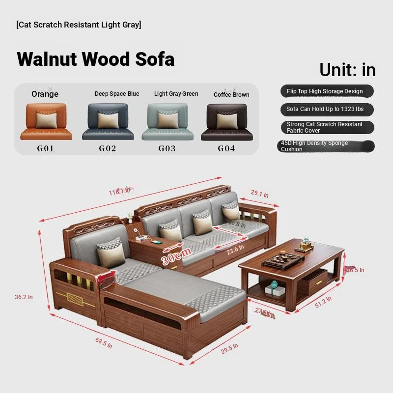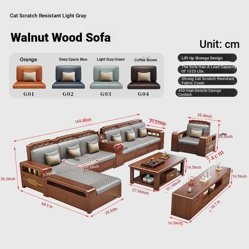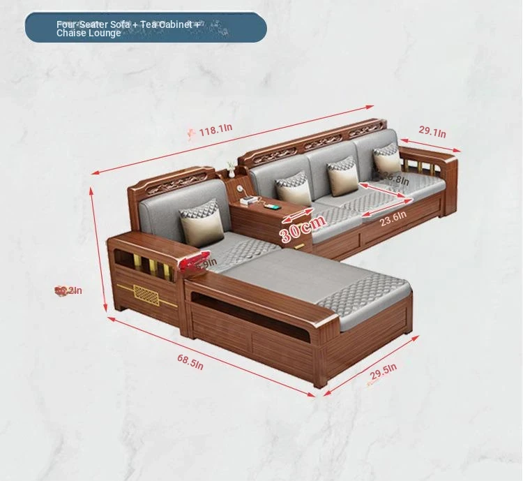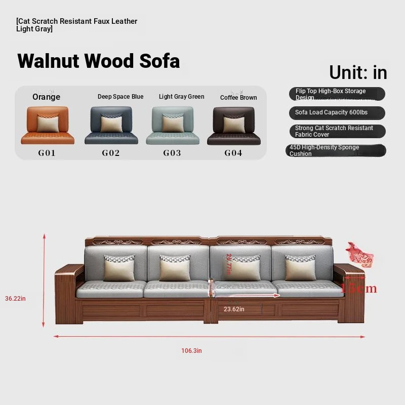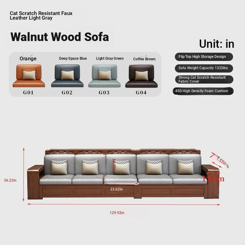 German Chinese-Style Solid Walnut Sofa Set - Versatile for Year-Round Use, Ideal for Small Spaces, with Stylish Storage Solutions for Your Living Room.