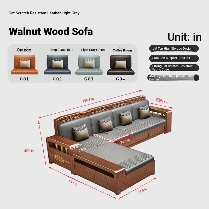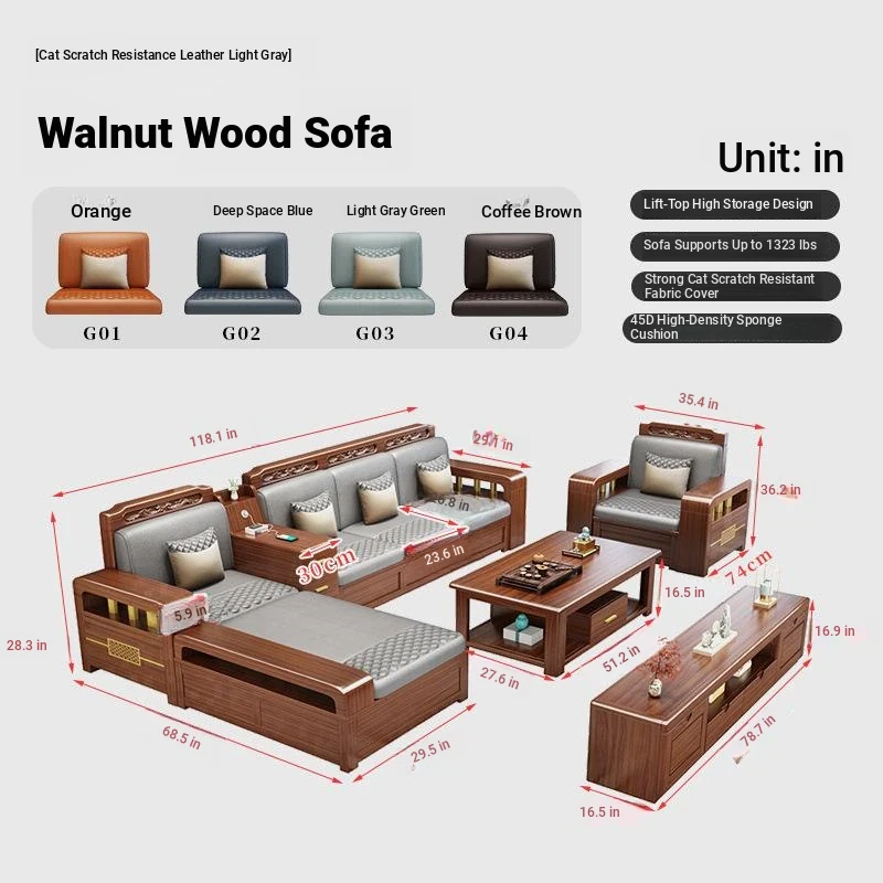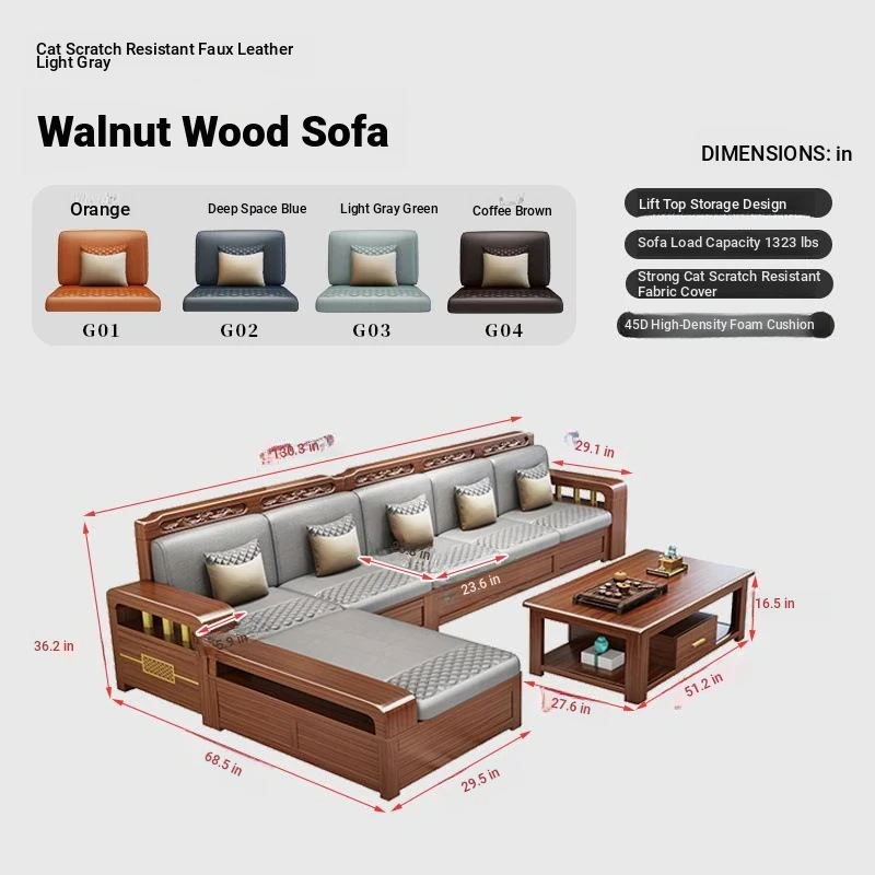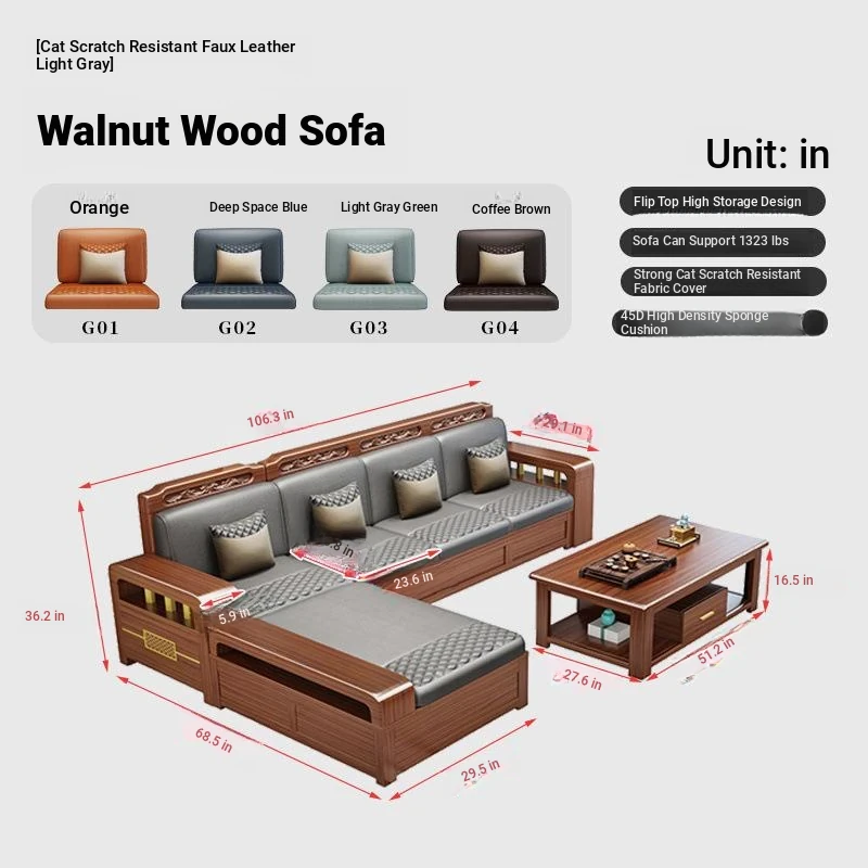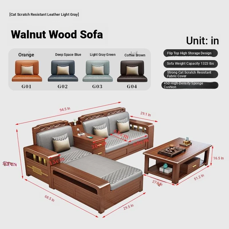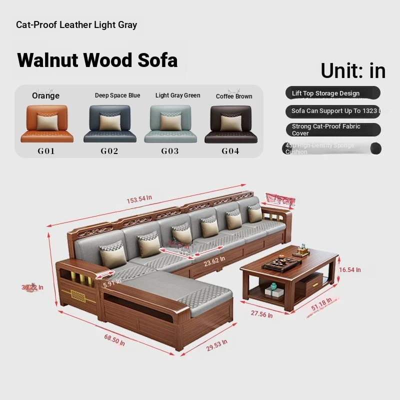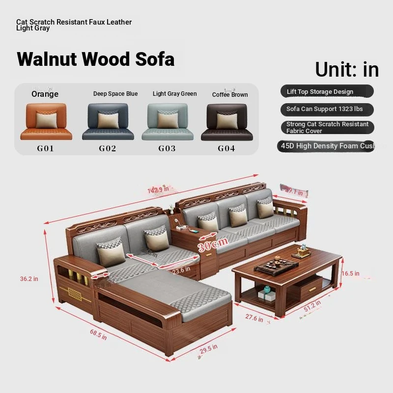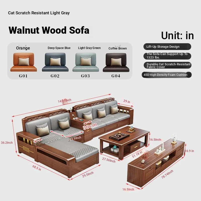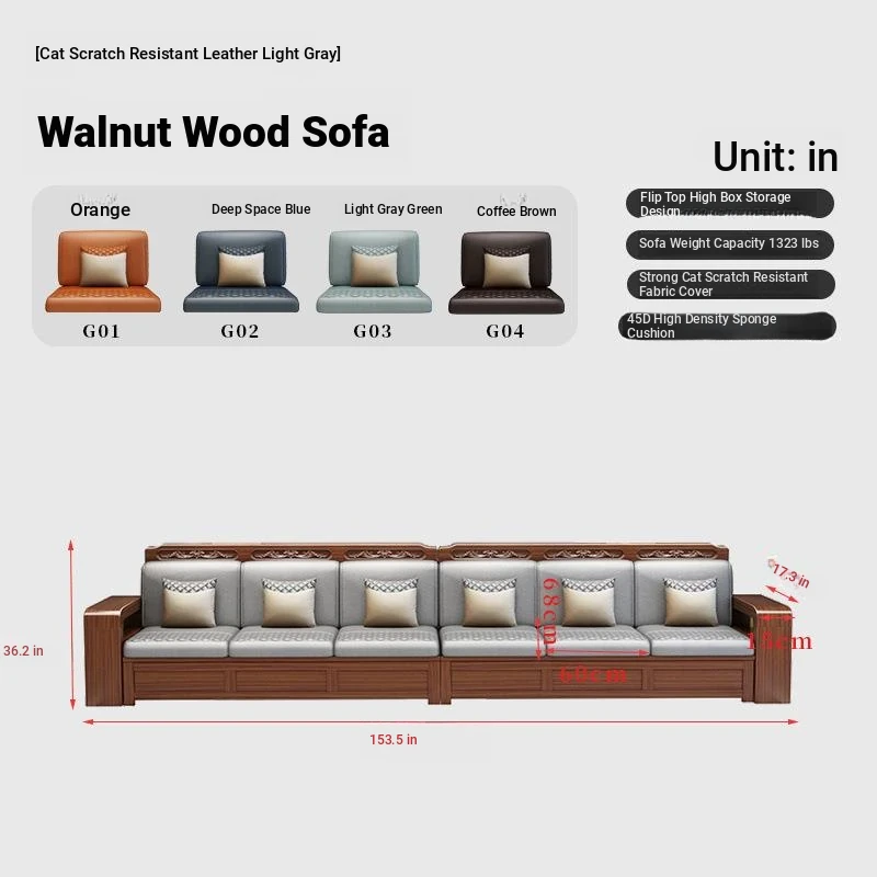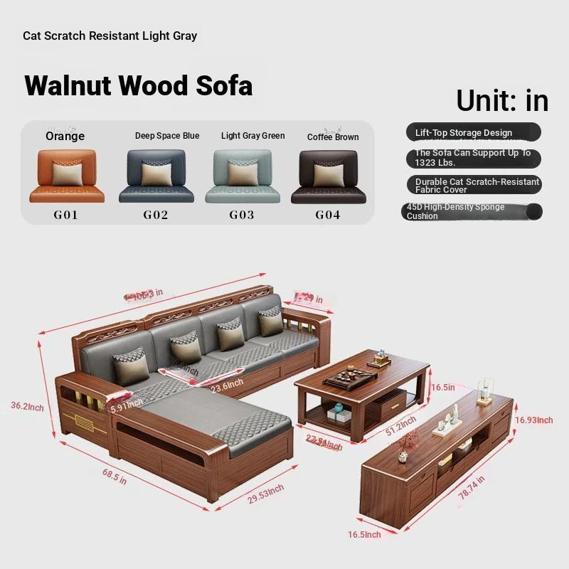 German Chinese-Style Solid Walnut Sofa Set - Versatile for Year-Round Use, Ideal for Small Spaces, with Stylish Storage Solutions for Your Living Room.