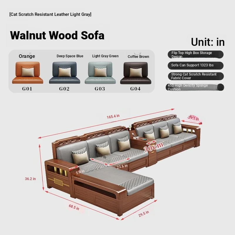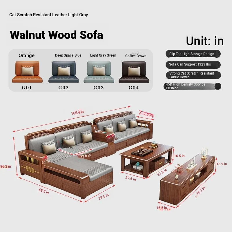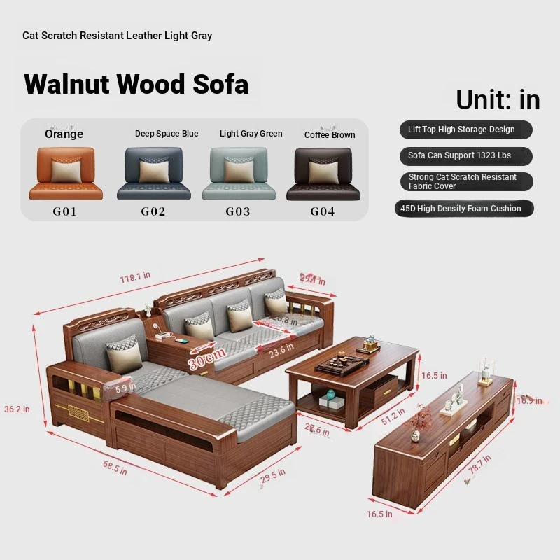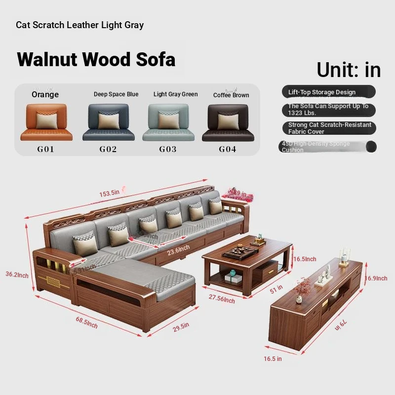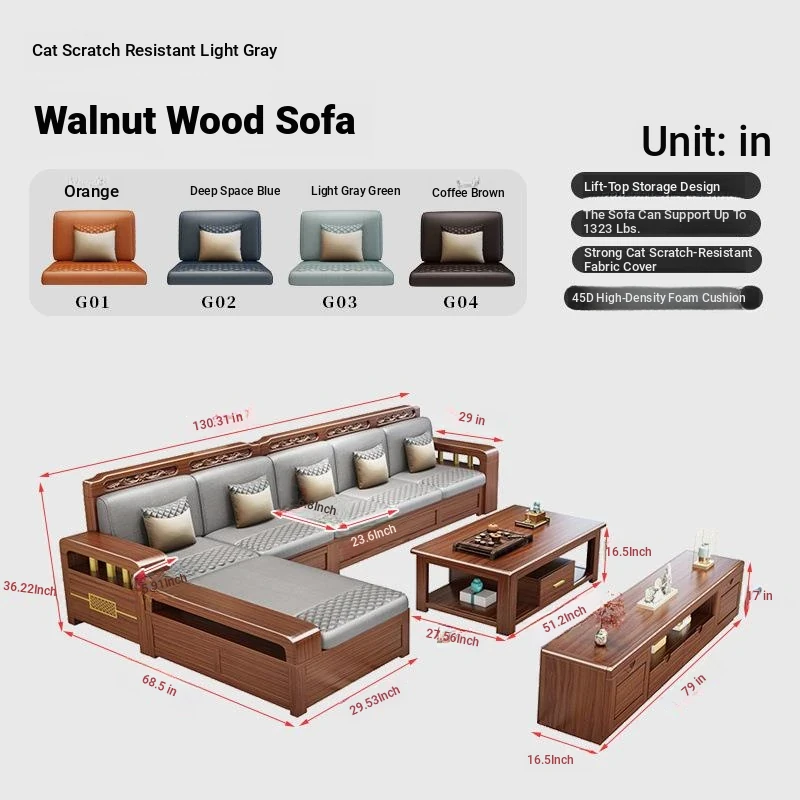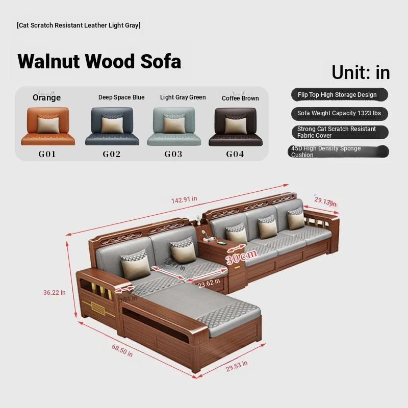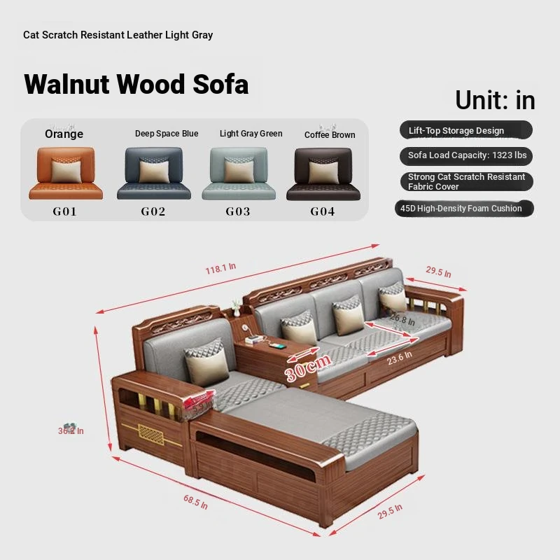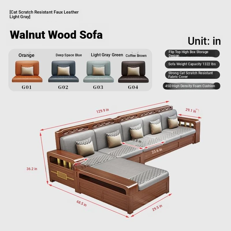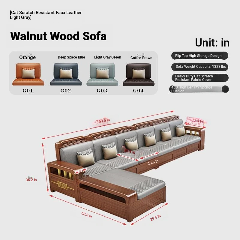 German Chinese-Style Solid Walnut Sofa Set - Versatile for Year-Round Use, Ideal for Small Spaces, with Stylish Storage Solutions for Your Living Room.