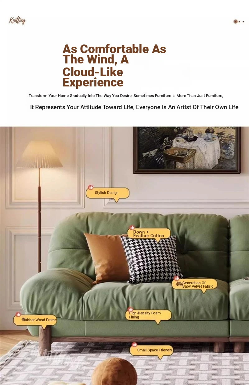 German Italian Style Light Luxury Cream Cloud Sofa – Modern Minimalist Fabric Couch for Small Spaces, Perfect for Living Rooms with Elevated Design