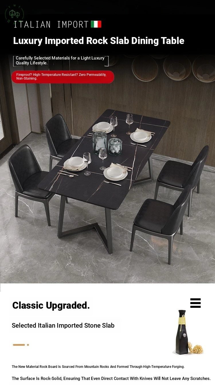 Italian Imported Minimalist Luxury Rectangular Dining Table and Chairs Set - Stylish Backrest Dining Chair for Small Spaces, Perfect for Home Dining