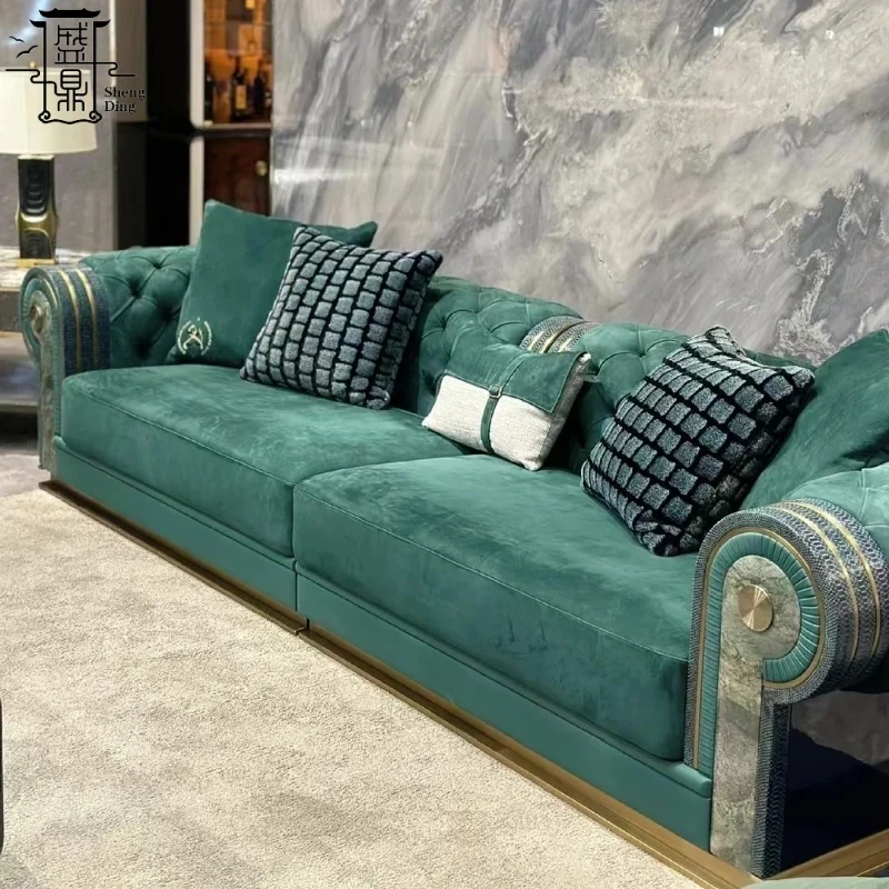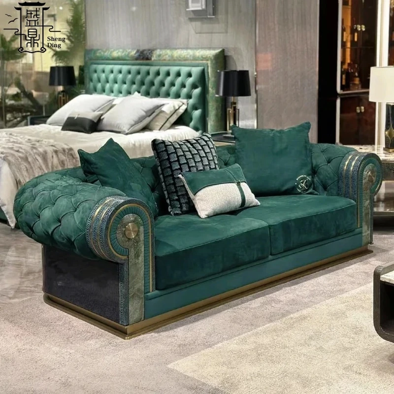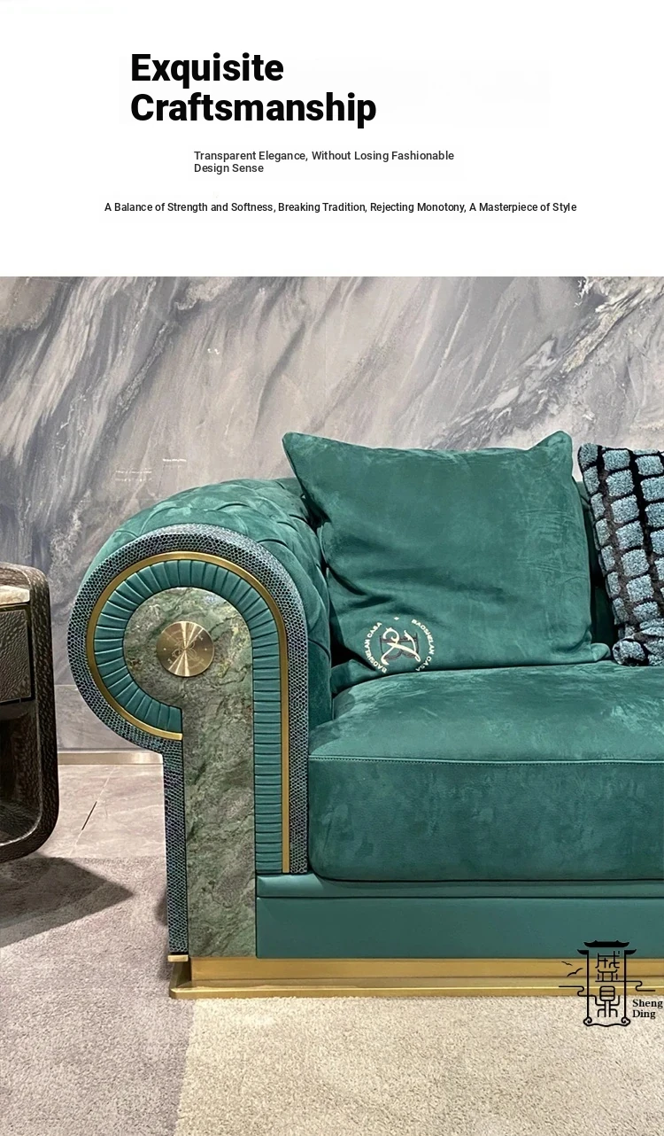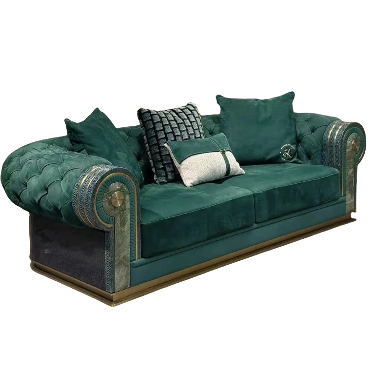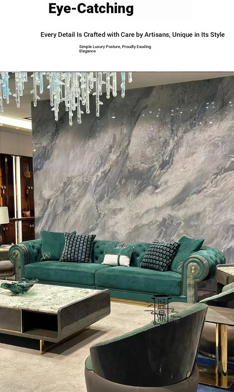 Italian Luxe Velvet Leather Sofa - Elegant Green with Decorative Buttons for Modern Villas and High-End Apartments, Perfect for Upscale Living Rooms