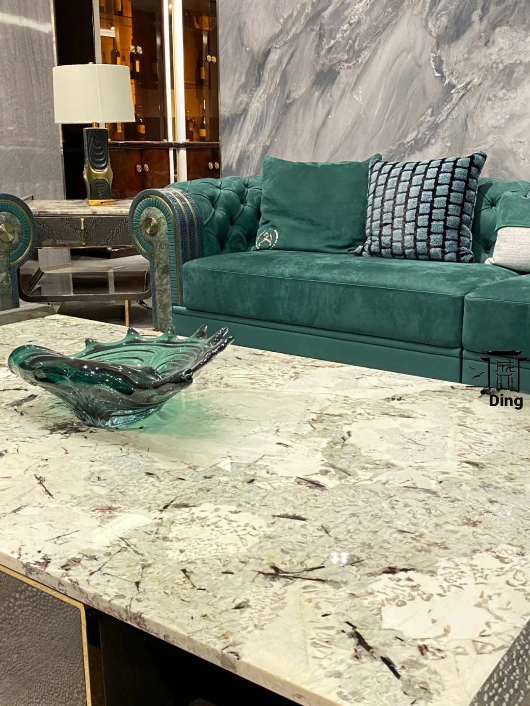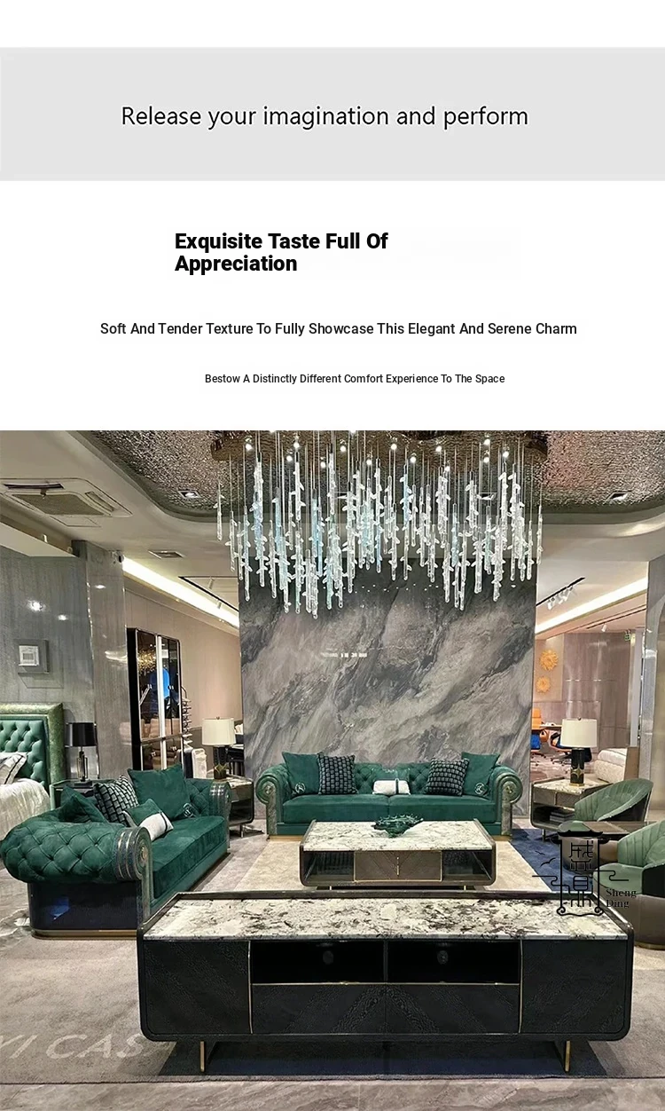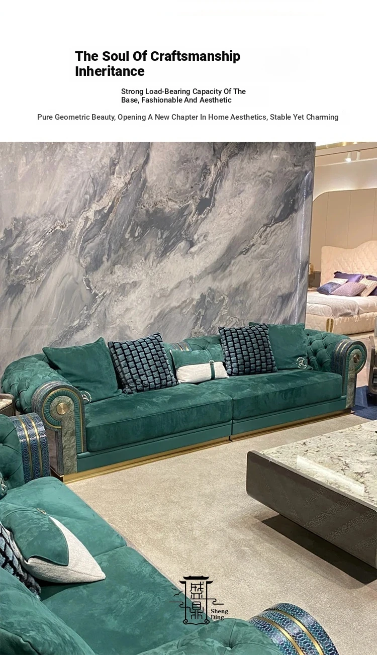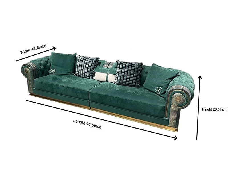 Italian Luxe Velvet Leather Sofa - Elegant Green with Decorative Buttons for Modern Villas and High-End Apartments, Perfect for Upscale Living Rooms