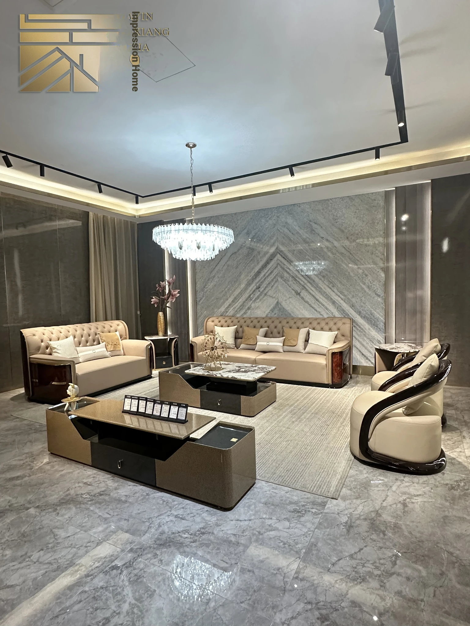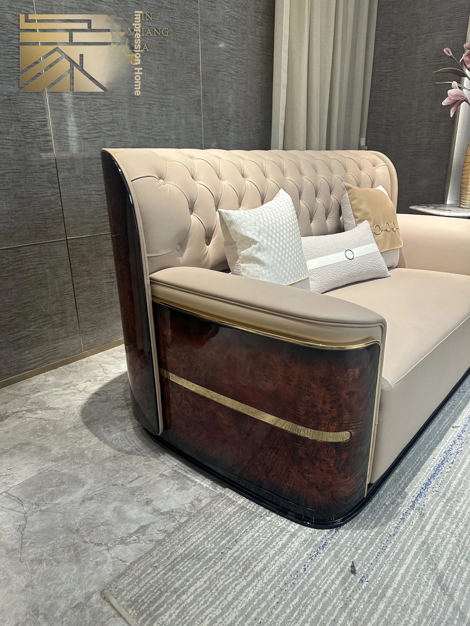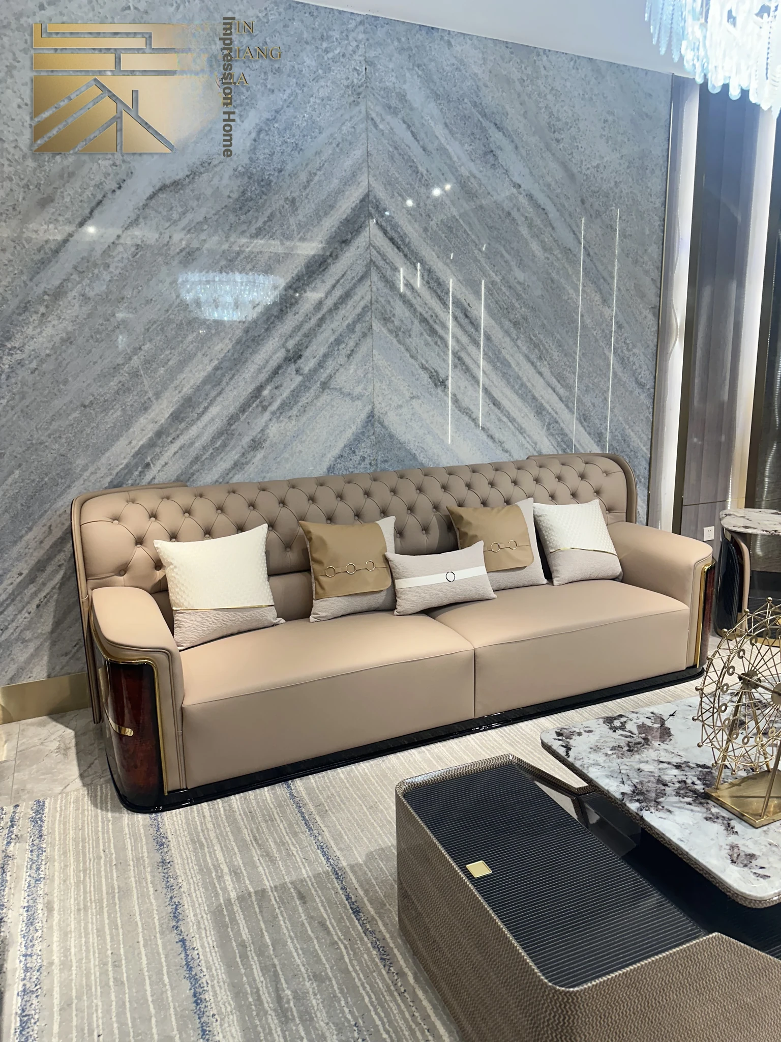 Italian Luxury High-Back Sofa - Modern Minimalist Designer Couch for Villas and Spacious Apartments, Made of Top-Grain Leather with Elegant Tufted Design