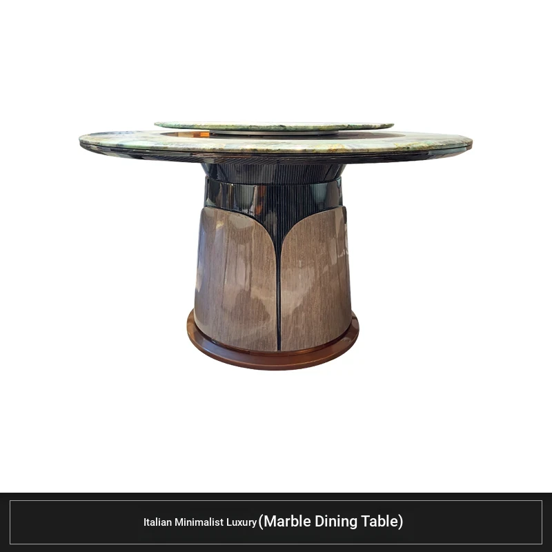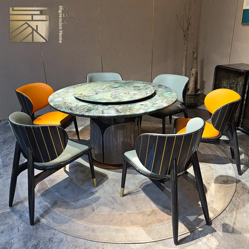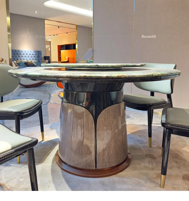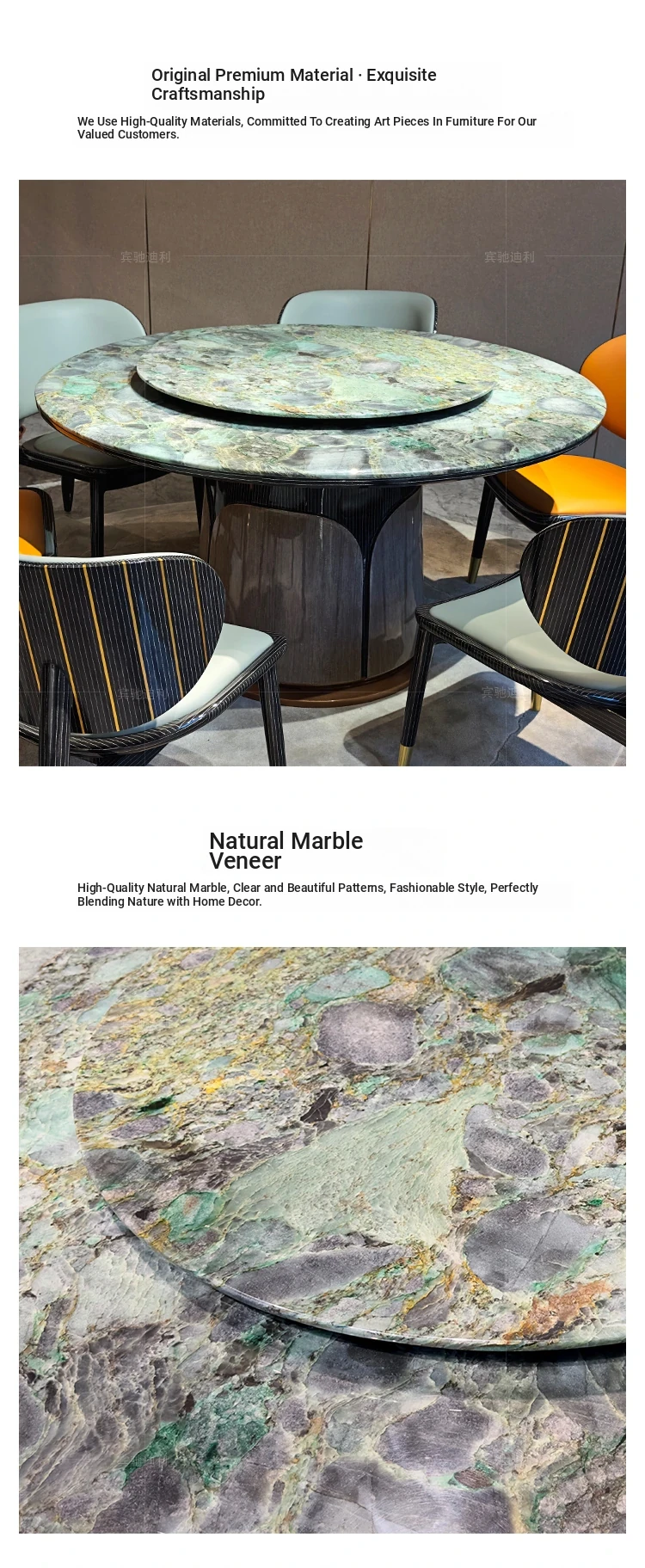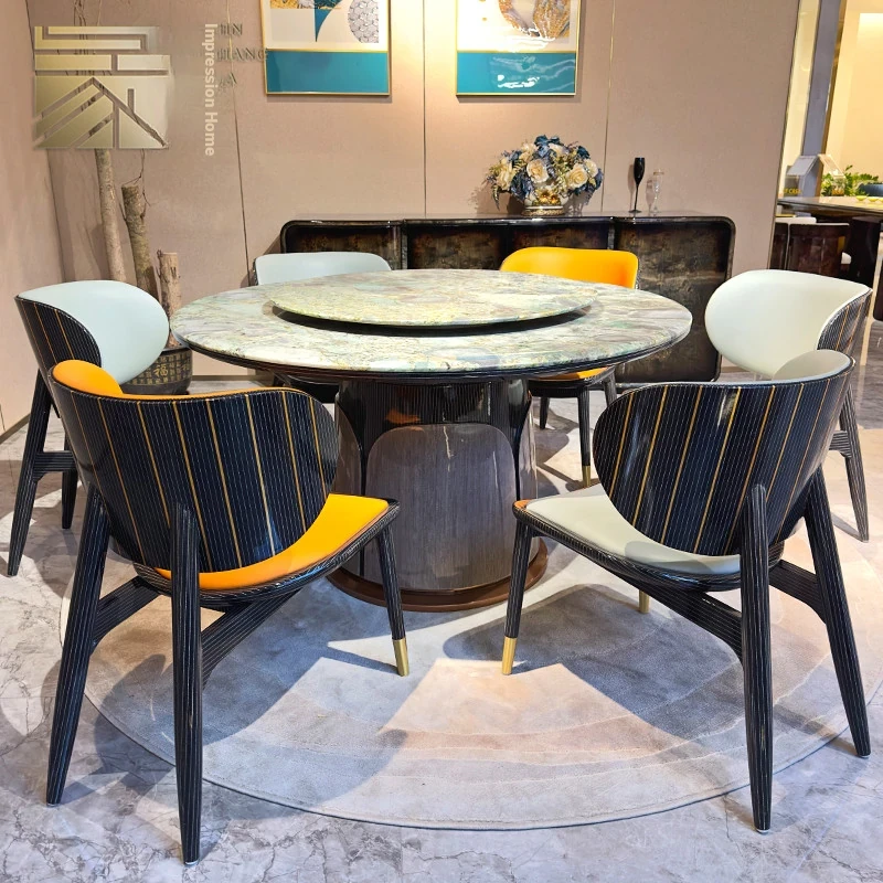 Italian Luxury Marble Round Dining Table - High-End Natural Stone Furniture for Villas, Designer Chairs Included, Perfect for Elegant Dining Experiences