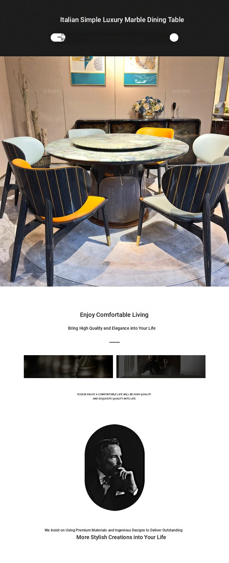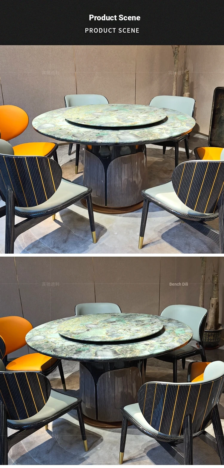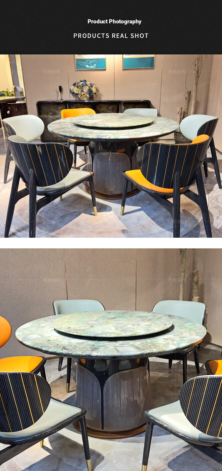 Italian Luxury Marble Round Dining Table - High-End Natural Stone Furniture for Villas, Designer Chairs Included, Perfect for Elegant Dining Experiences