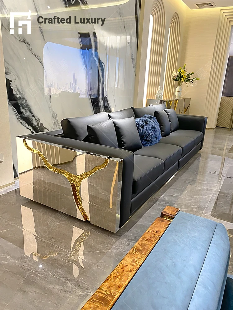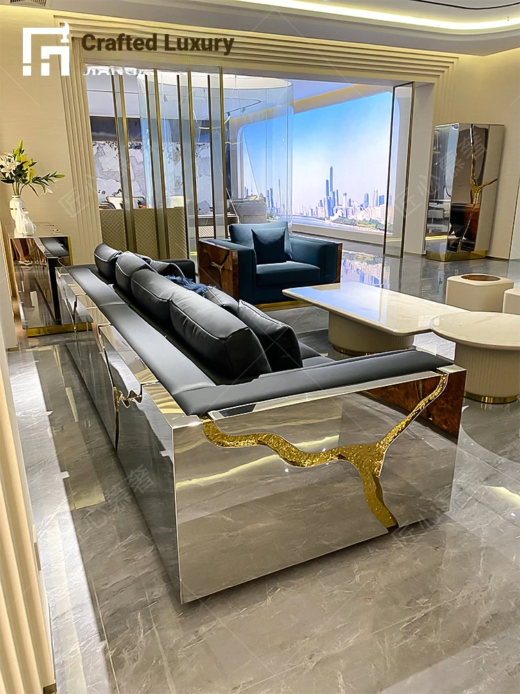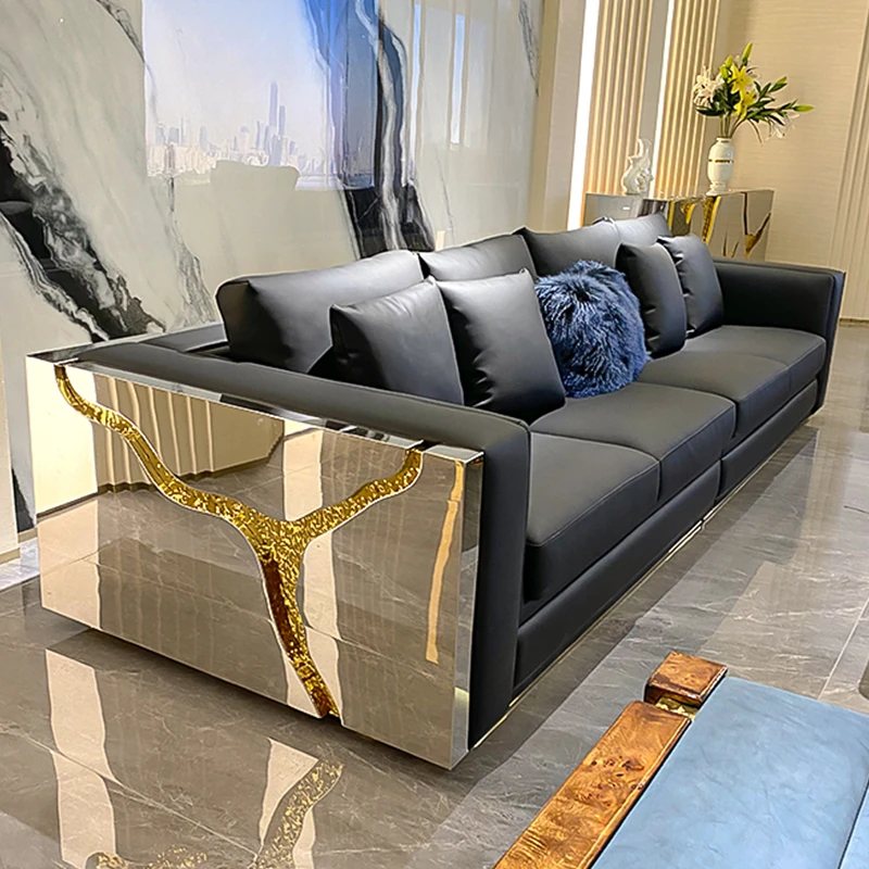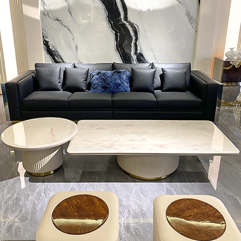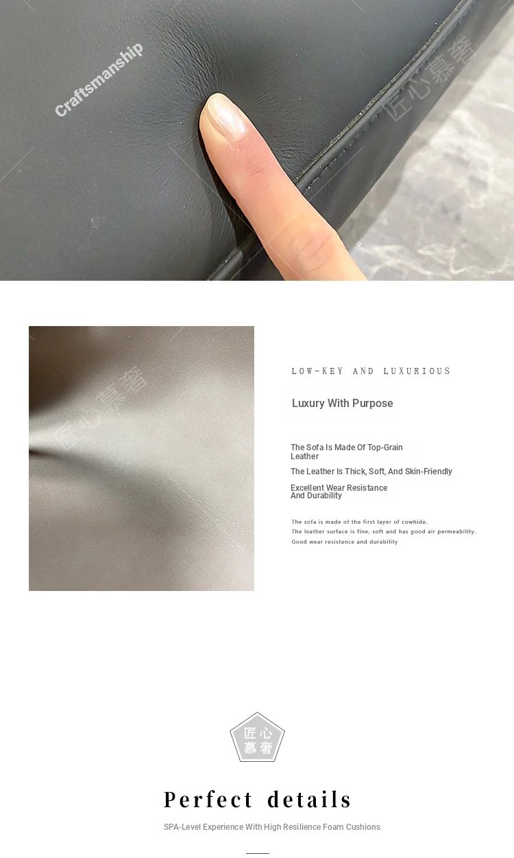 Italian Luxury Modern Minimalist Top Grain Leather Sofa Set for Spacious Luxury Homes and Villas - Perfect for Stylish Living Rooms
