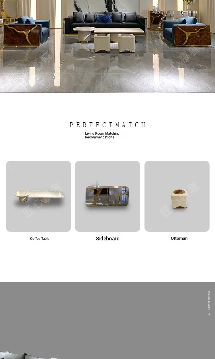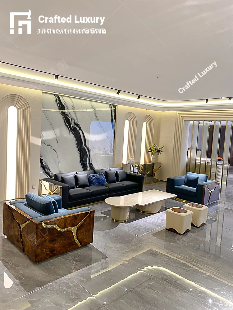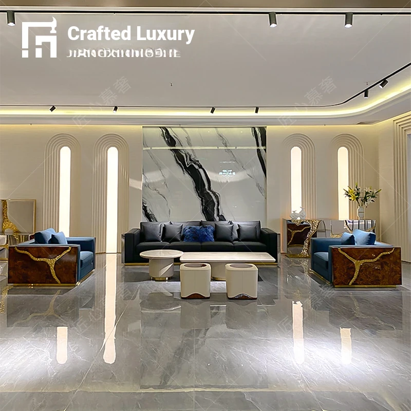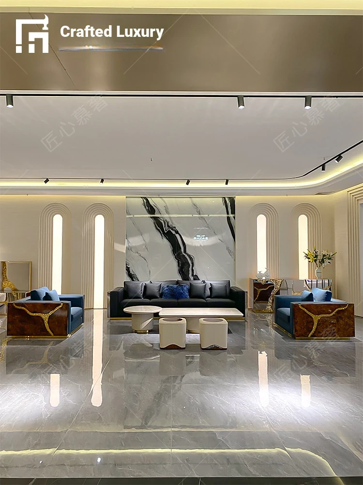 Italian Luxury Modern Minimalist Top Grain Leather Sofa Set for Spacious Luxury Homes and Villas - Perfect for Stylish Living Rooms