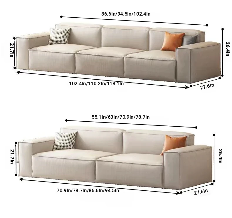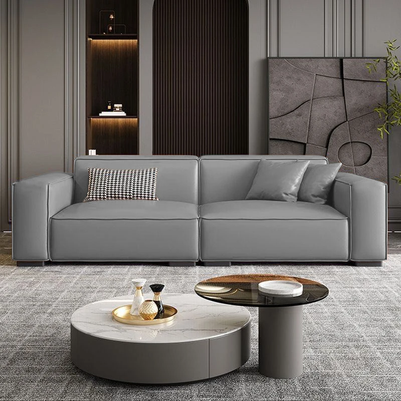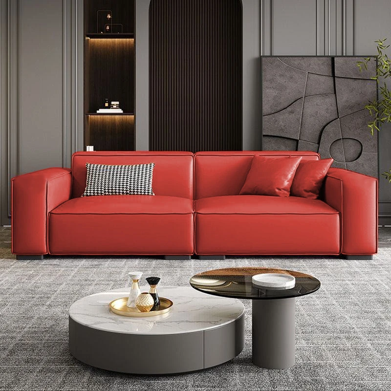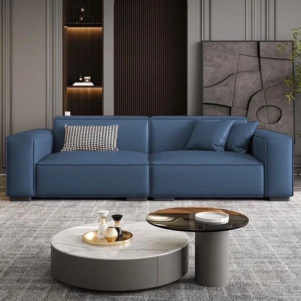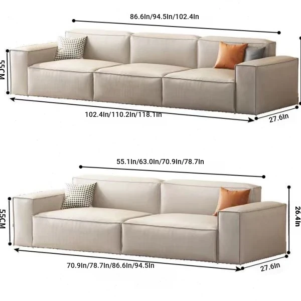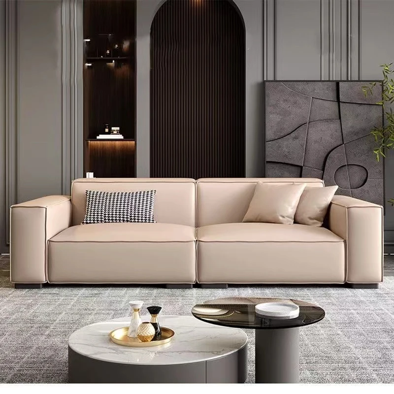 Italian Minimalist Luxury Sofa for Small Apartments – Modern Fabric and Leather Couch for Living Room, Stylish and Space-Saving Block Design