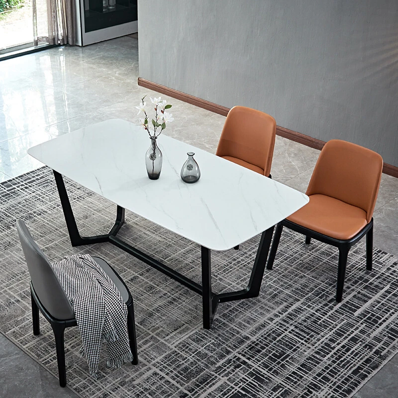 Italian Minimalist Rectangular Dining Table and Chair Set - Perfect for Small Spaces, Featuring Luxurious Leather Chairs for a Chic Dining Experience