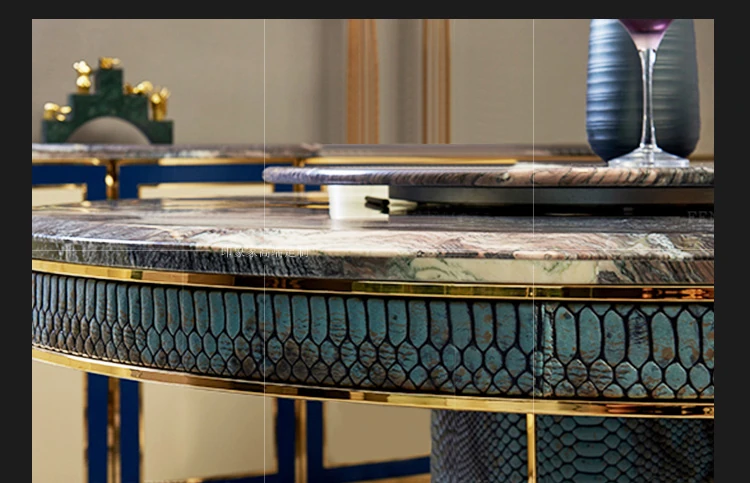Italian Post-Modern Luxury Round Dining Table and Chair Set - High-End Villa Restaurant Bentley Marble Furniture for Elegant Dining Experiences