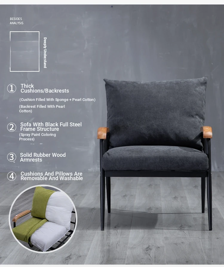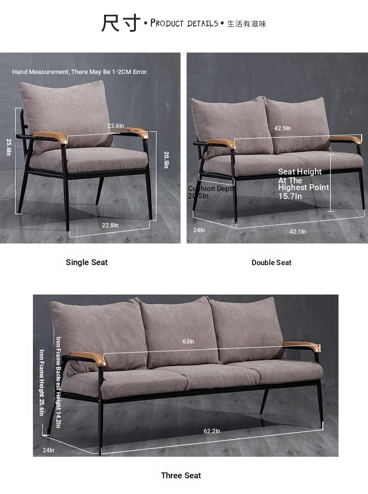 Japanese Style Fabric Sofa for Small Living Rooms - Modern Minimalist Two and Three-Seater with Solid Wood and Iron Frame, Perfect for Cozy Spaces