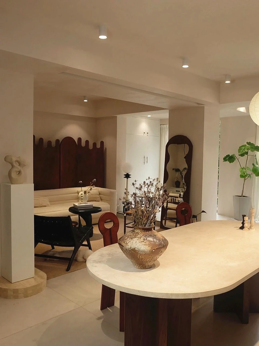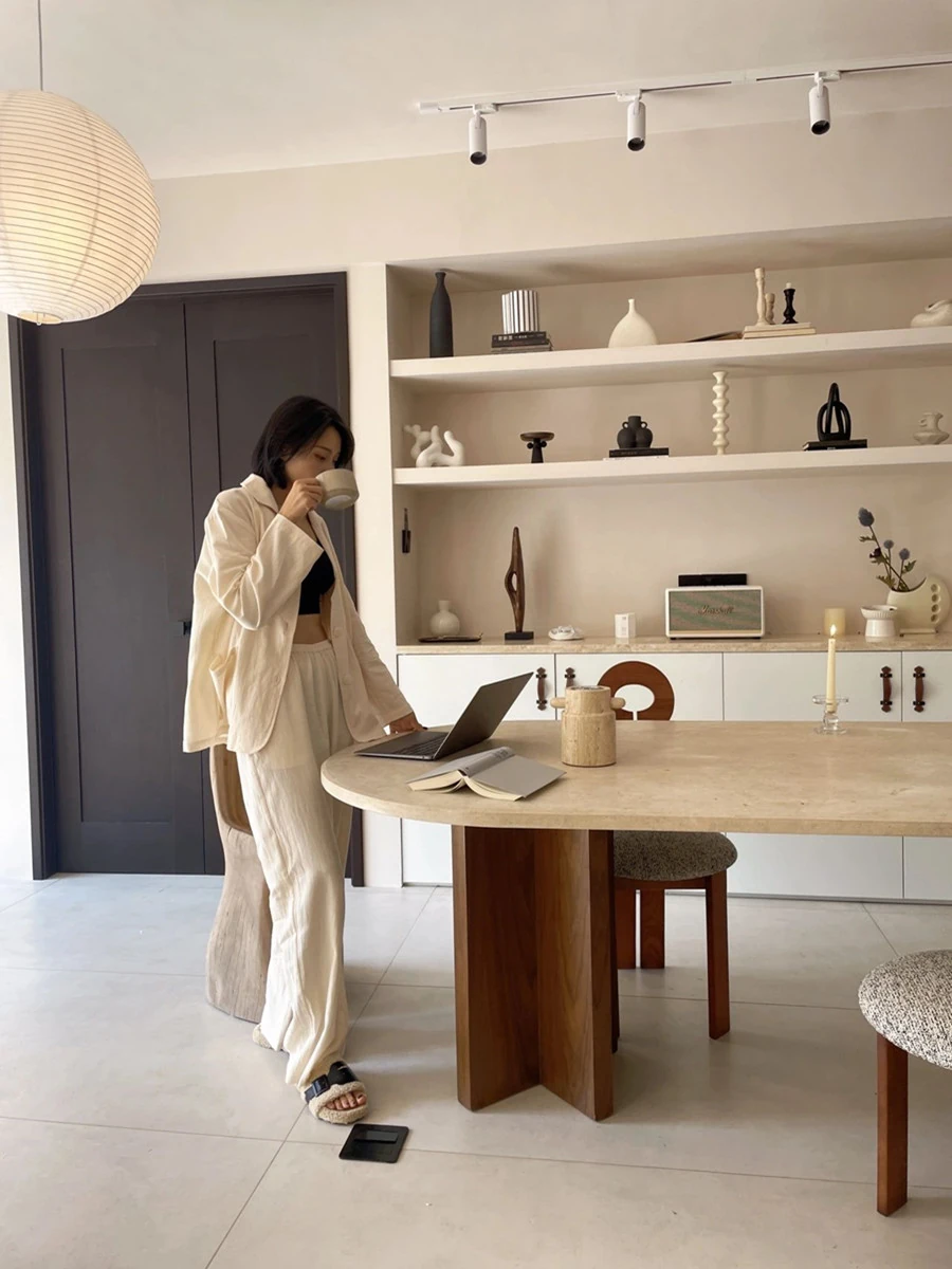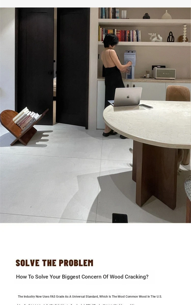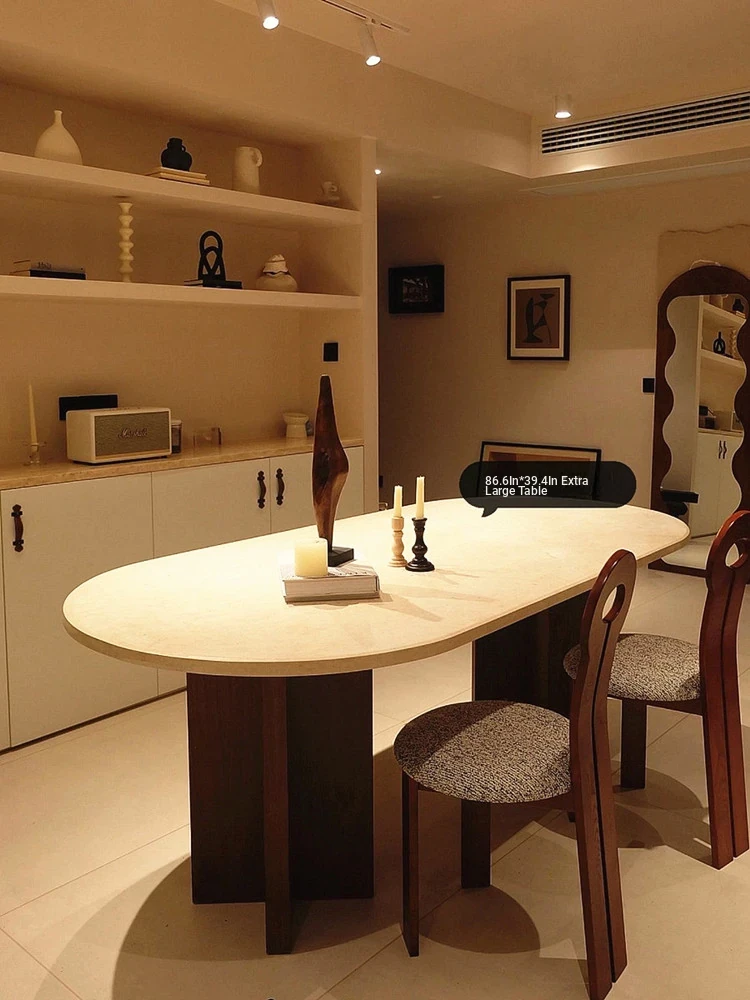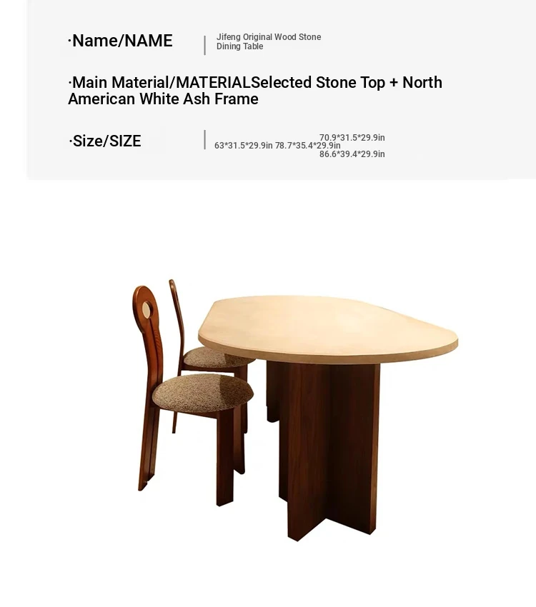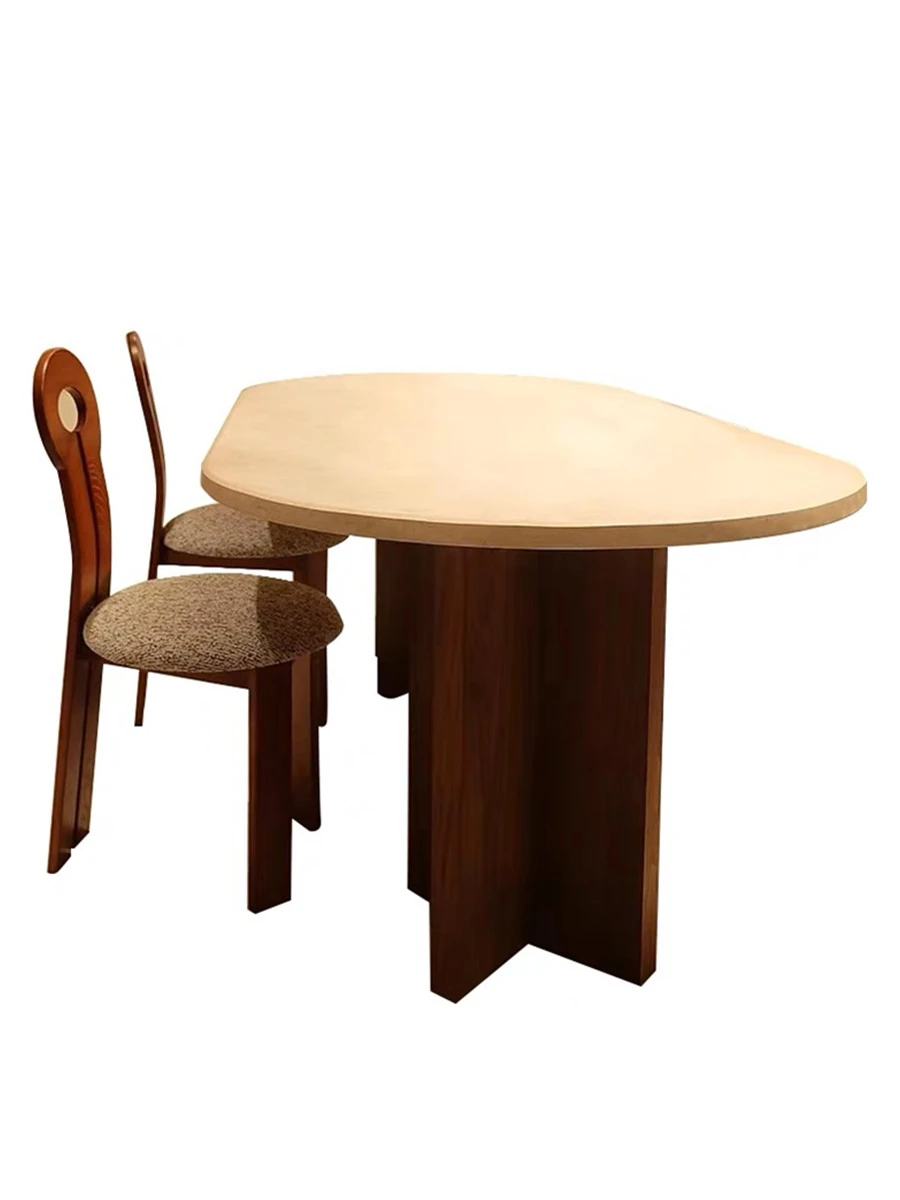 Japanese-Style Solid Wood Dining Table with Dongshi Marble Top - Authentic Mid-Century Wabi-Sabi Design Meets French Cream Aesthetic - Perfect for Elegant Dining Spaces