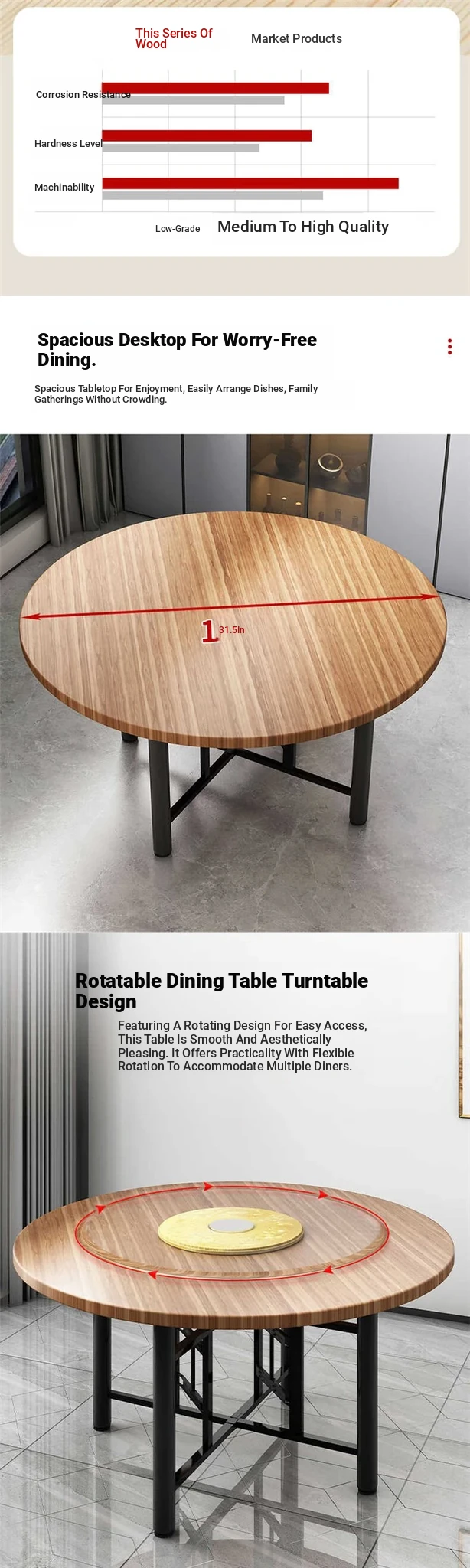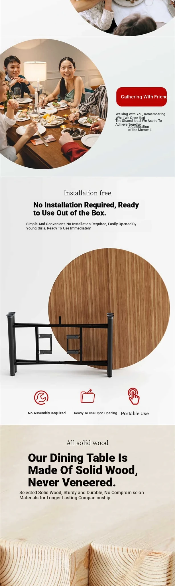 Laitilang Thickened Round Dining Table - Solid Wood, Perfect for Small Spaces, Ideal for Homes, Restaurants, and Hotels - Spacious Round Tabletop for Family Meals and Gatherings