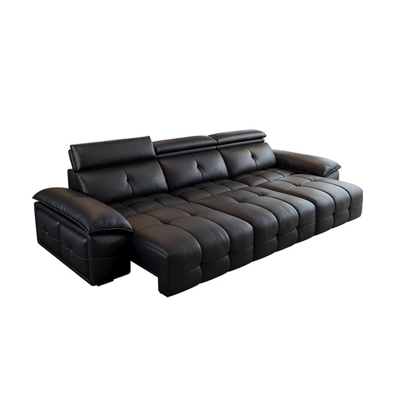 Lawrence Black Italian Genuine Leather Sofa Bed - Stylish Modern Minimalist Design with Piano Key Accents for Small Spaces, Perfect for Your Living Room!