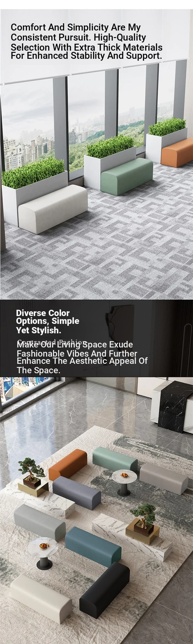 Long Bench for Dance Studios, Lounge Areas, Reception Spaces, and Clothing Stores - Stylish Sofa Benches for Comfort and Style in Your Business