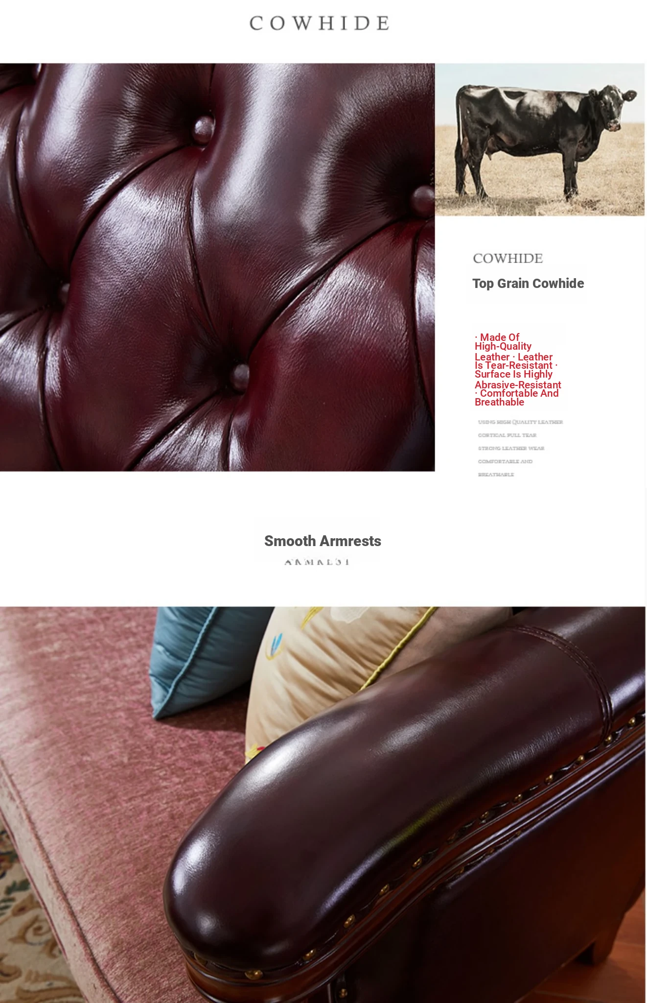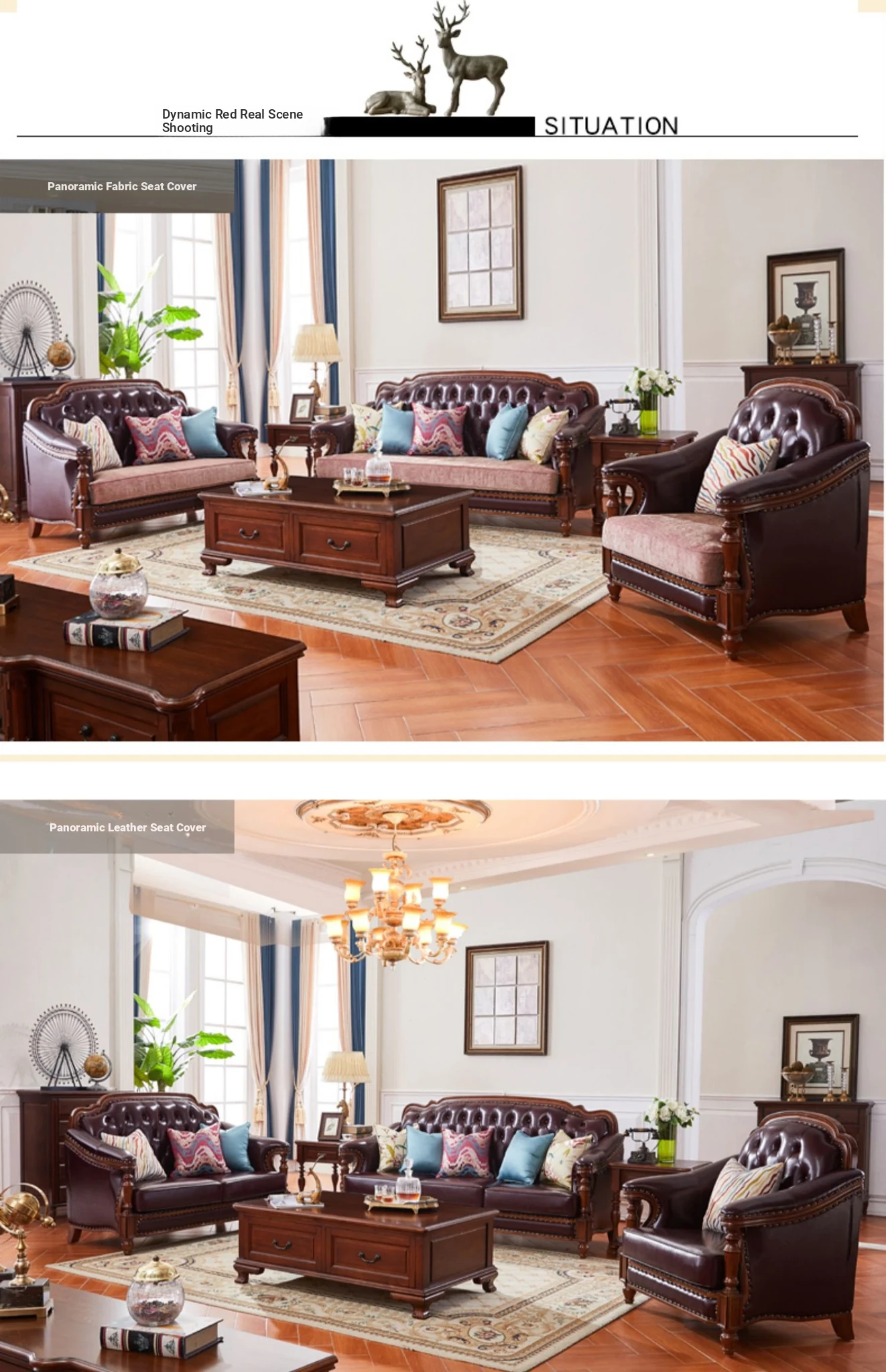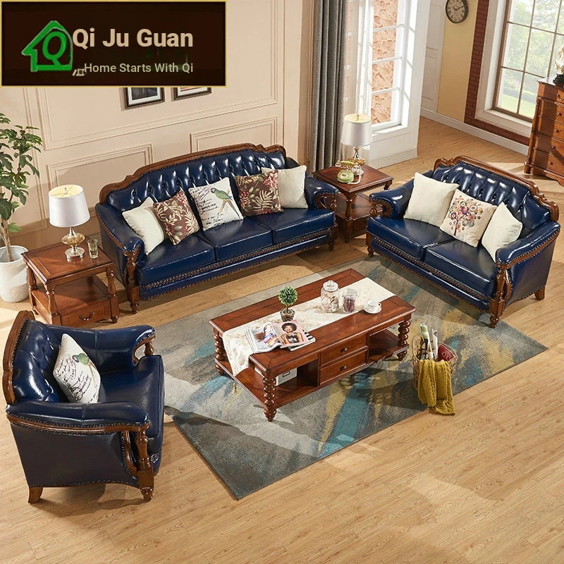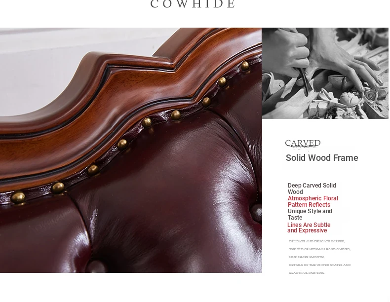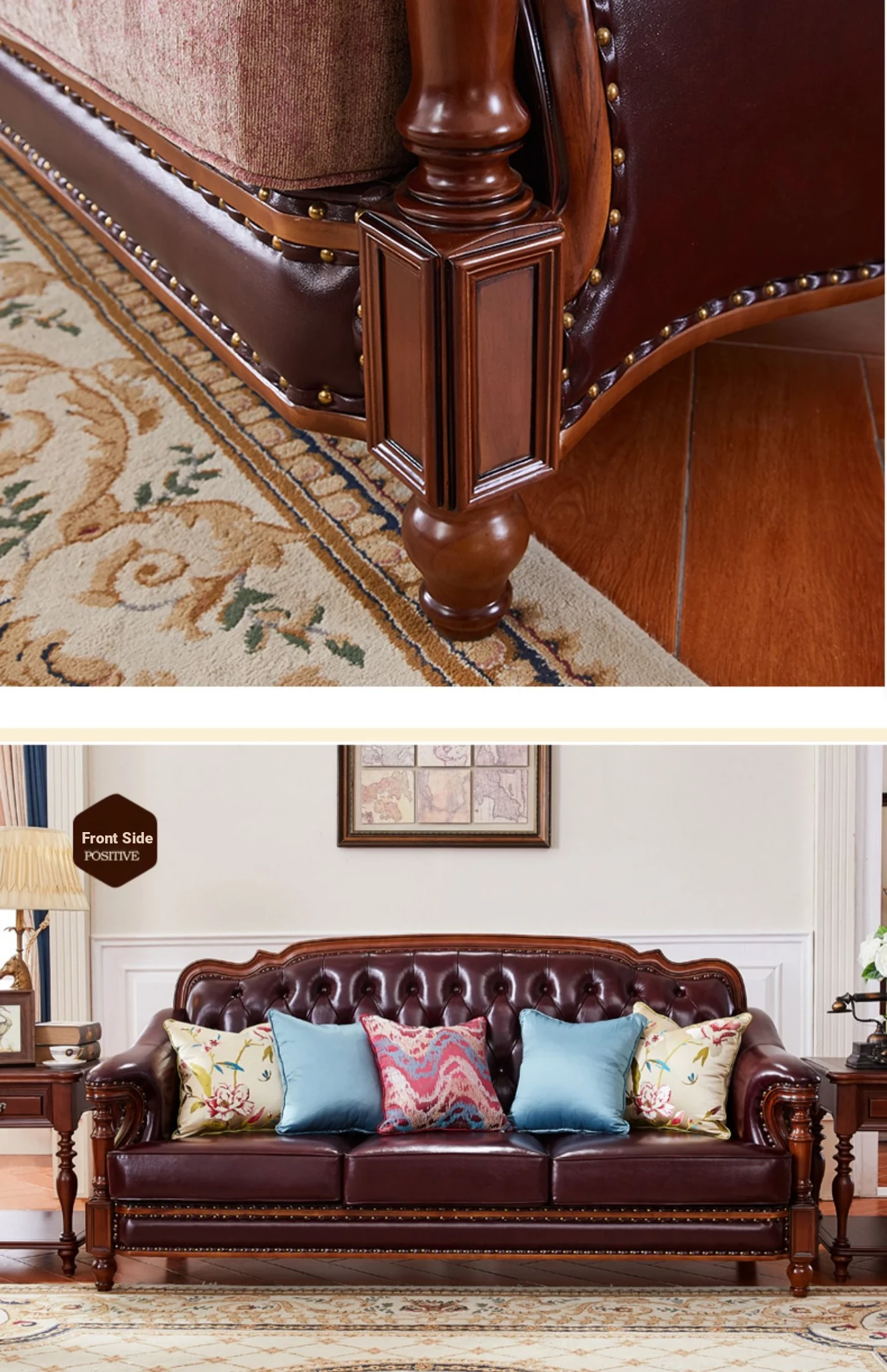Luxurious American Genuine Leather Sofa Set - Top Grain Cowhide with Solid Wood Frame, 3-Seater Living Room Furniture in Elegant Red-Brown Color