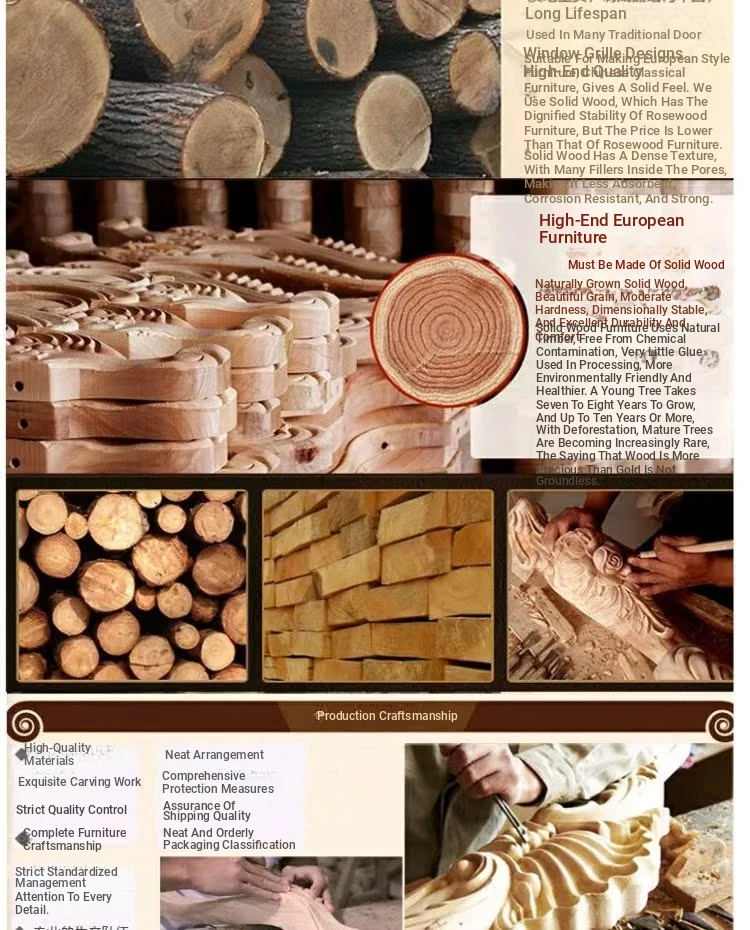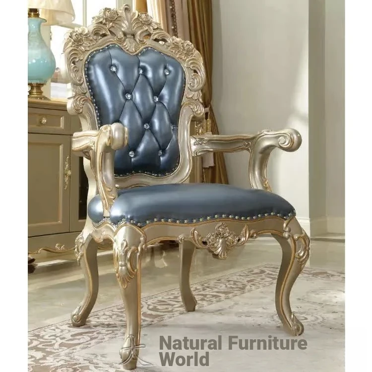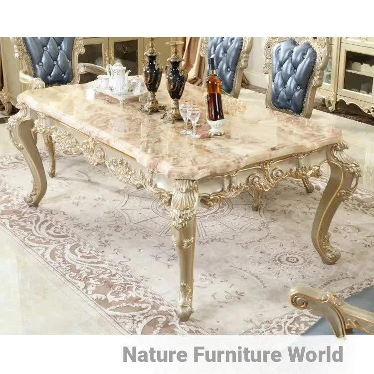 Luxurious European Solid Wood Carved Dining Table and Chairs in Italian Champagne Color - High-End French Restaurant Furniture Set