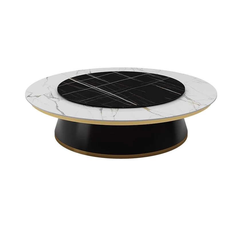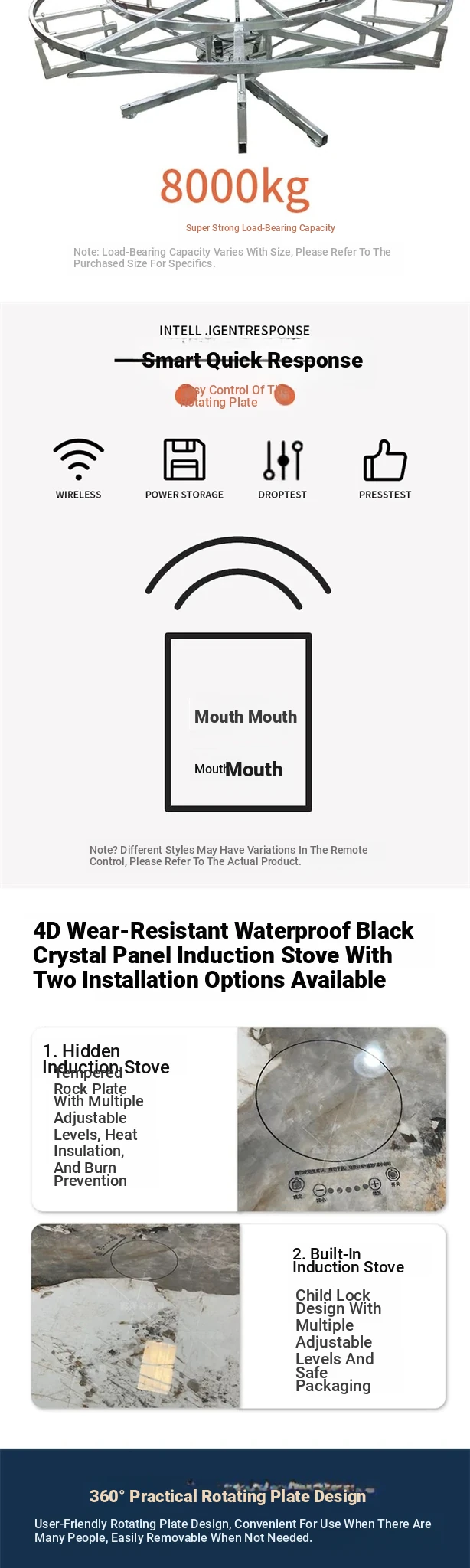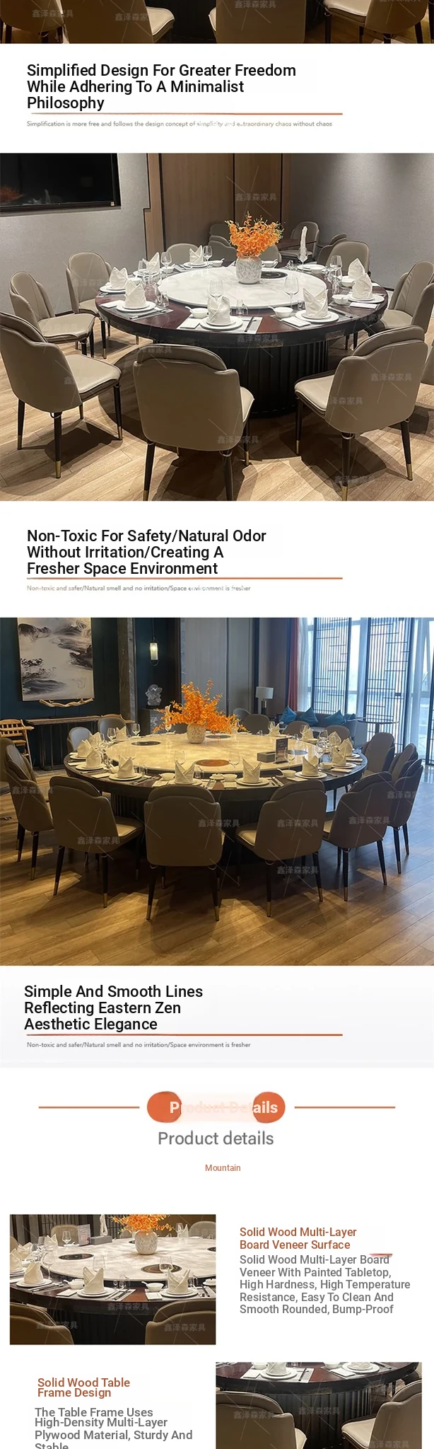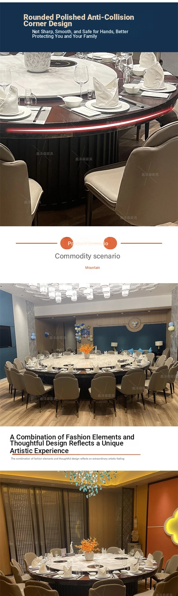 Luxury Electric Dining Table with Hidden Induction Cooktop – Round, Rotatable, and Height Adjustable – Ideal for Hotel Private Rooms, Featuring Elegant Rock Plate and Solid Wood Design.