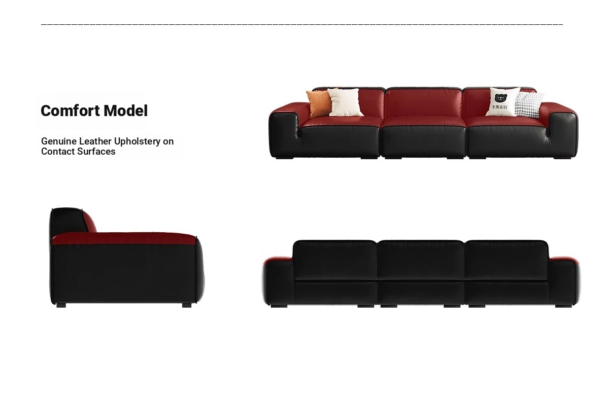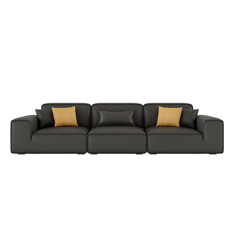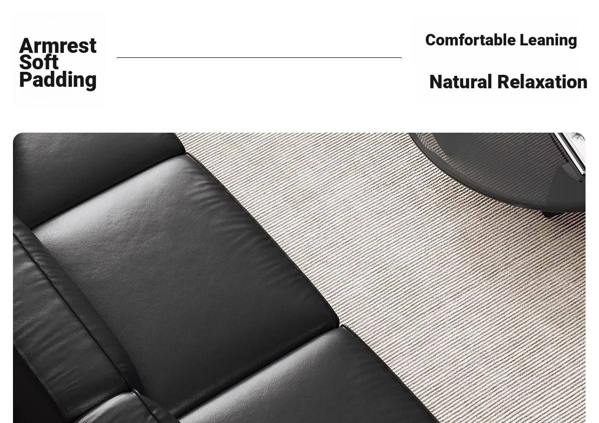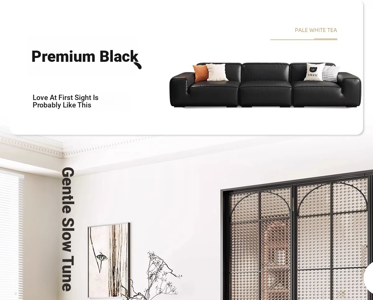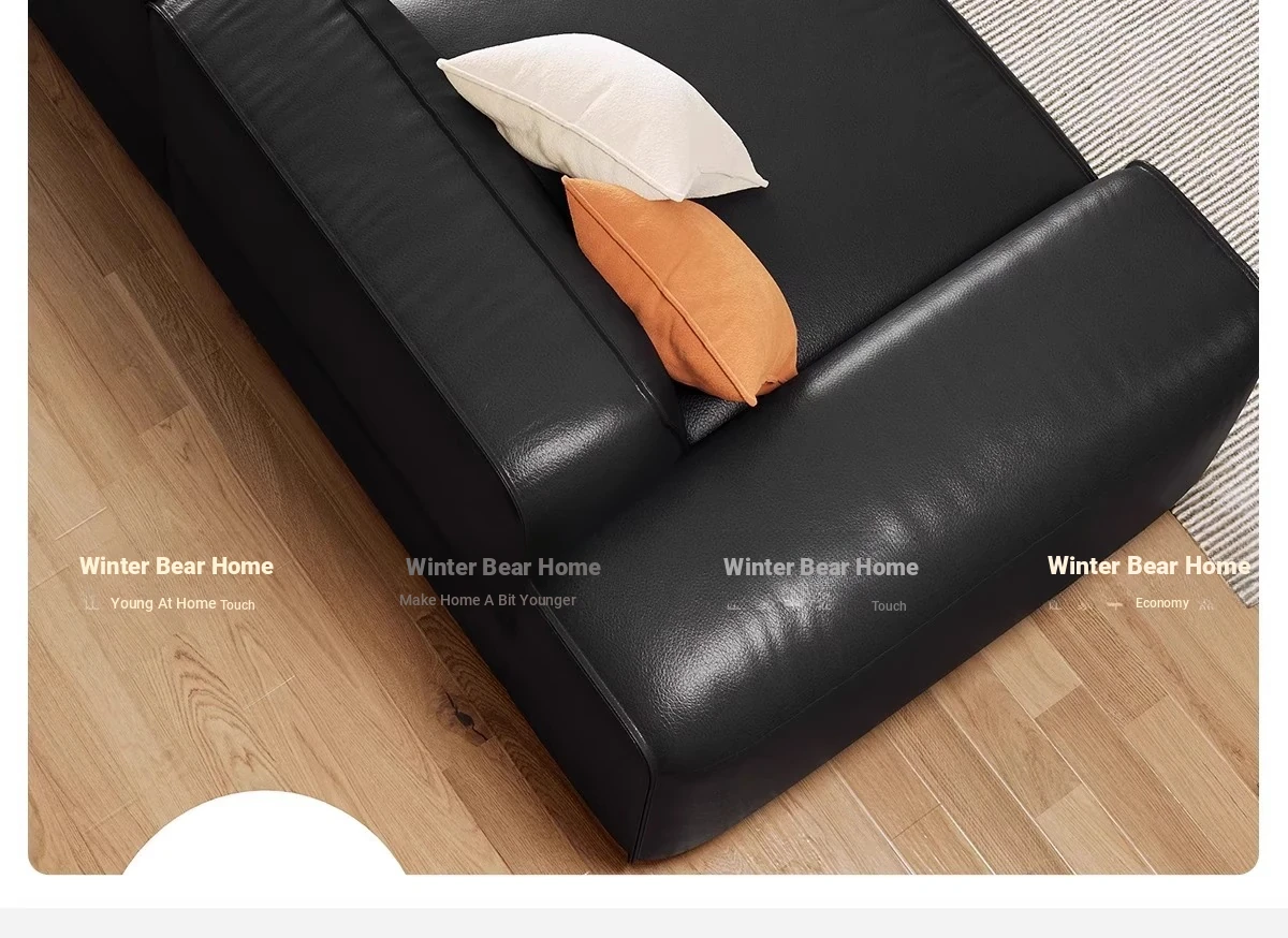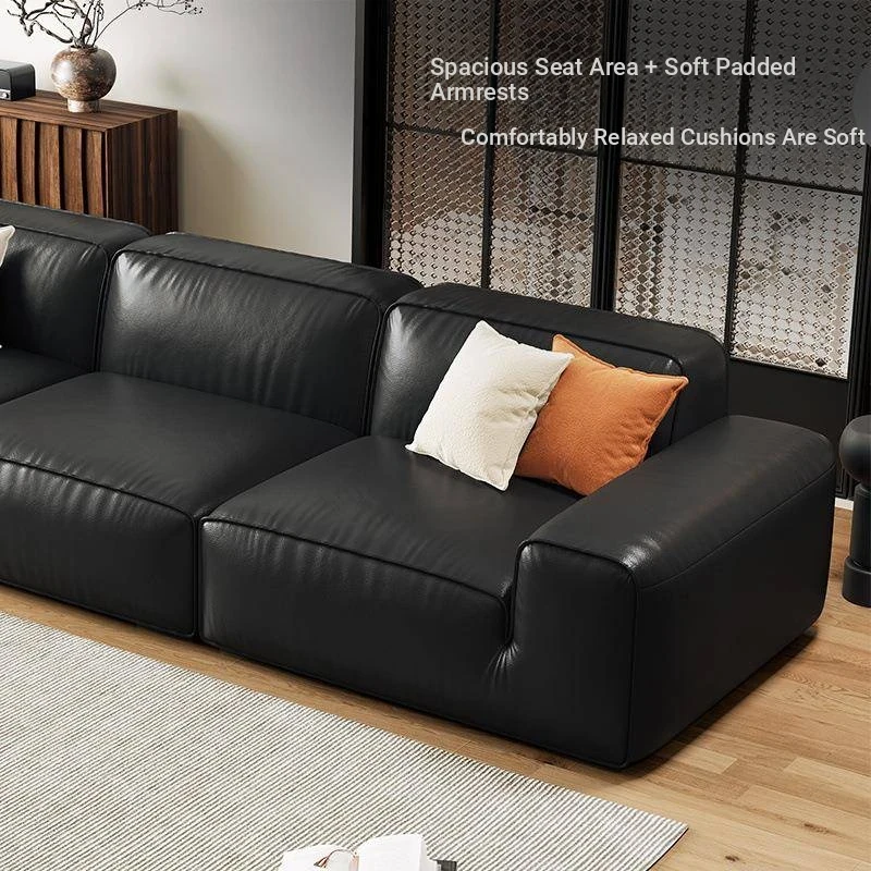 Luxury Italian Black Leather Sofa with PS179 Leather and Jiguo Design - Premium Top-Grain Cowhide for Small Living Rooms, Stylish and Elegant, Perfect for Compact Spaces!
