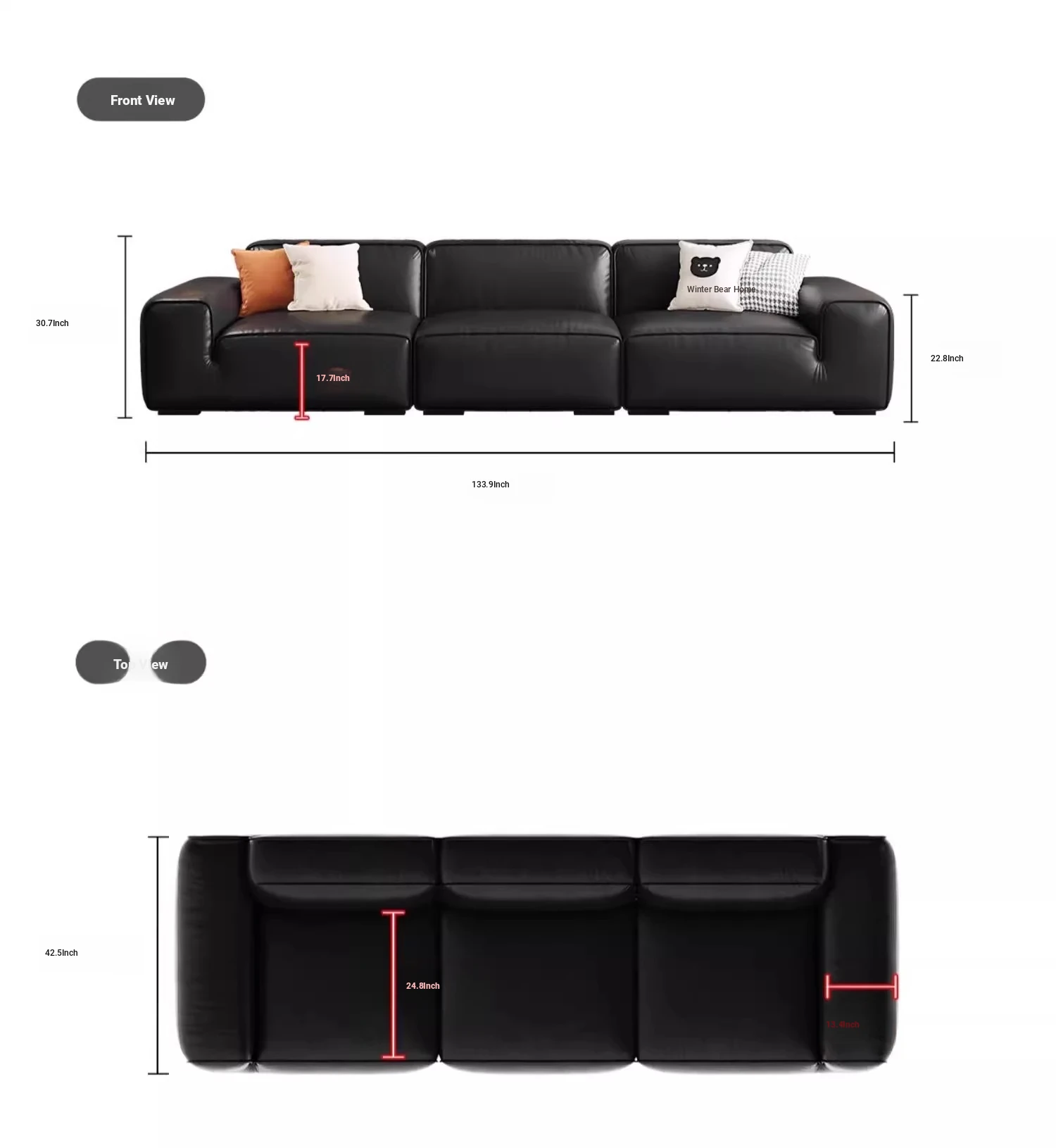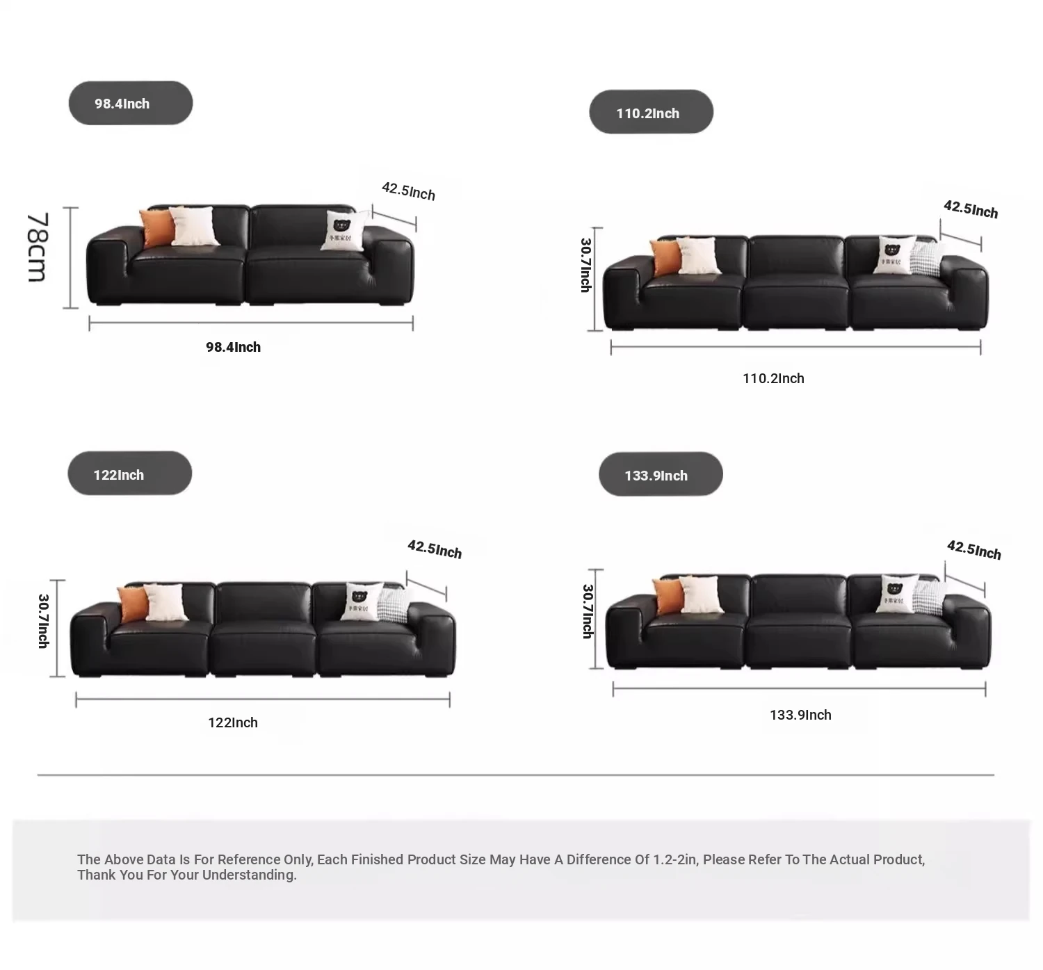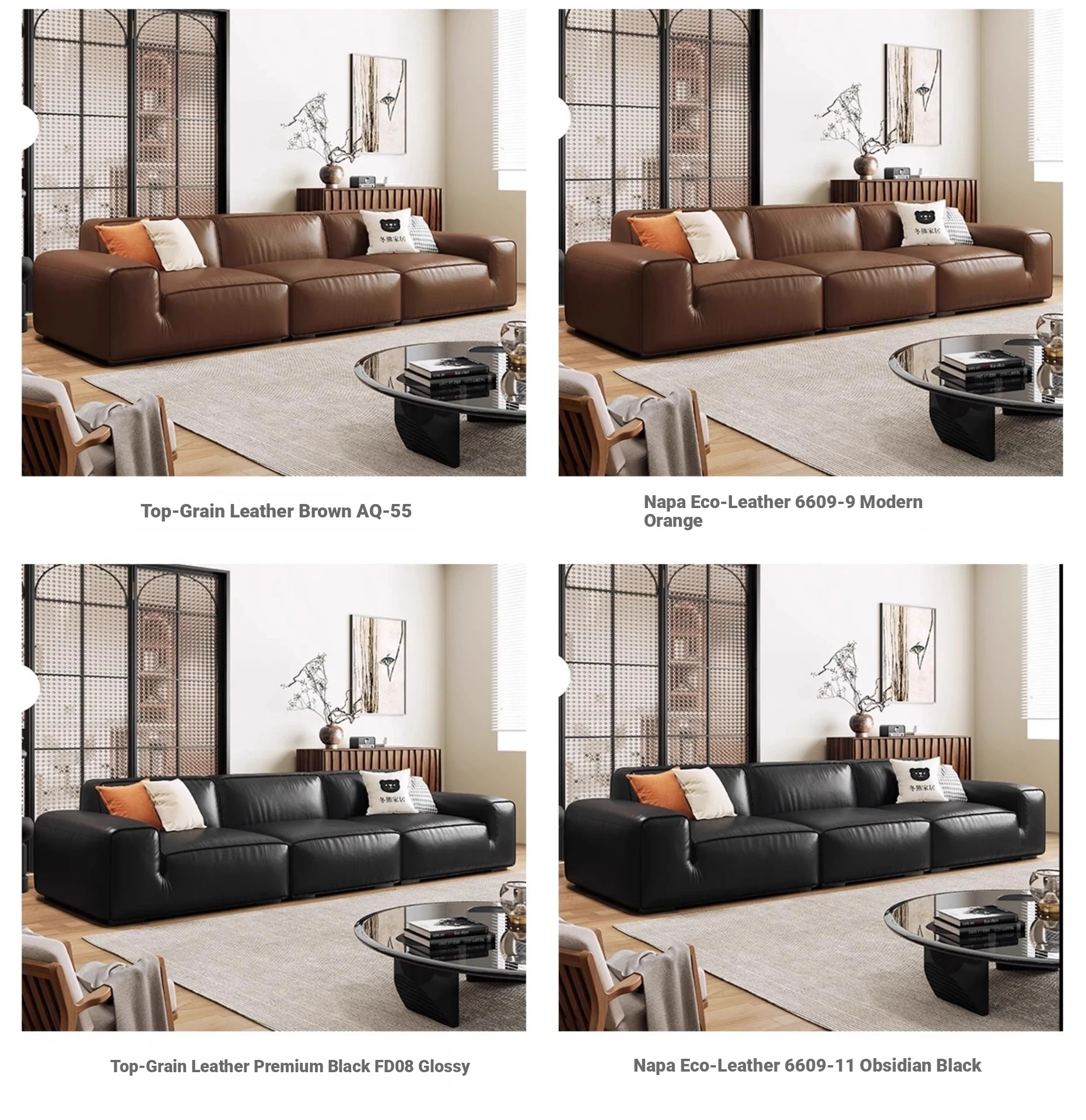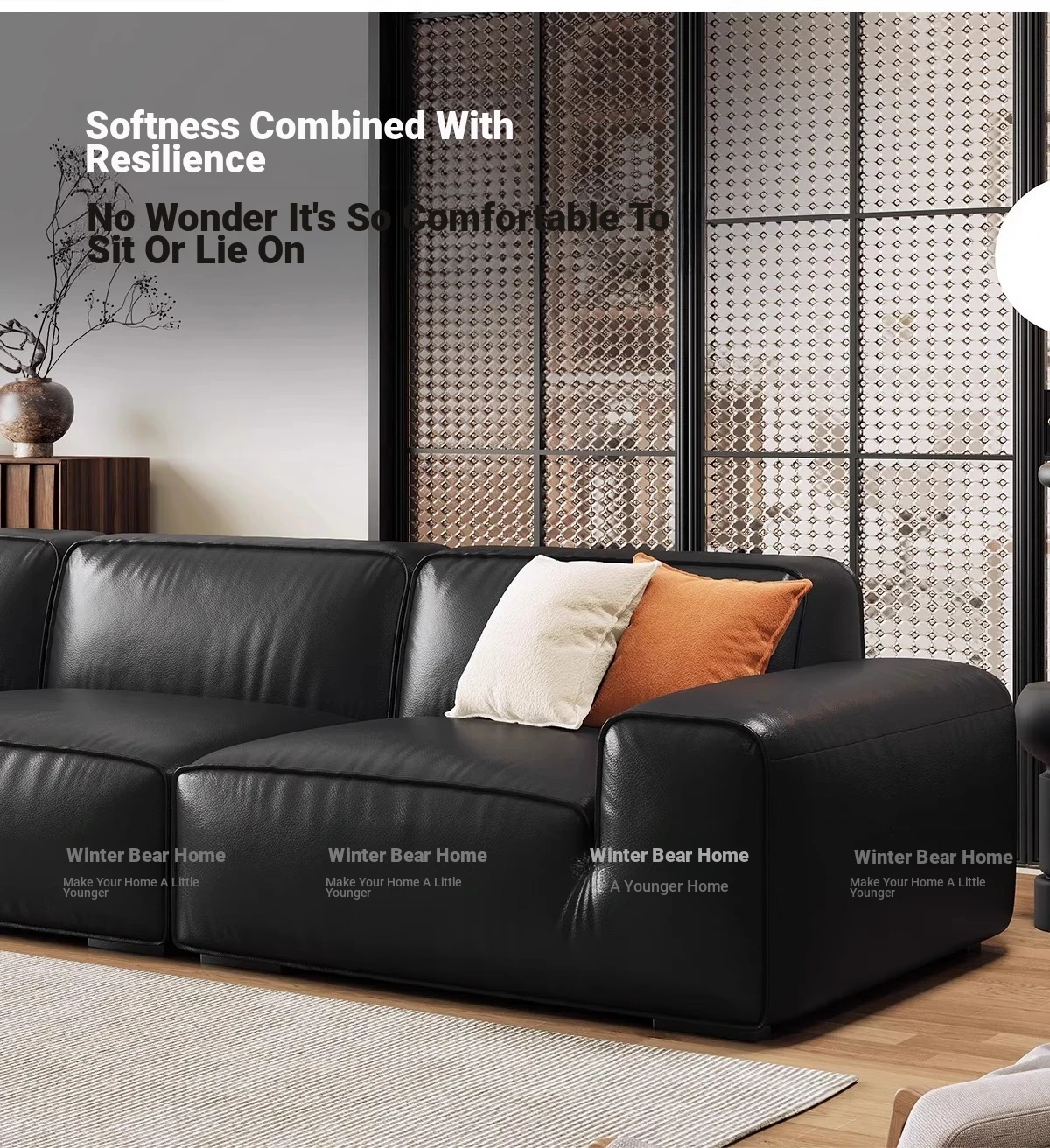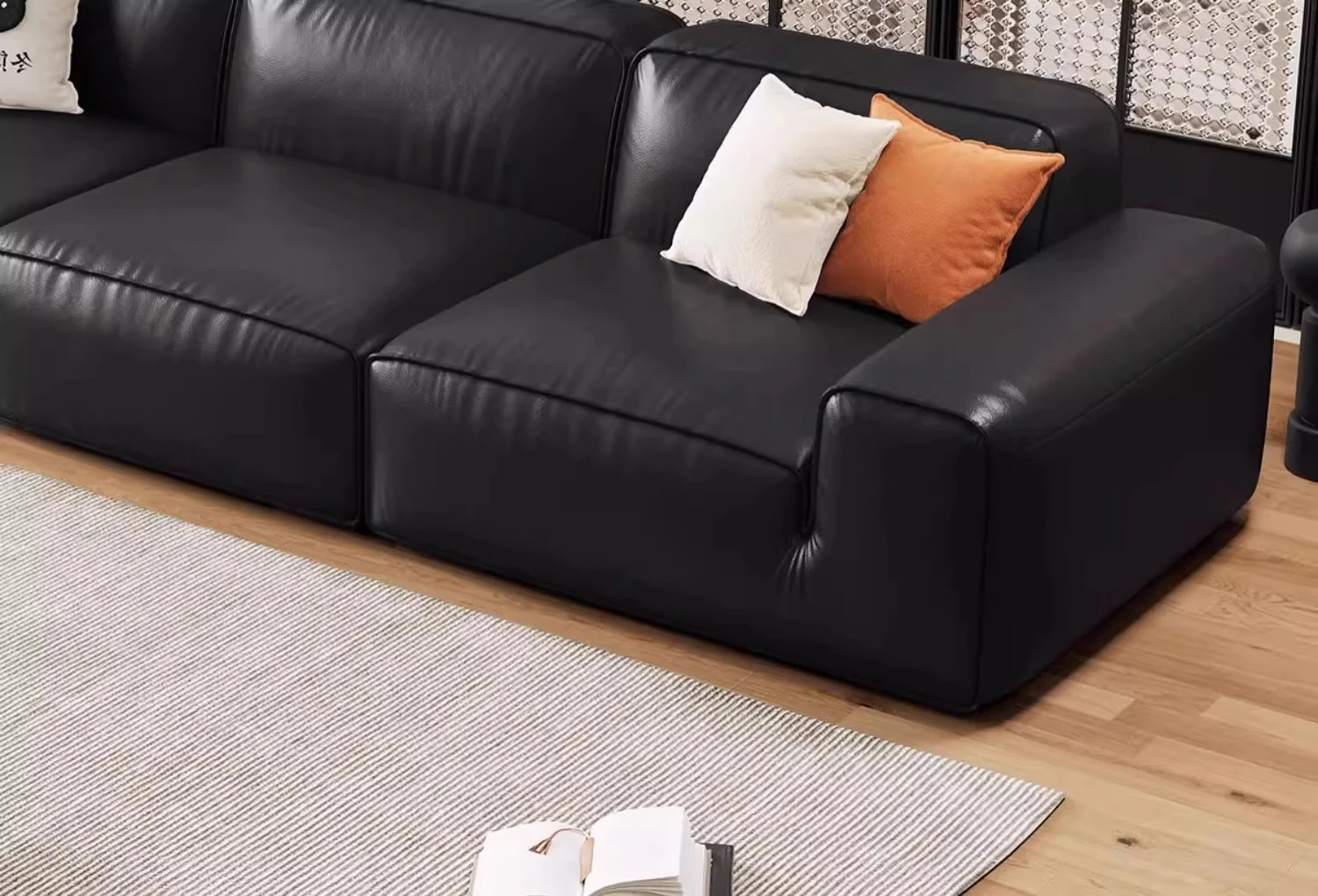 Luxury Italian Black Leather Sofa with PS179 Leather and Jiguo Design - Premium Top-Grain Cowhide for Small Living Rooms, Stylish and Elegant, Perfect for Compact Spaces!