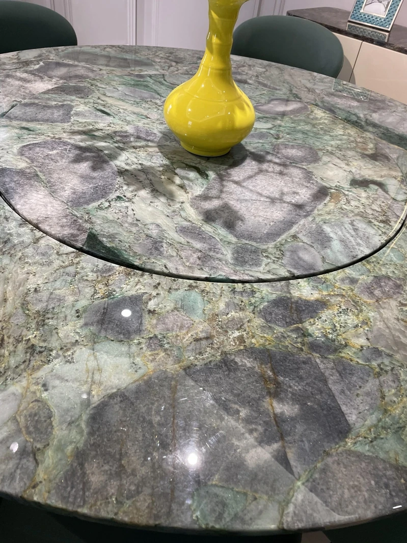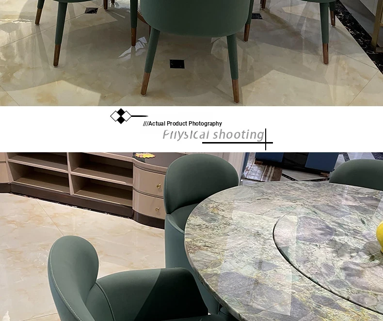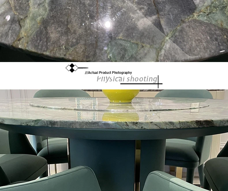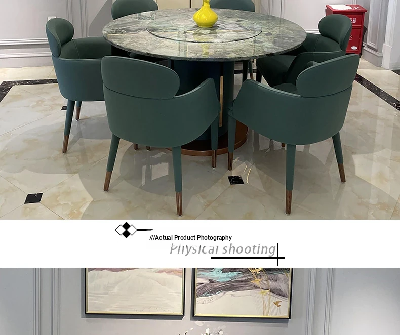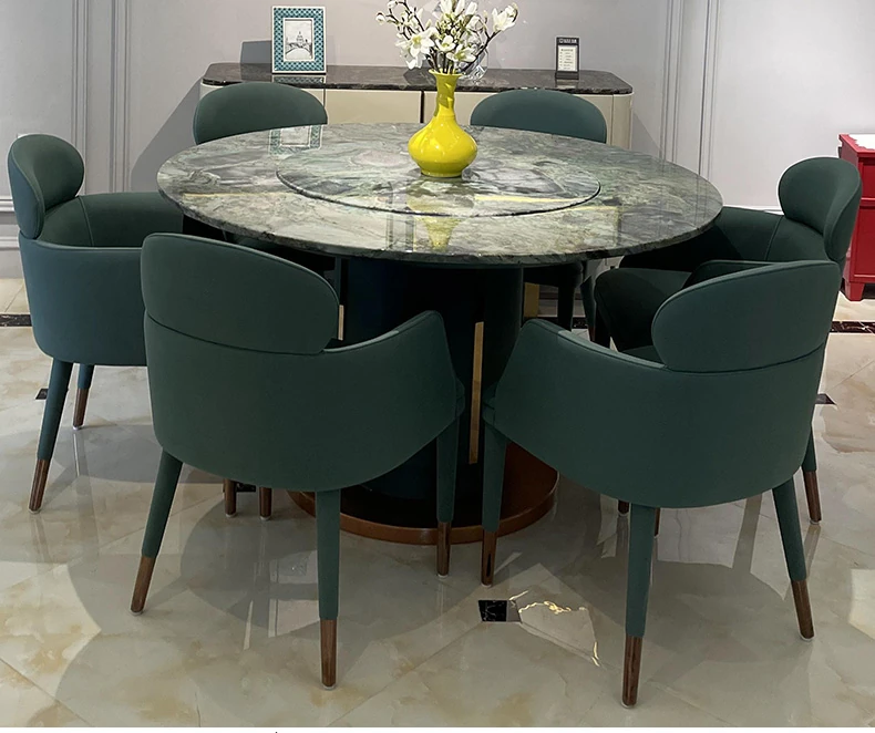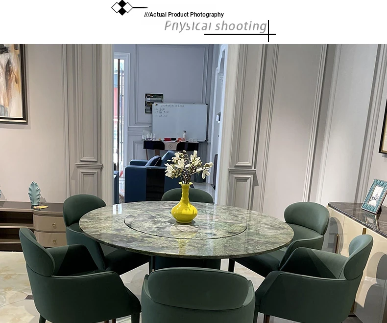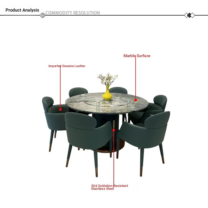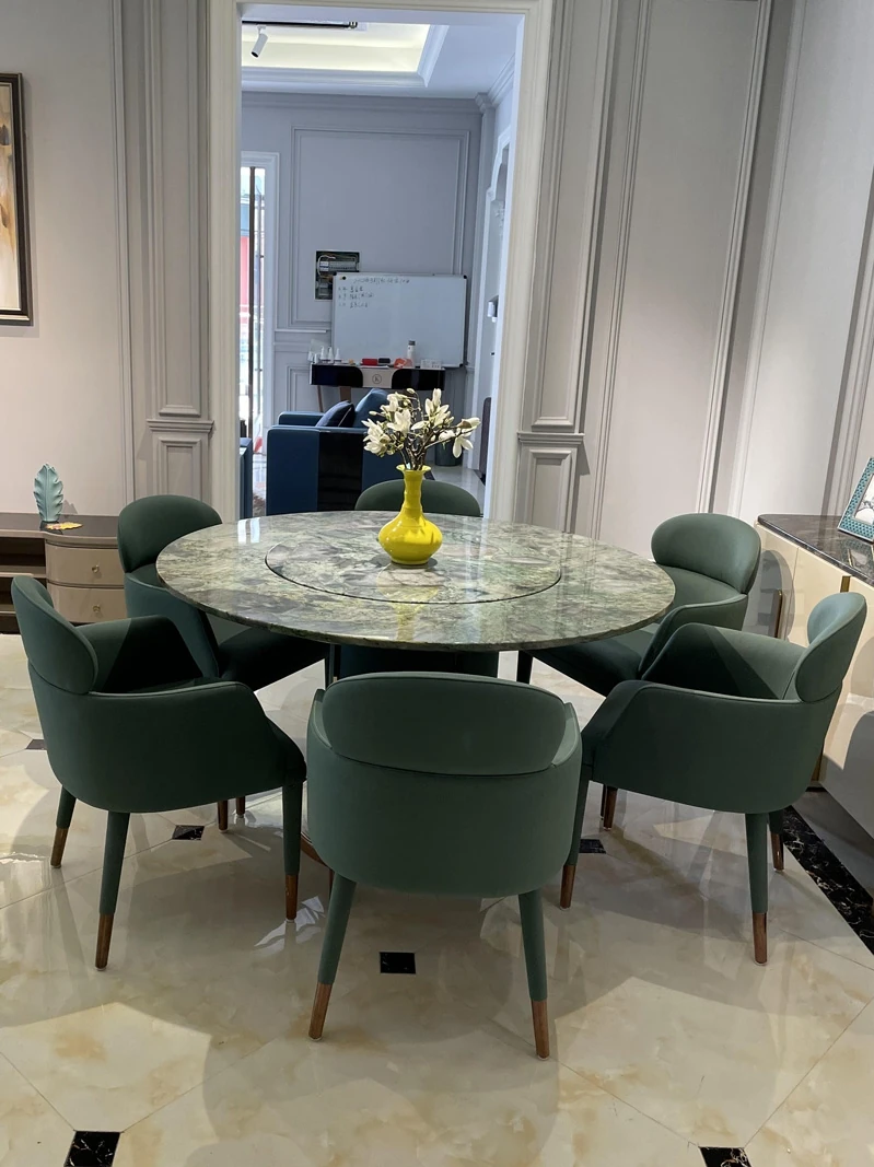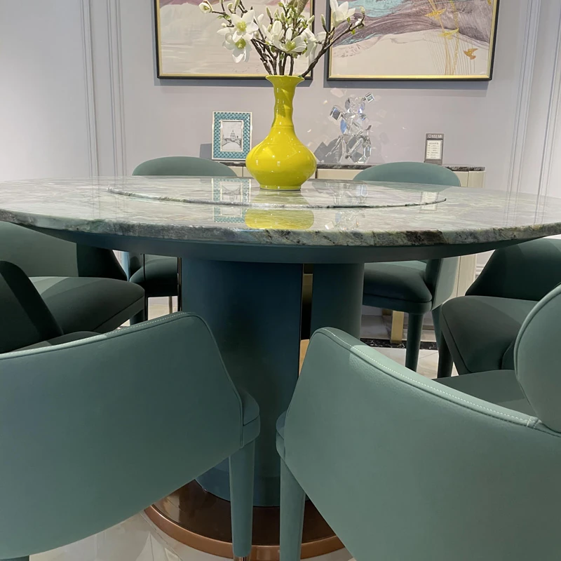 Luxury Italian Round Dining Table and Chair Set - Modern Post-Industrial Marble Round Dining Table for Bay Garden Villa Spacious Living Room, Perfect for Stylish Entertaining