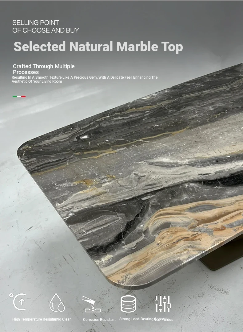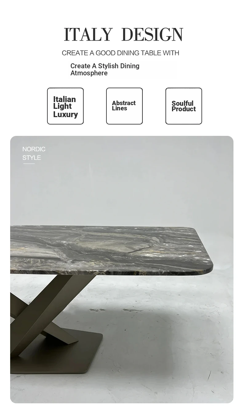 Luxury Natural Marble Dining Table - Modern Minimalist High-End Rectangular Italian Dining Table for Home Use, Foshan