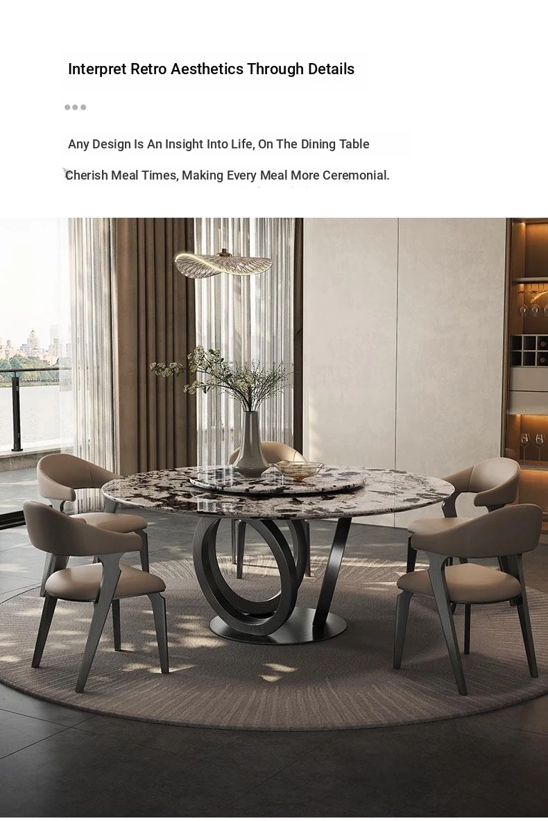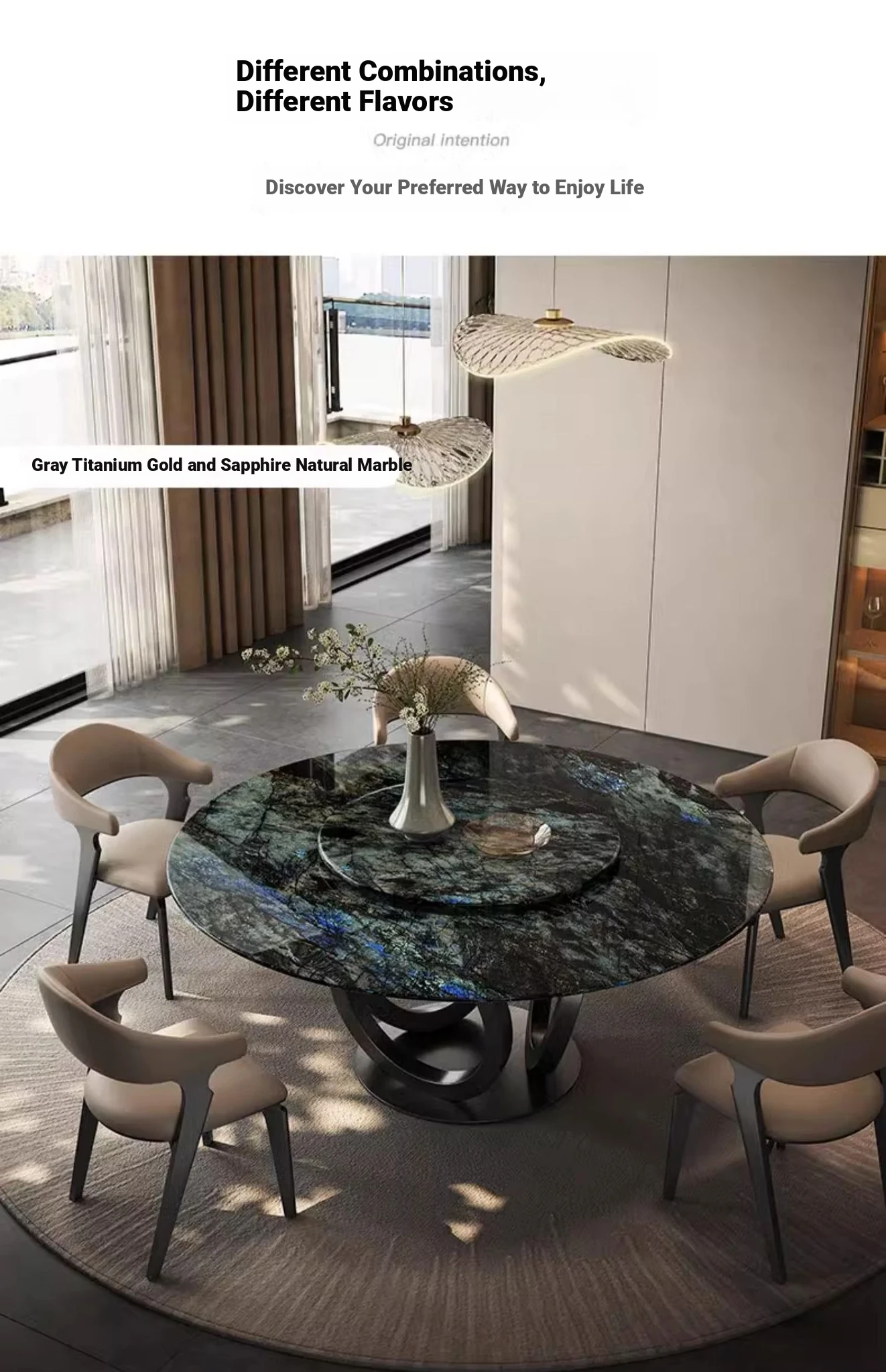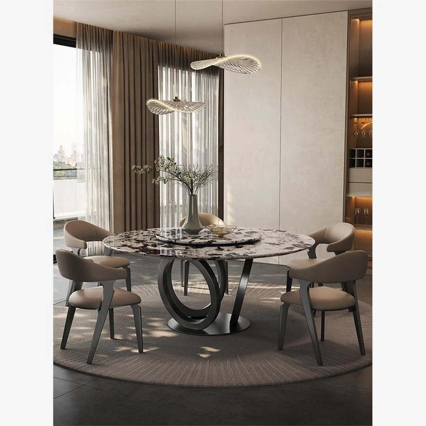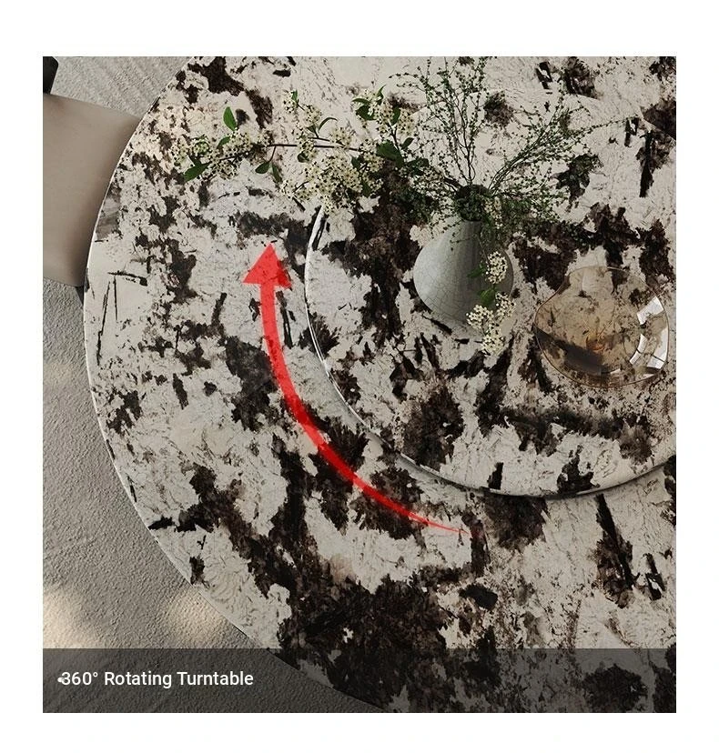 Luxury Natural Marble Round Dining Table with Lazy Susan - Elegant High-End Snow Mountain Flying Fox Design for Six People