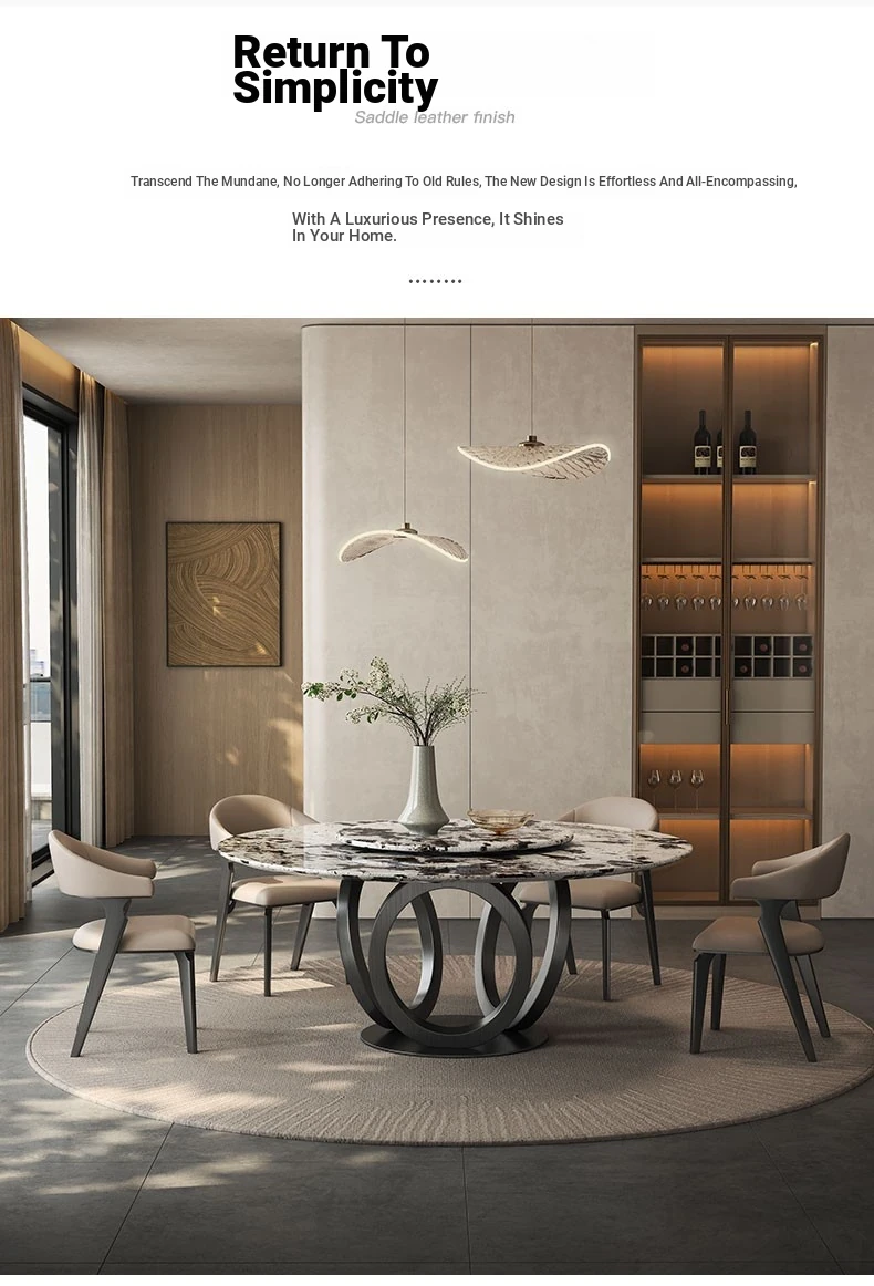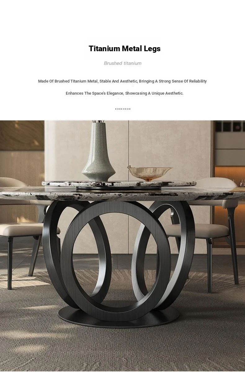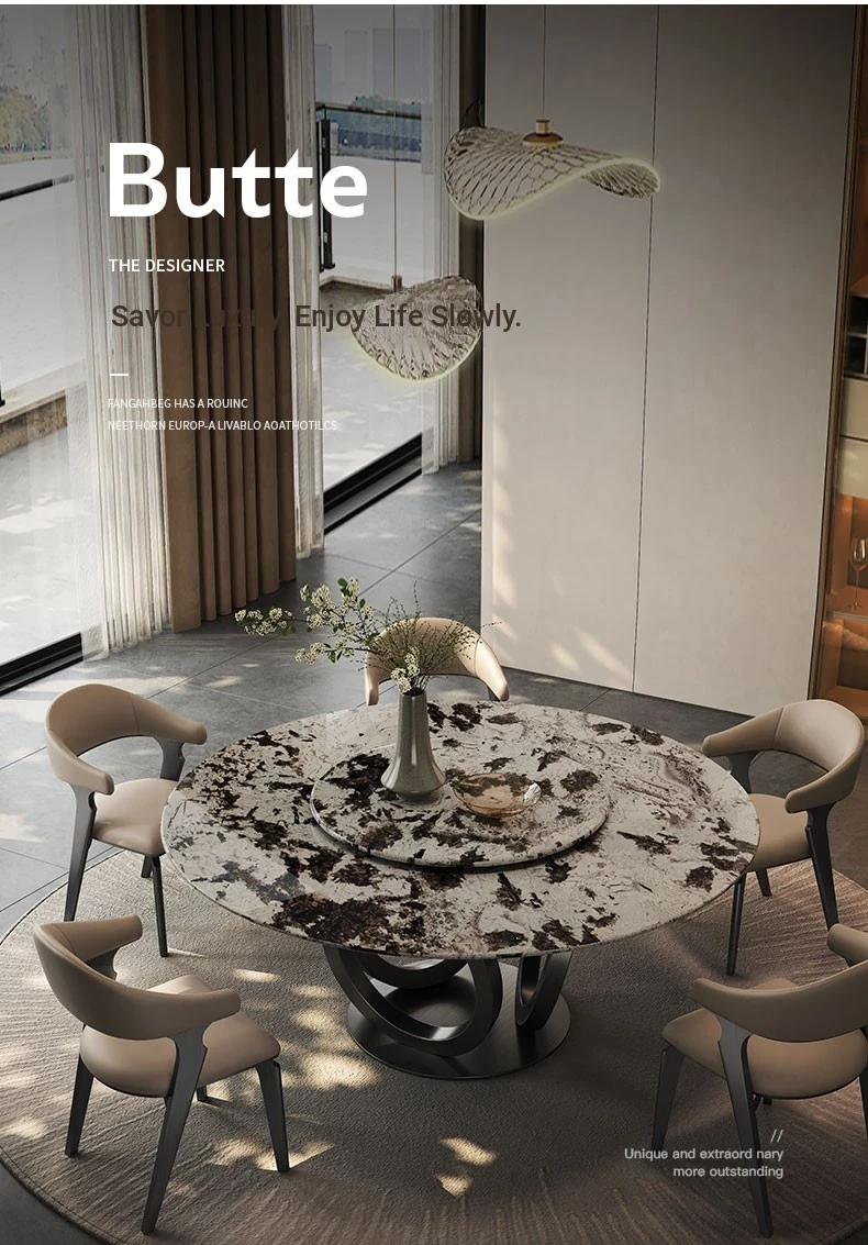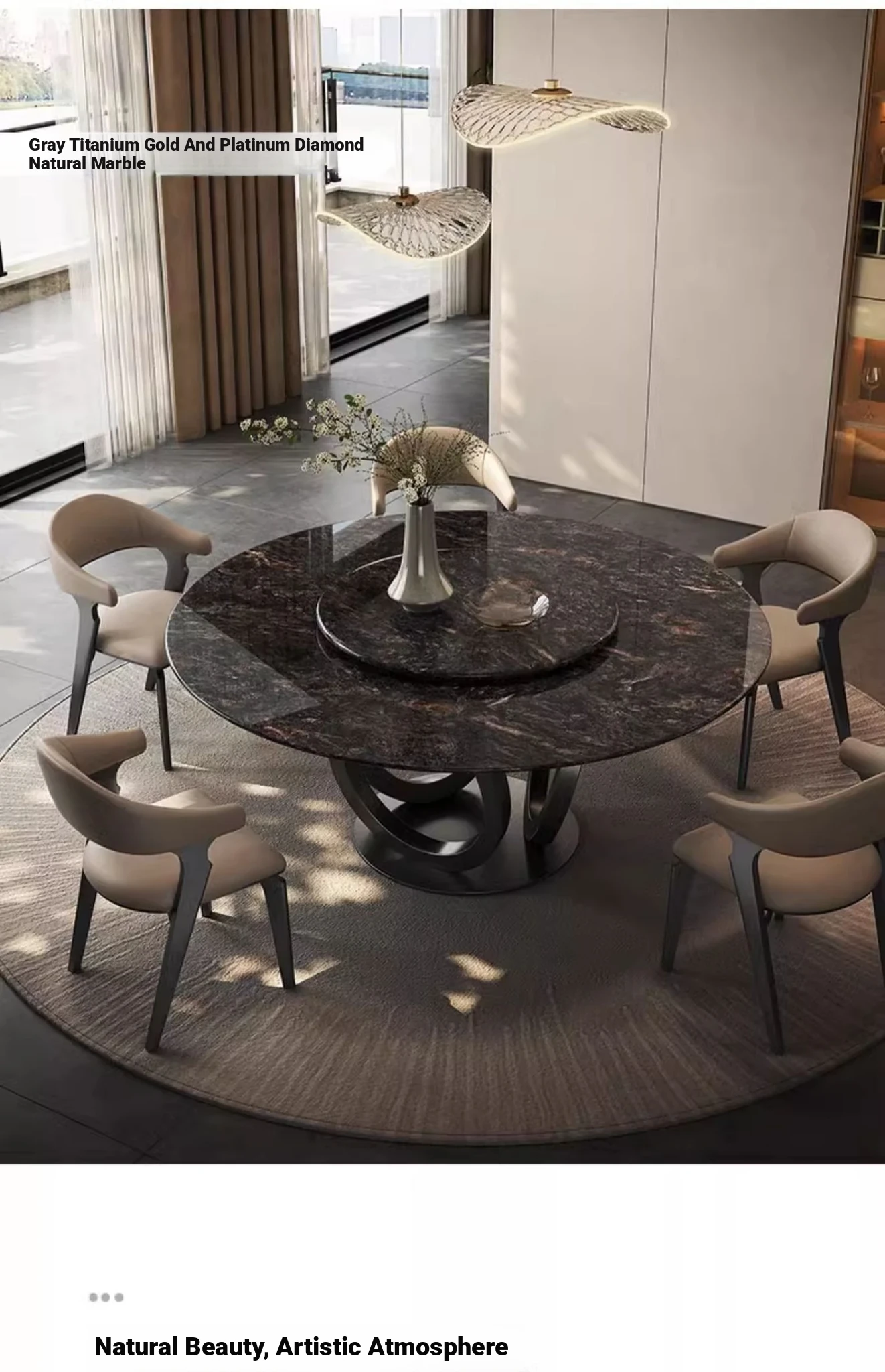Luxury Natural Marble Round Dining Table with Lazy Susan - Elegant High-End Snow Mountain Flying Fox Design for Six People