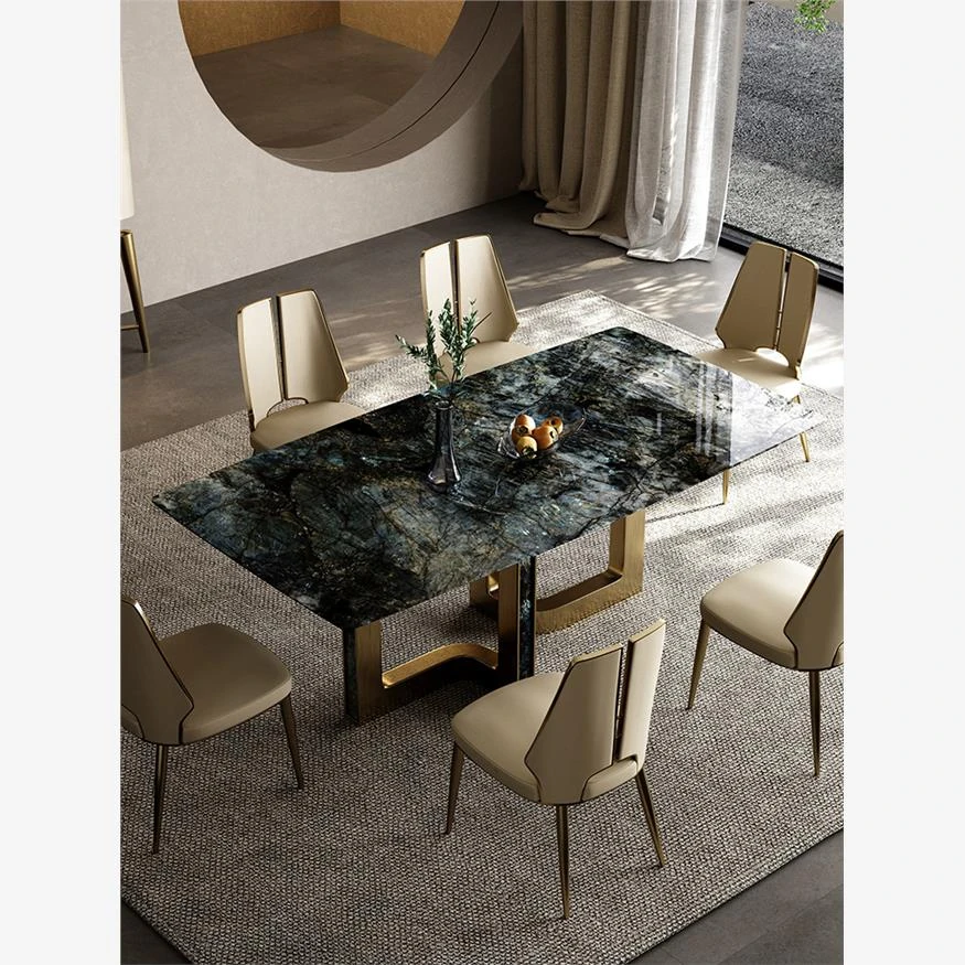 Dining Table/78.74in + Dining Chair * 6/Natural Tianshan Muxue/Champagne Gold