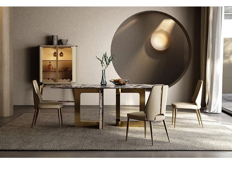 Dining table/62.99in/natural Tianshan Twilight Snow/champagne gold
