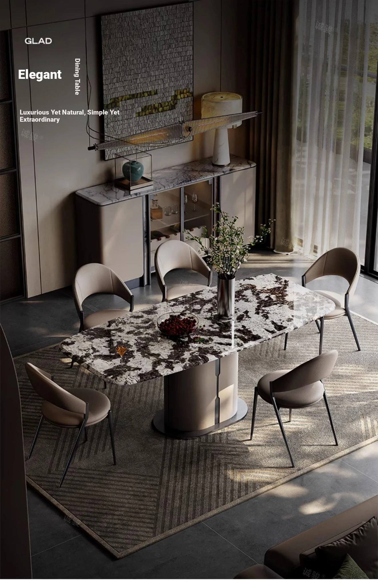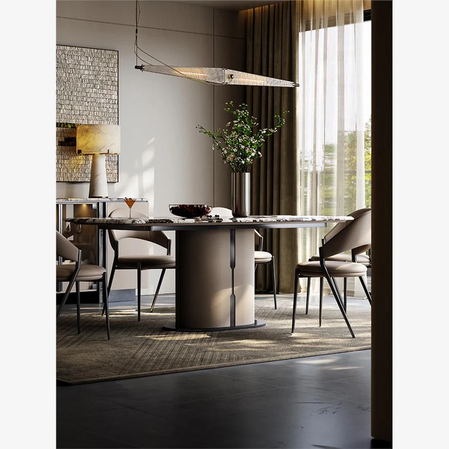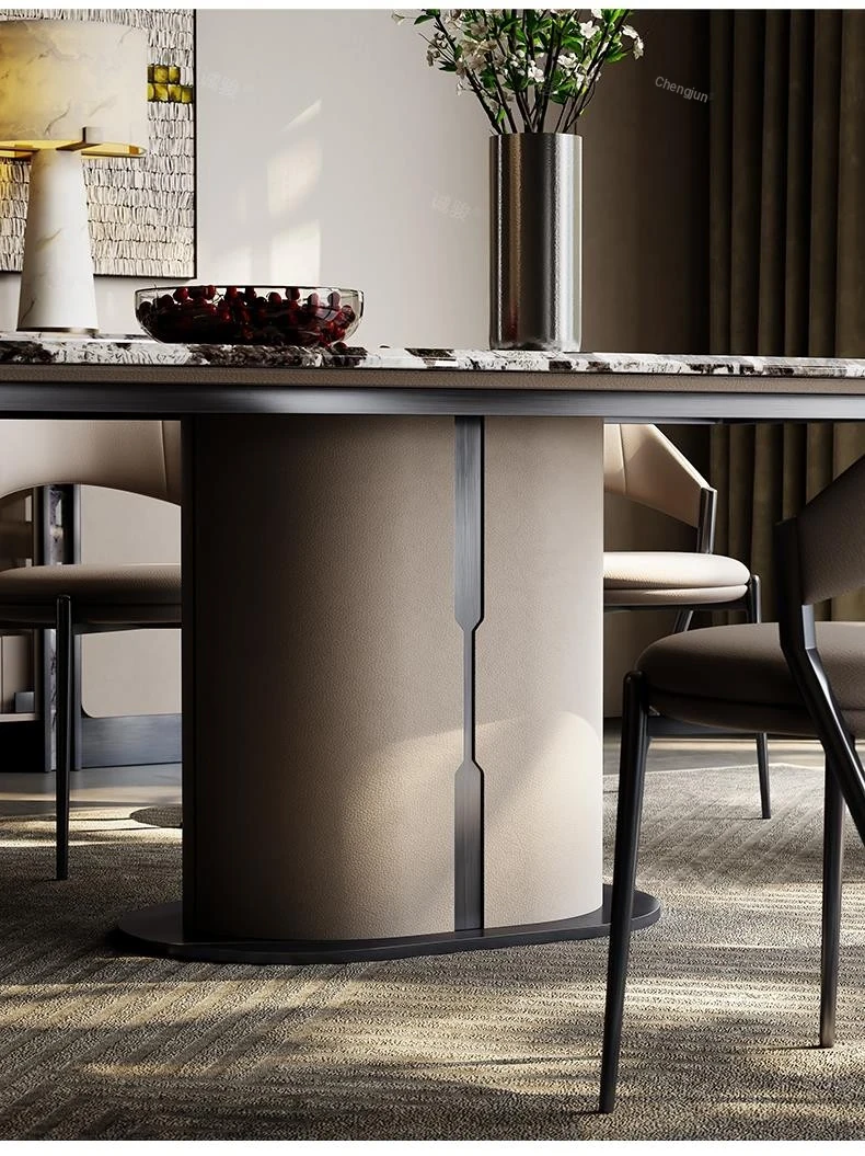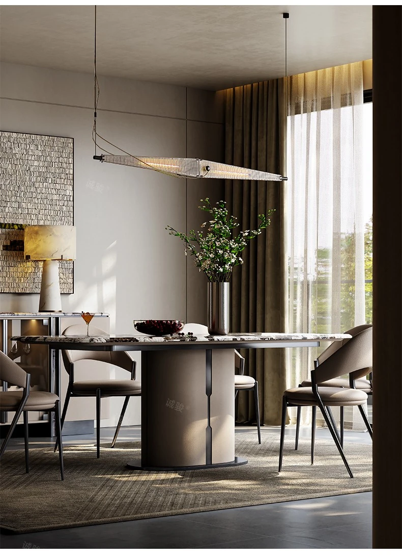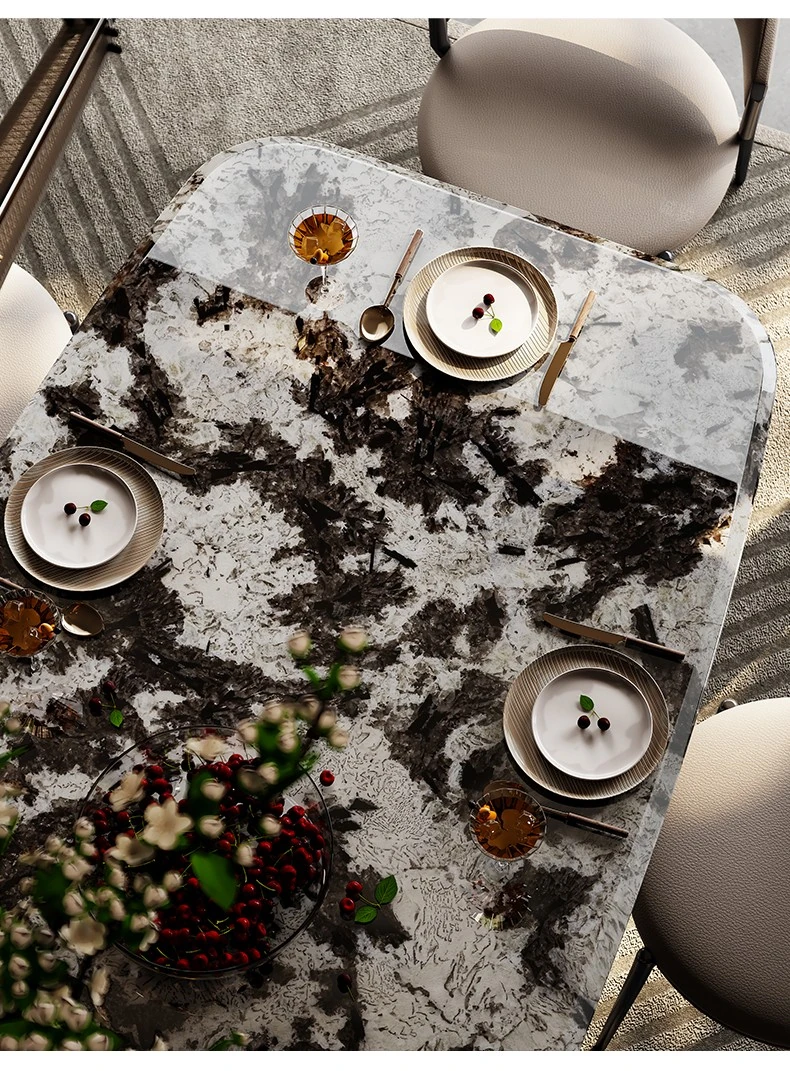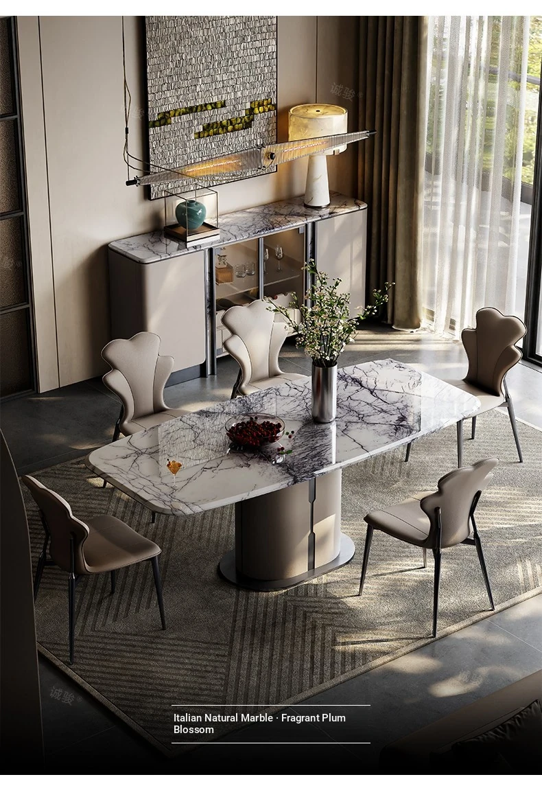 Luxury Snow Mountain Flying Fox Marble Dining Table Set - Elegant and Minimalist Design for Villas and Homes, Perfect for Upscale Dining Experiences.