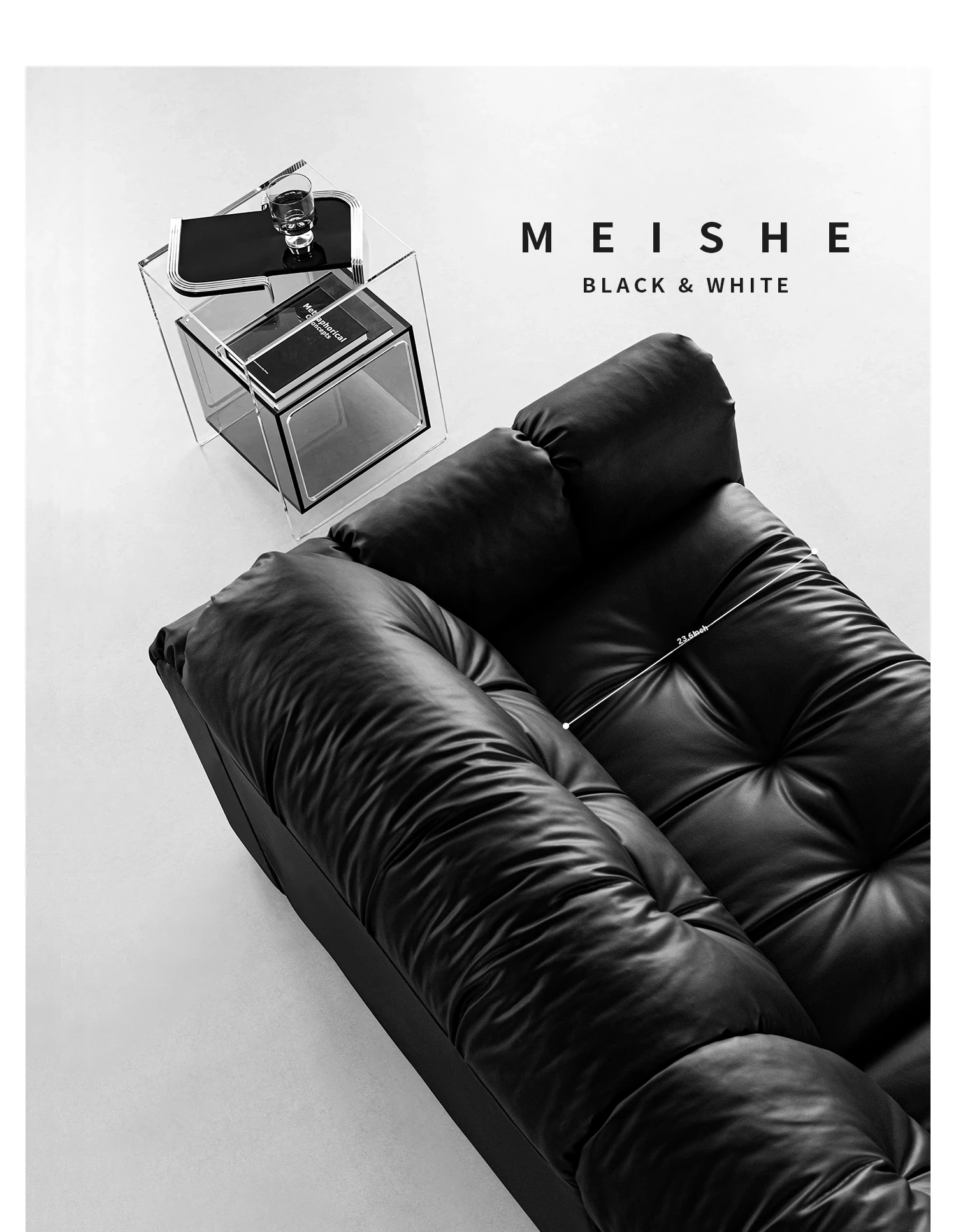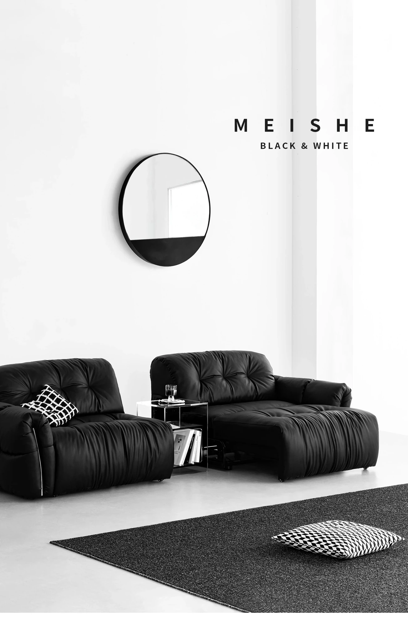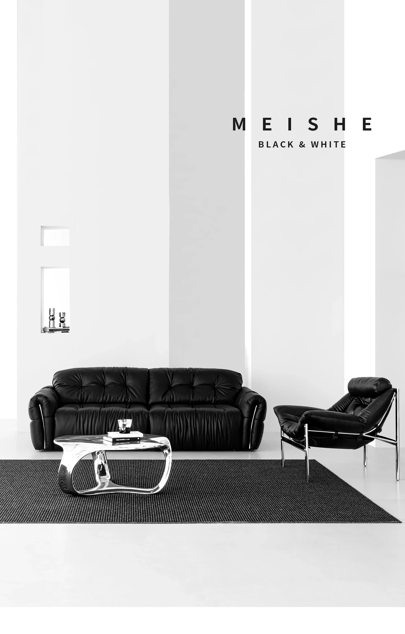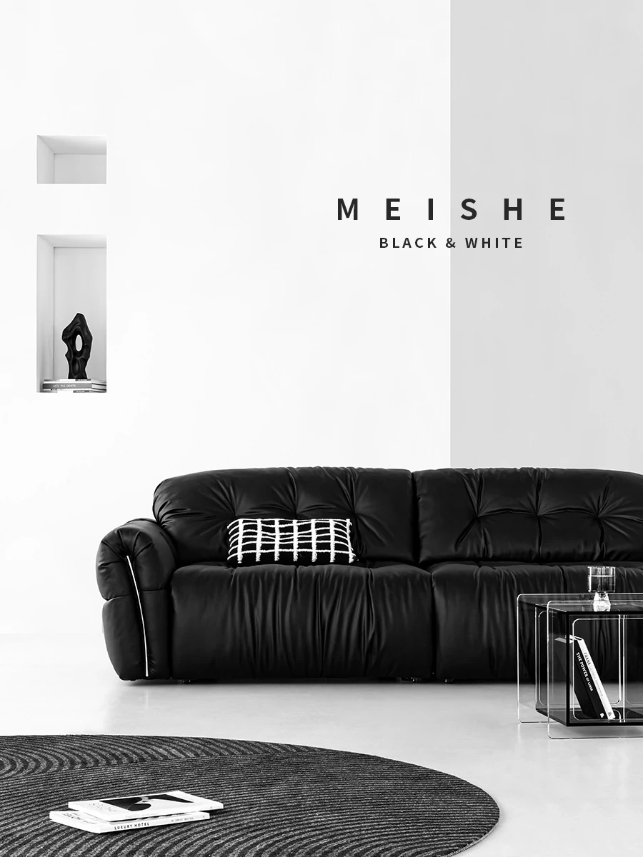 MeiShe Original Black Full Leather Electric Reclining Sofa Bed - Multi-functional Three-Seater with Stainless Steel for Ultimate Comfort and Relaxation