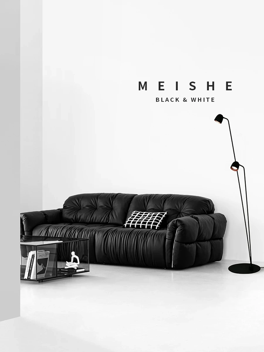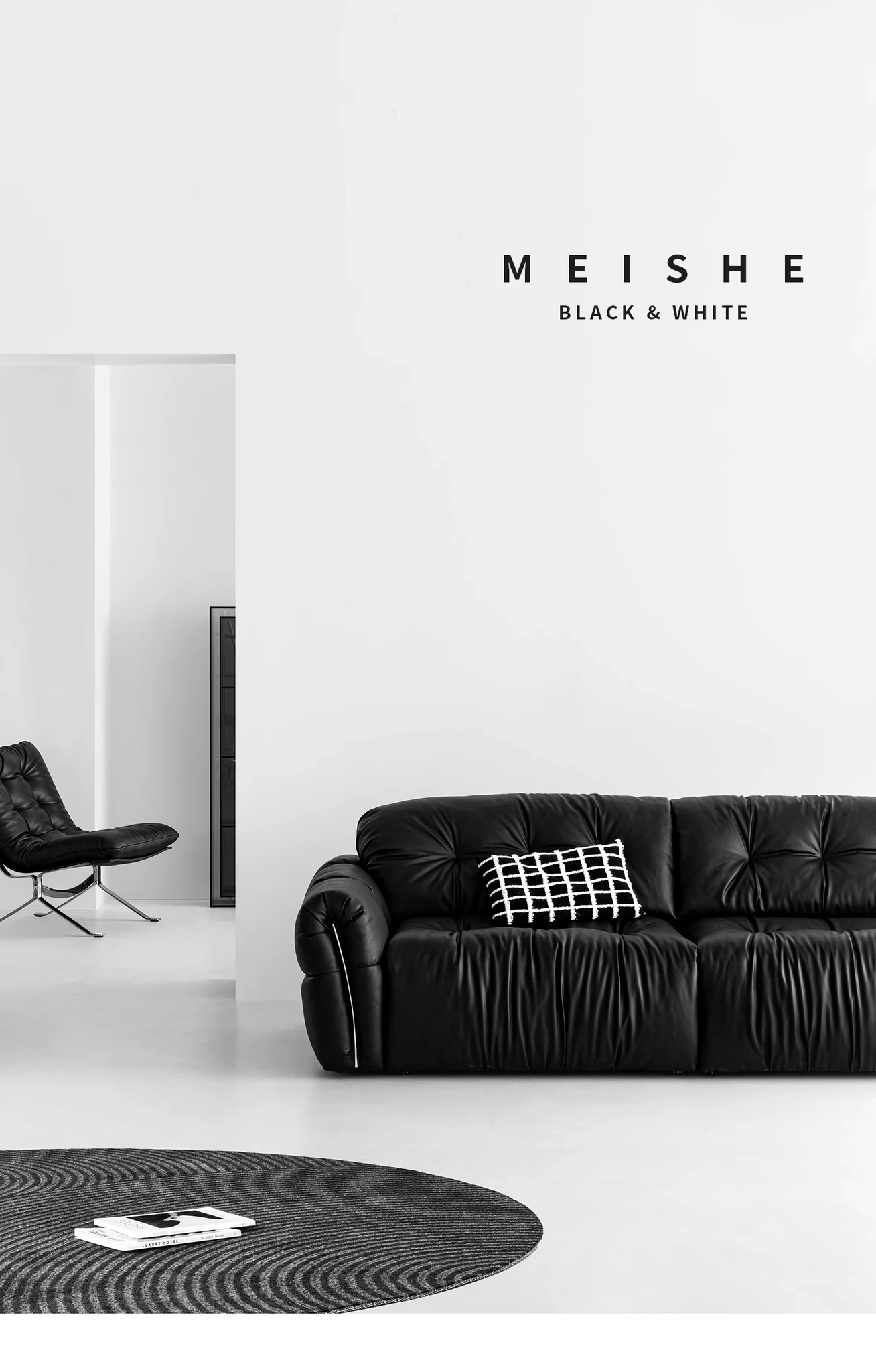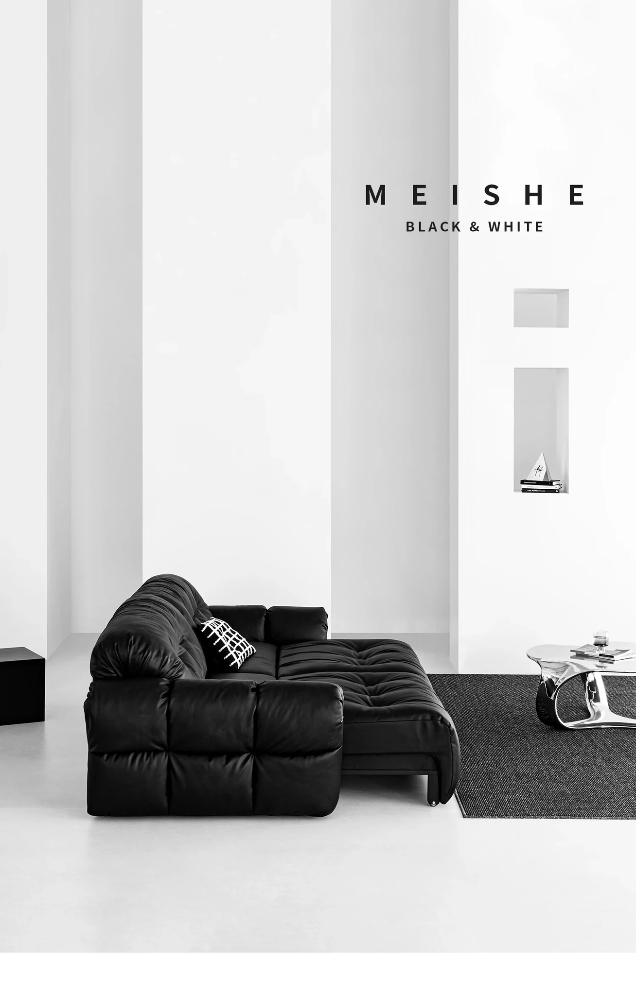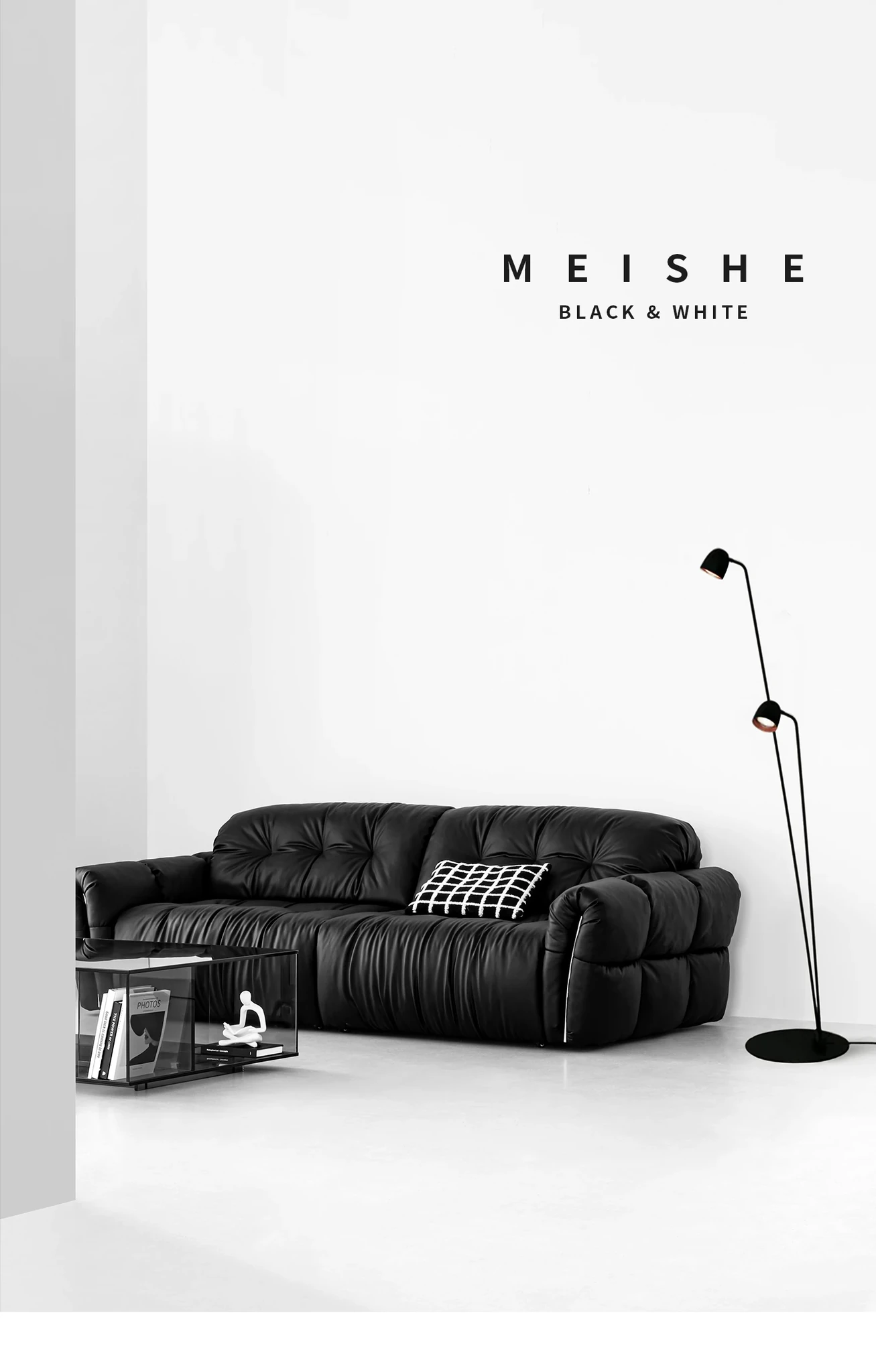 MeiShe Original Black Full Leather Electric Reclining Sofa Bed - Multi-functional Three-Seater with Stainless Steel for Ultimate Comfort and Relaxation
