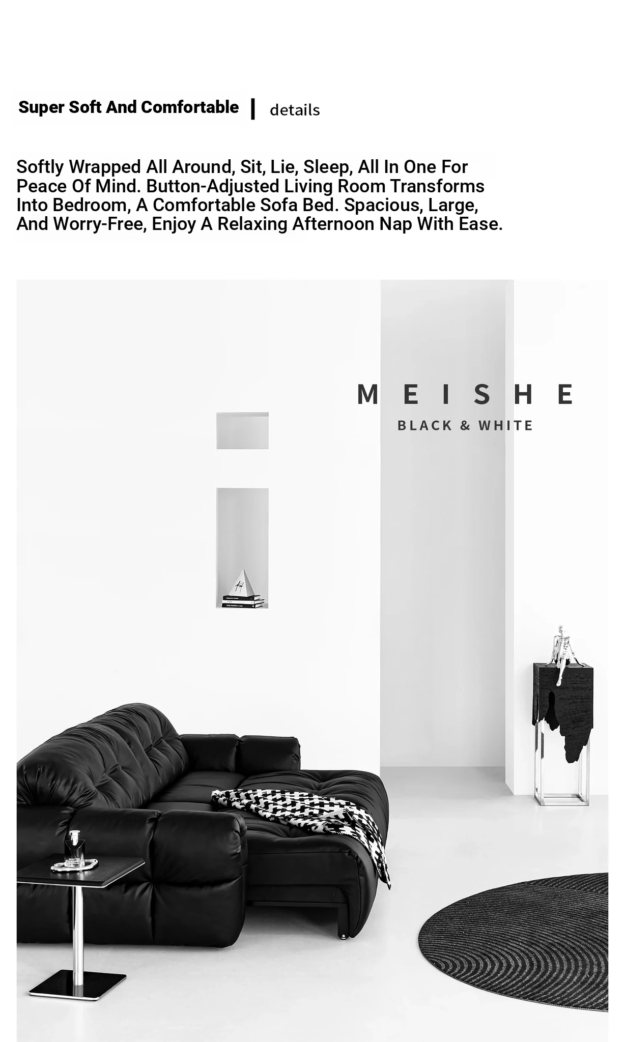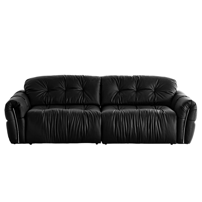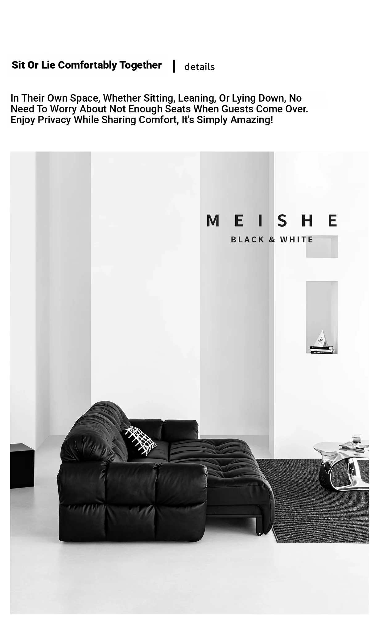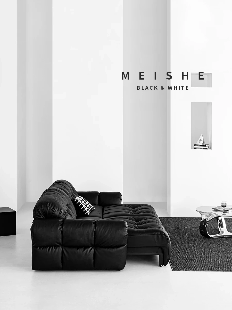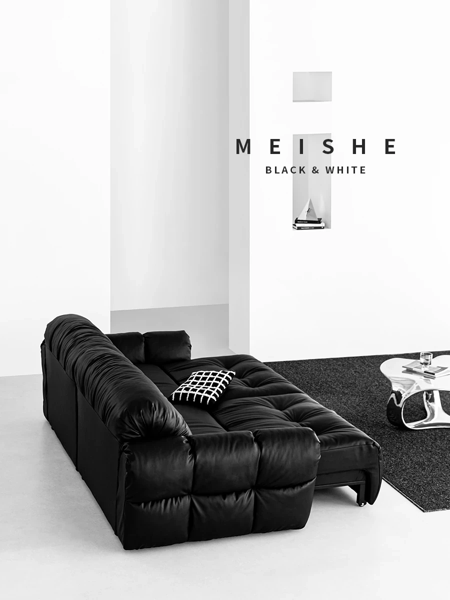MeiShe Original Black Full Leather Electric Reclining Sofa Bed - Multi-functional Three-Seater with Stainless Steel for Ultimate Comfort and Relaxation