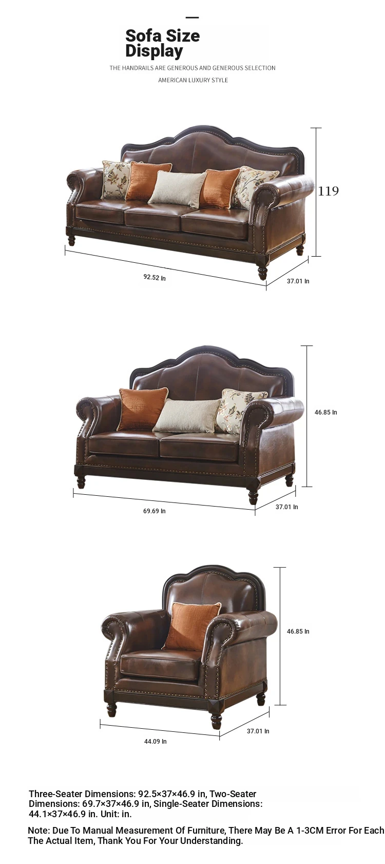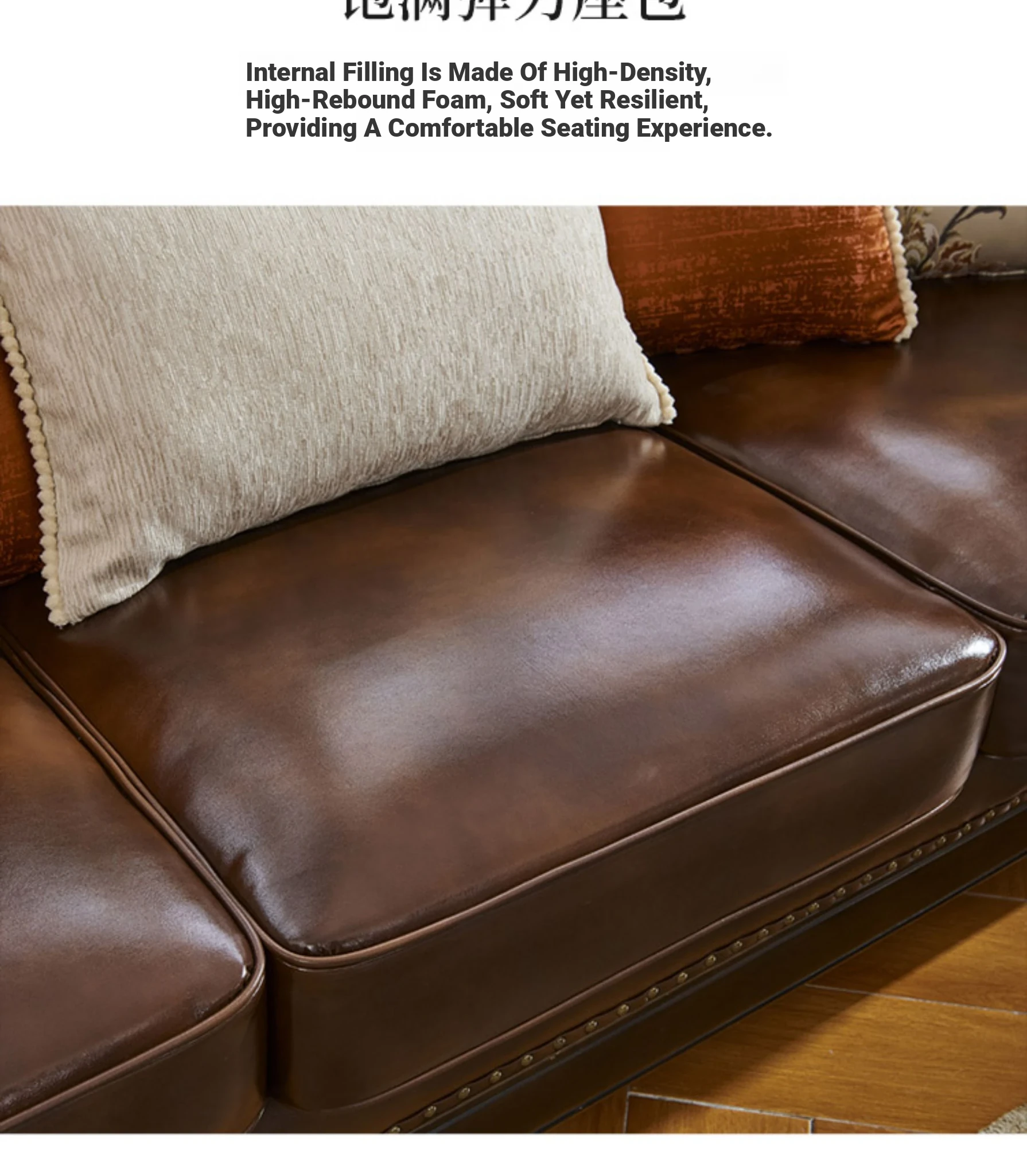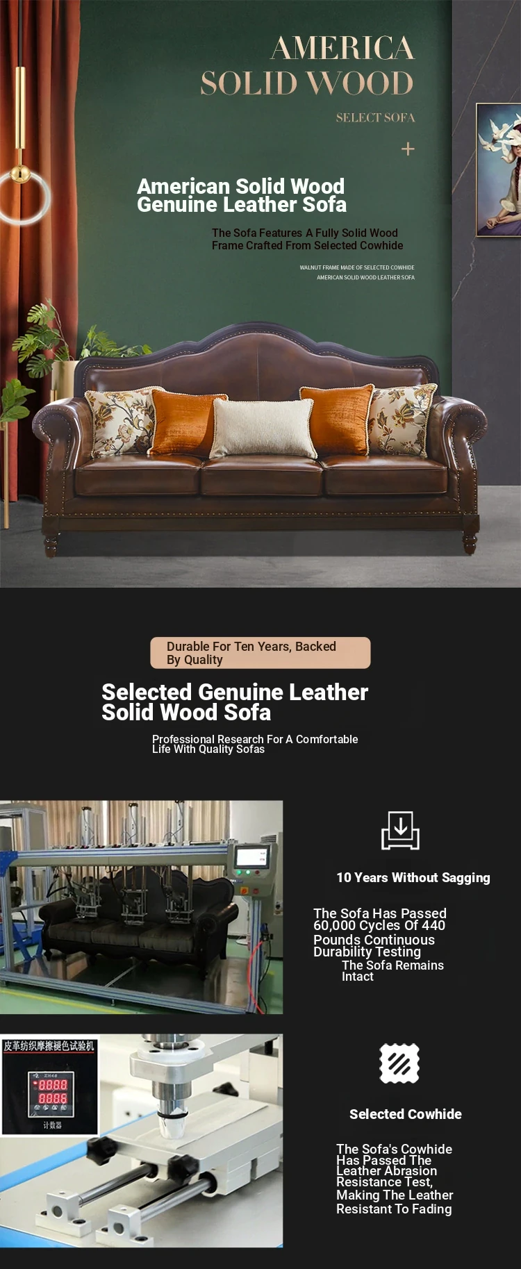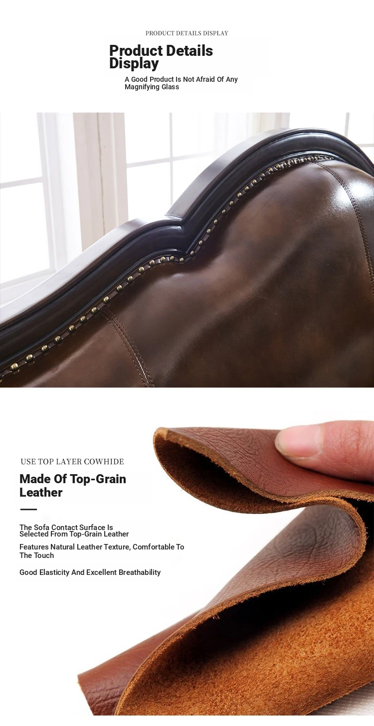 Modern American Genuine Leather Sofa for Spacious Living Rooms - Elegant Three-Seater Crafted from Top-Grain Cowhide, Perfect for Stylish Homes