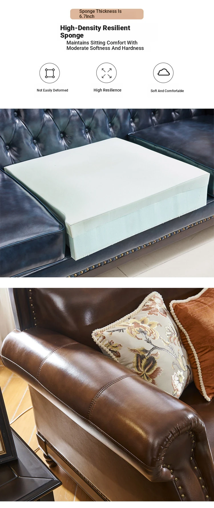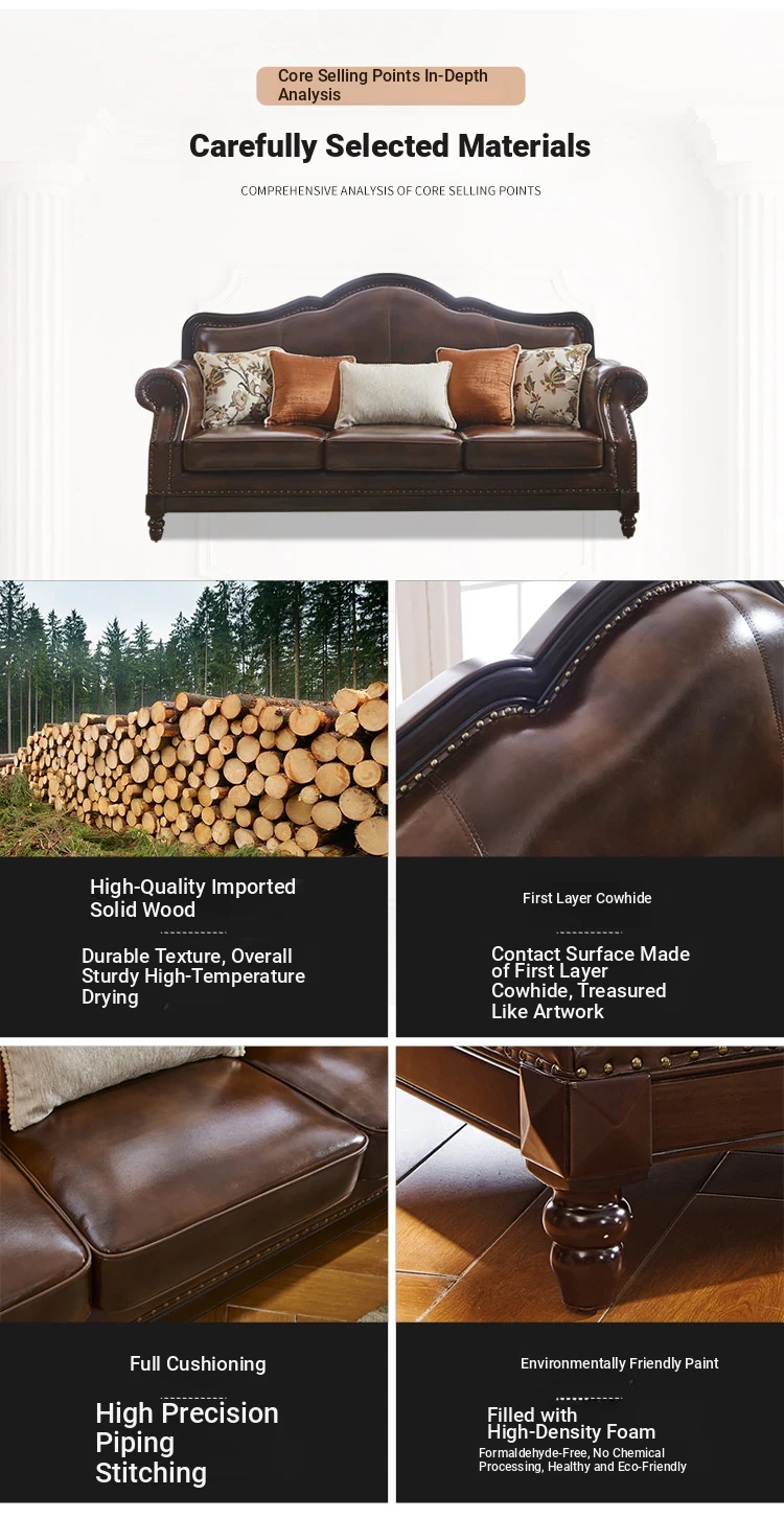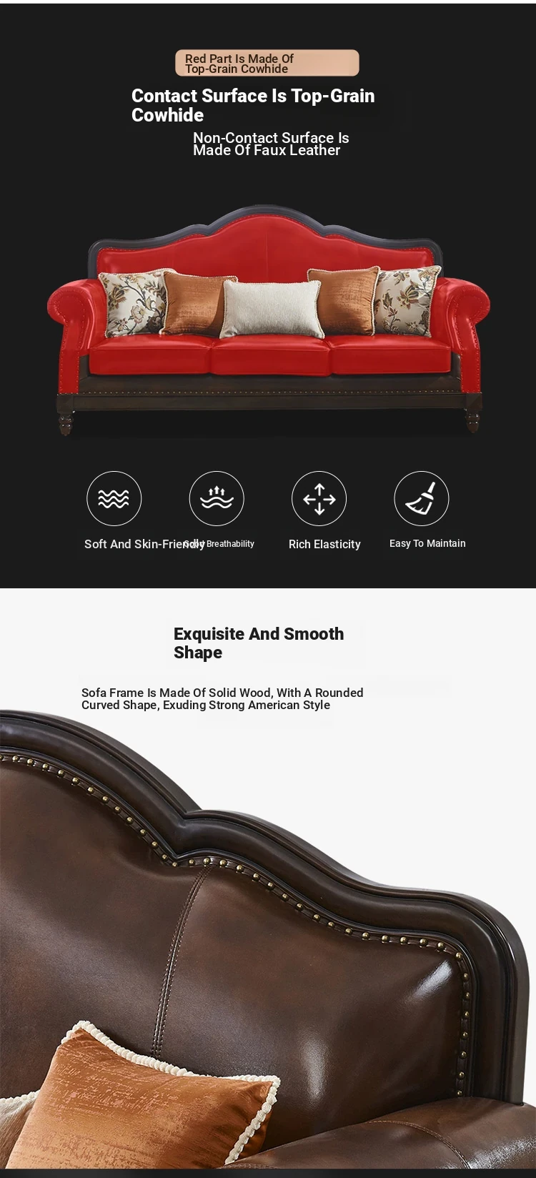 Modern American Genuine Leather Sofa for Spacious Living Rooms - Elegant Three-Seater Crafted from Top-Grain Cowhide, Perfect for Stylish Homes