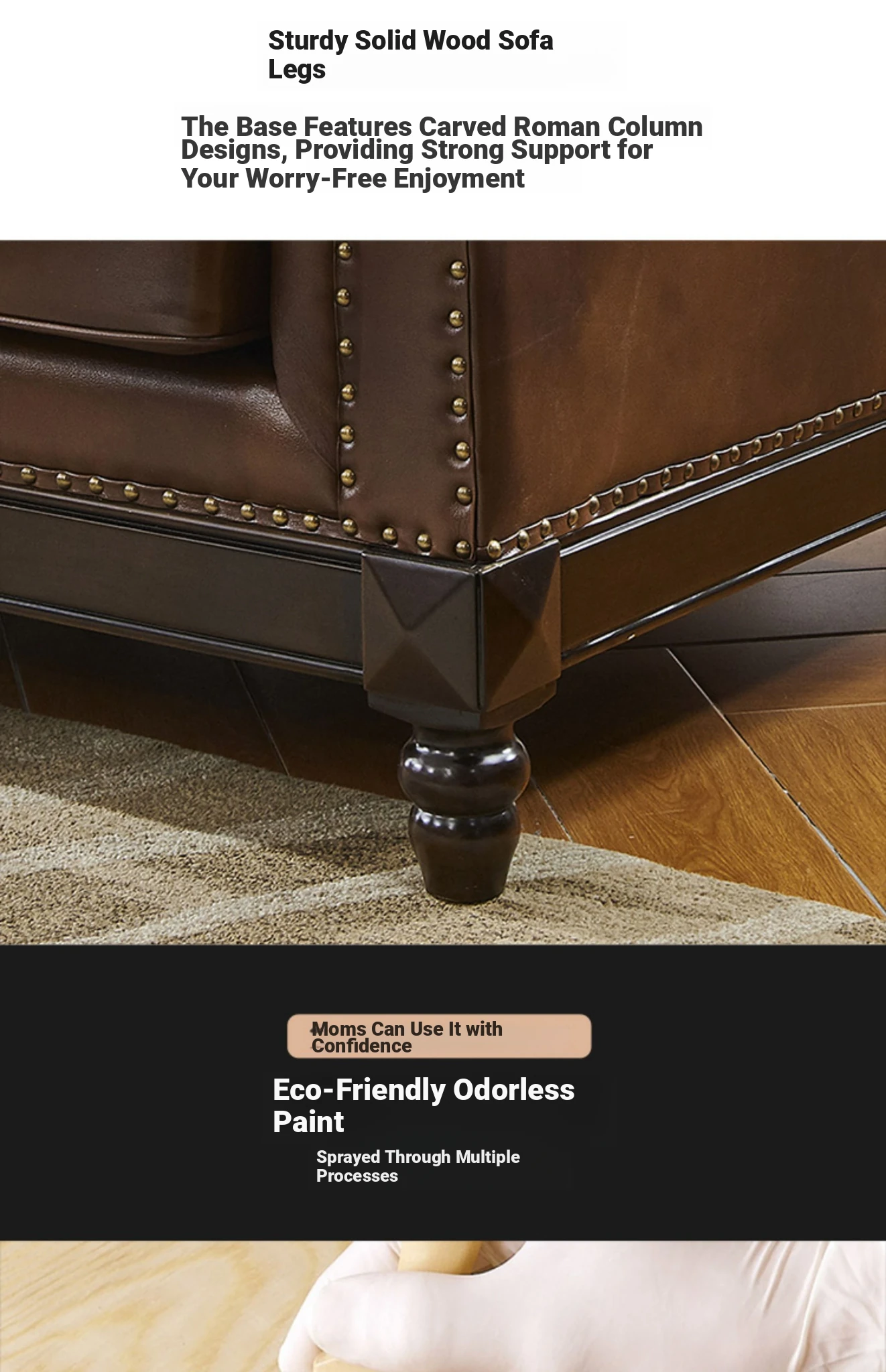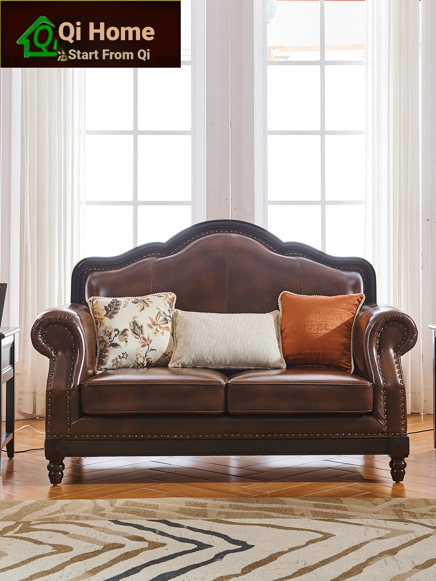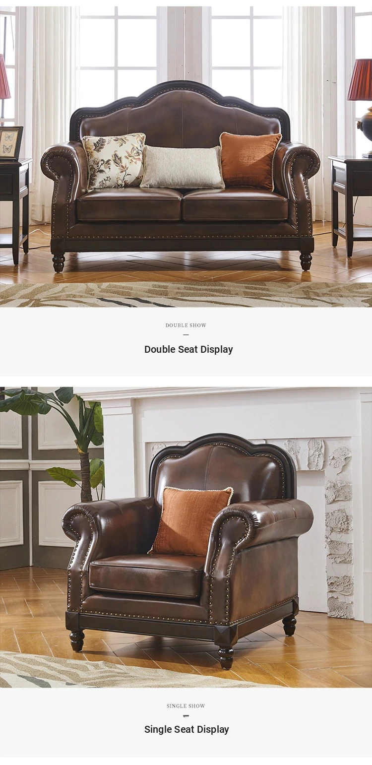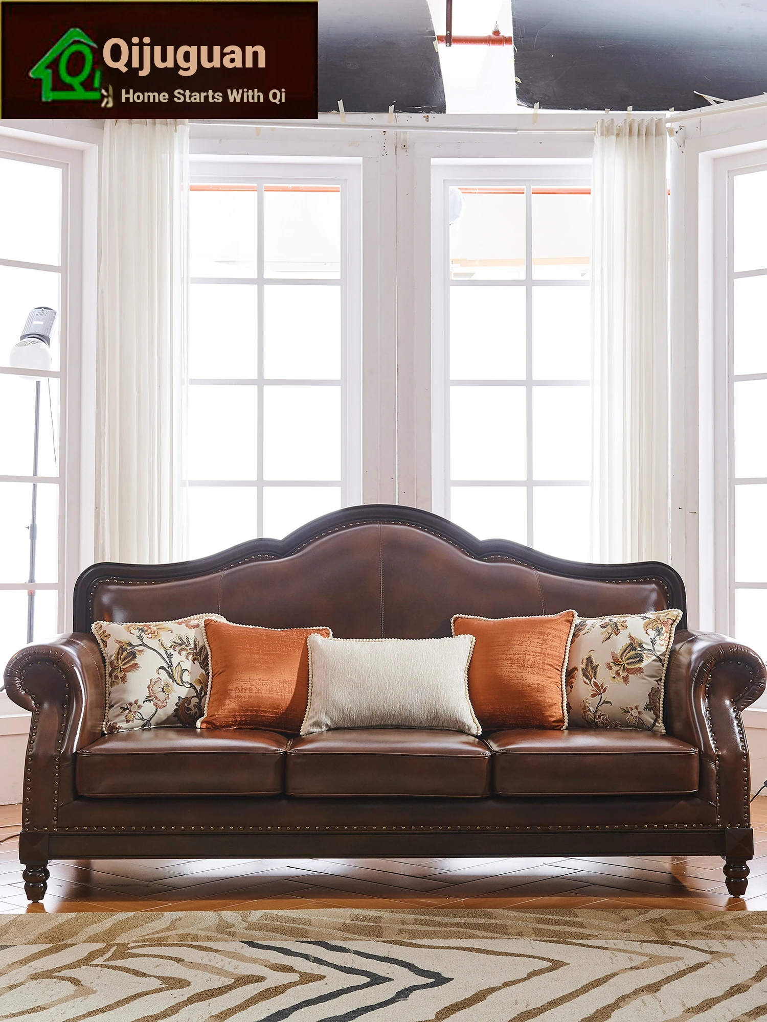 Modern American Genuine Leather Sofa for Spacious Living Rooms - Elegant Three-Seater Crafted from Top-Grain Cowhide, Perfect for Stylish Homes