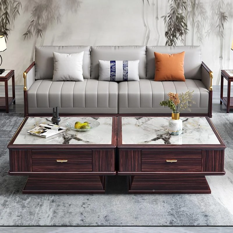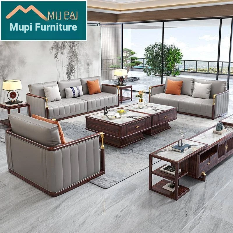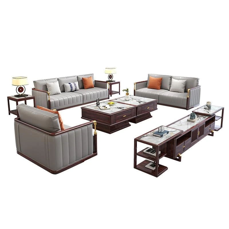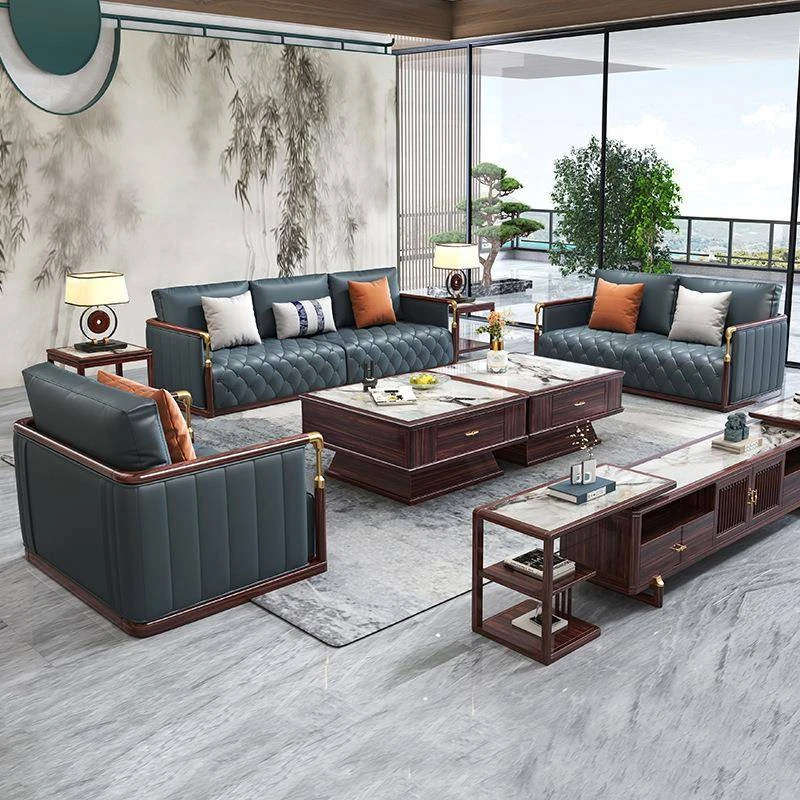 Modern Chinese Style Solid Ebony Wood Genuine Leather Sofa Set 8805-1 - Luxurious and Elegant Design for Spacious Villas and Large Homes