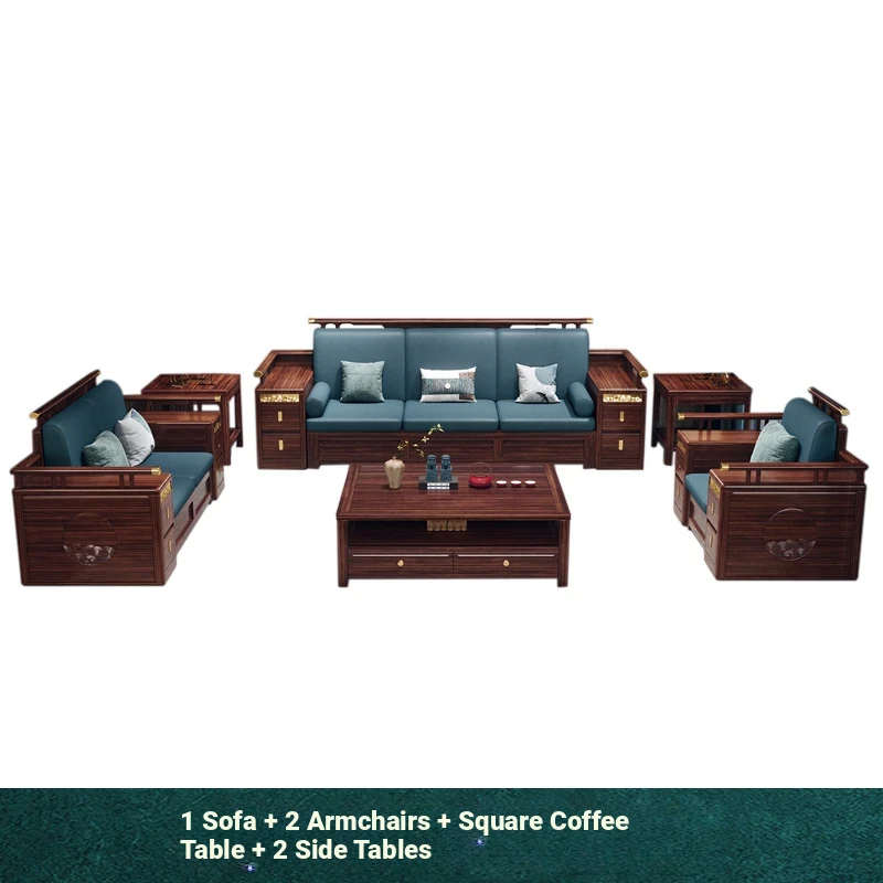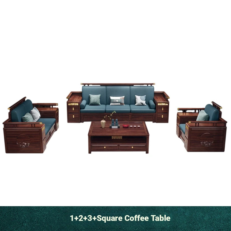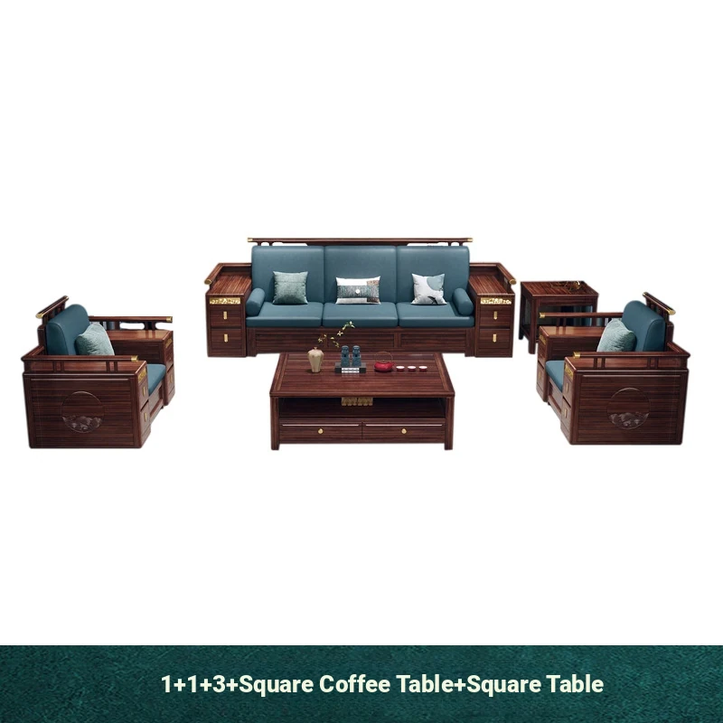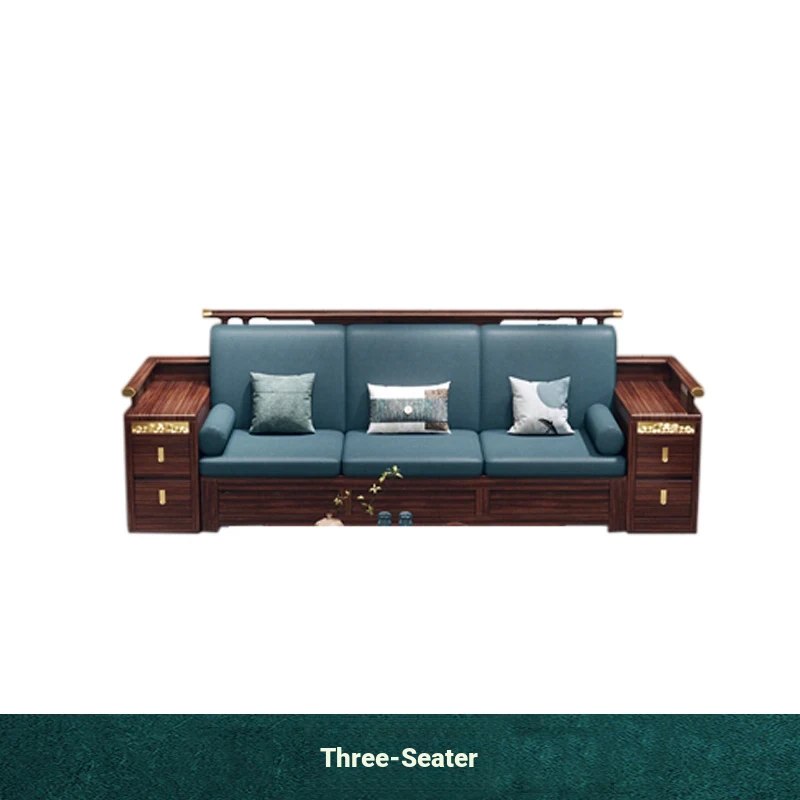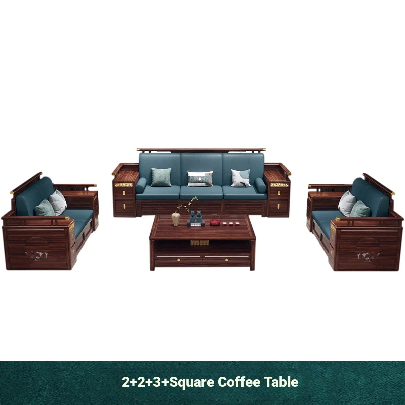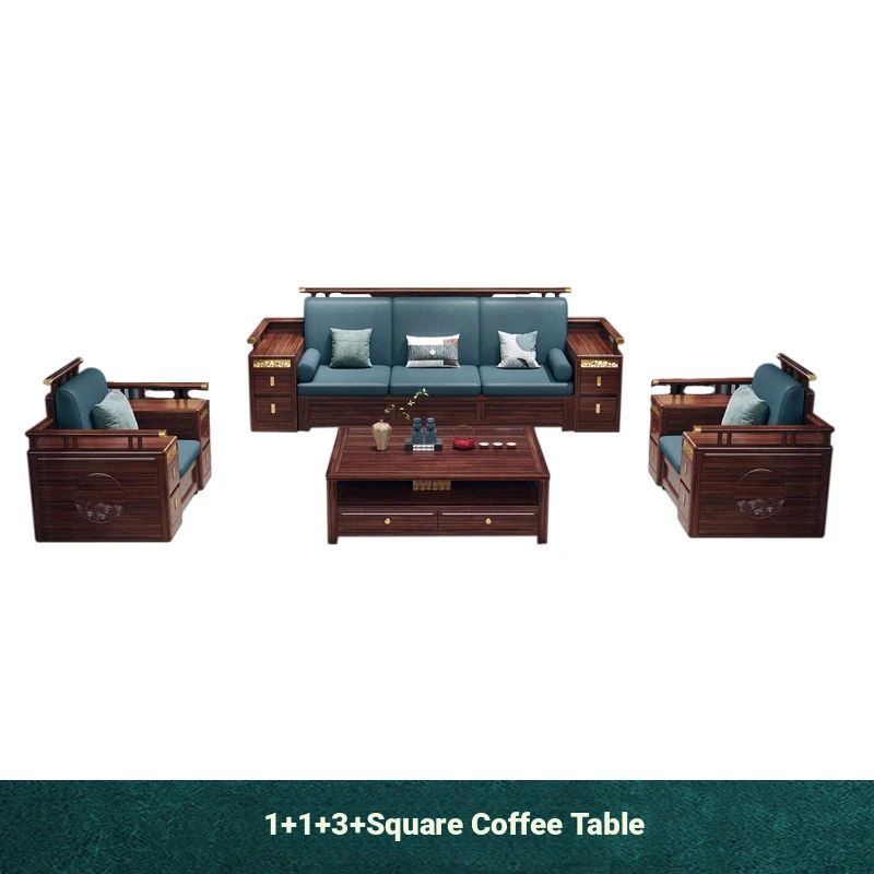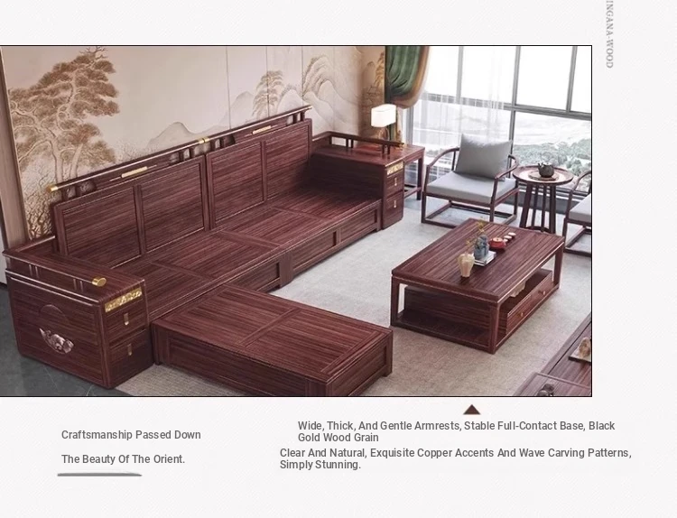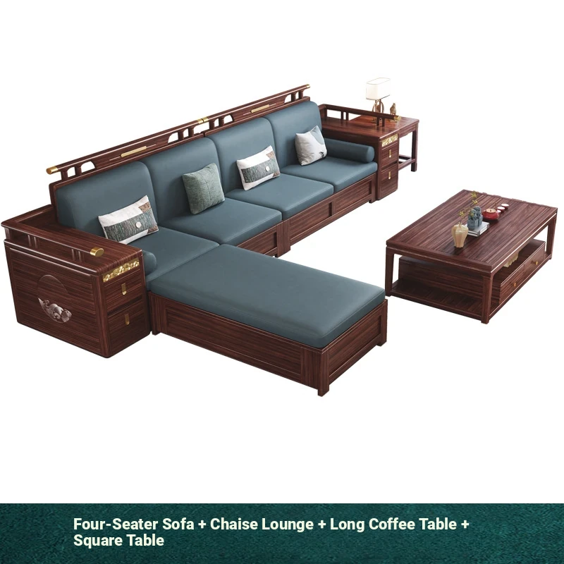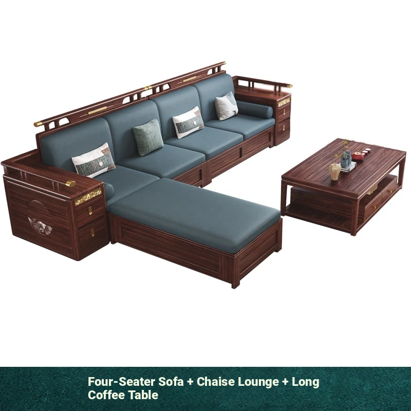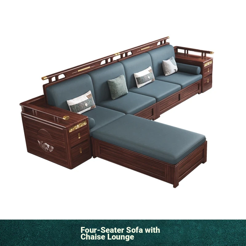 Modern Chinese Style Solid Wood Sofa - Four-Seater Ukin Wood Living Room Couch with Storage - Perfect for Year-Round Comfort and Corner Spaces