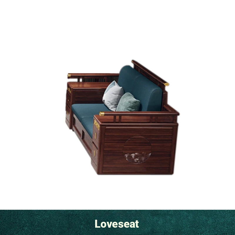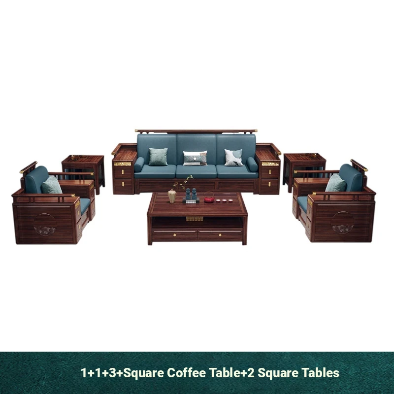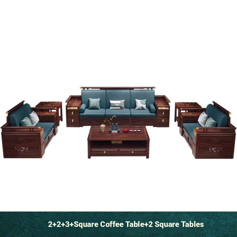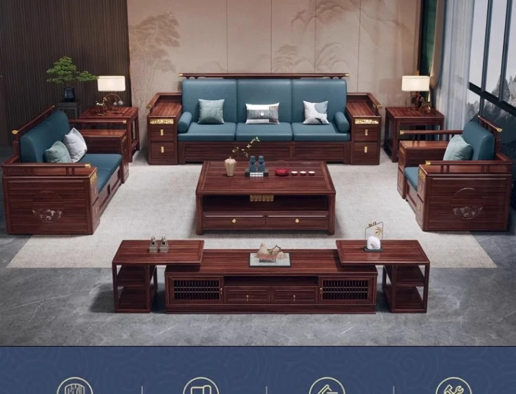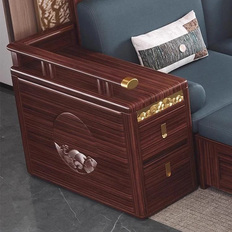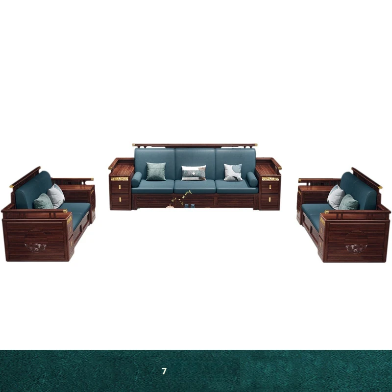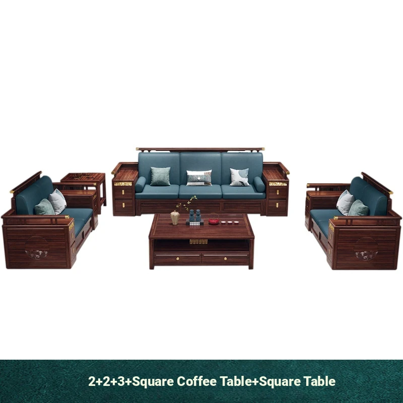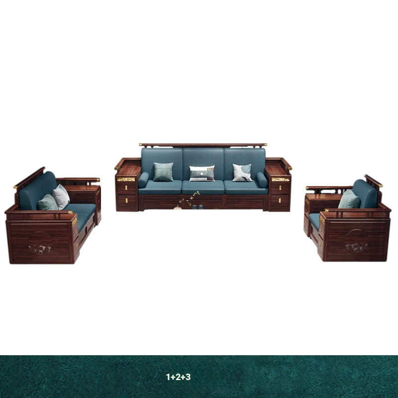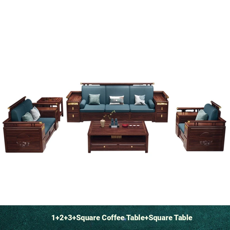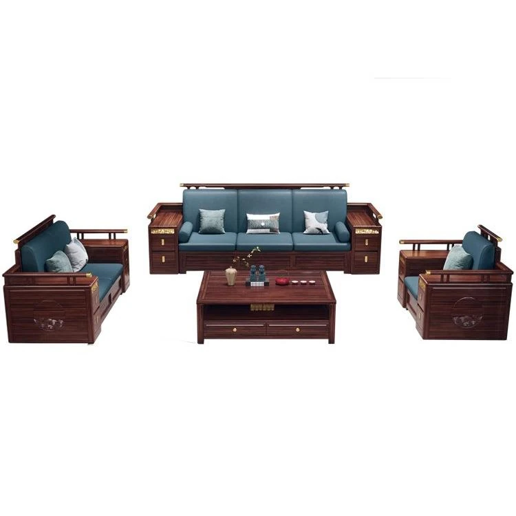 Modern Chinese Style Solid Wood Sofa - Four-Seater Ukin Wood Living Room Couch with Storage - Perfect for Year-Round Comfort and Corner Spaces