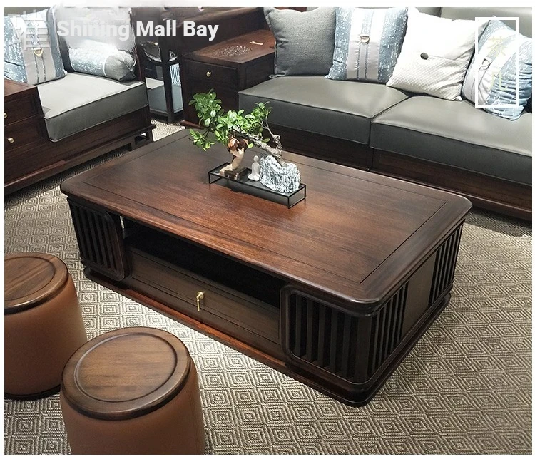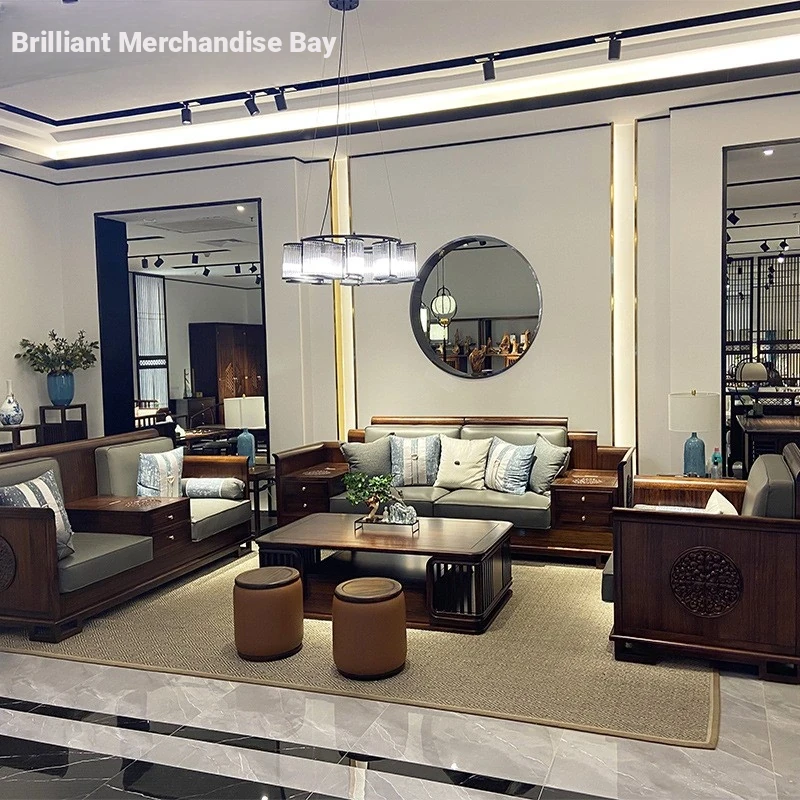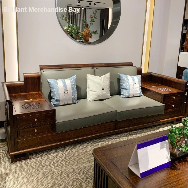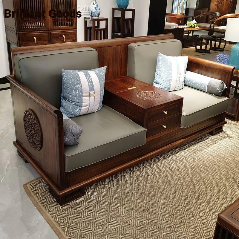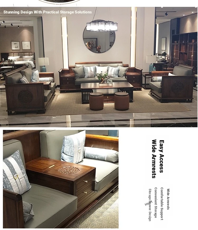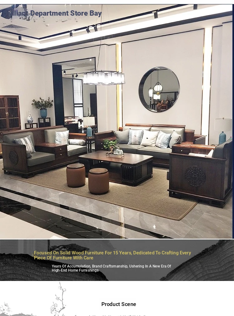 Modern Chinese Style Solid Wood Sofa Set - High-End Large and Small Living Room Furniture, Featuring Luxurious Black Gold Wood for Elegant Villas and Homes.