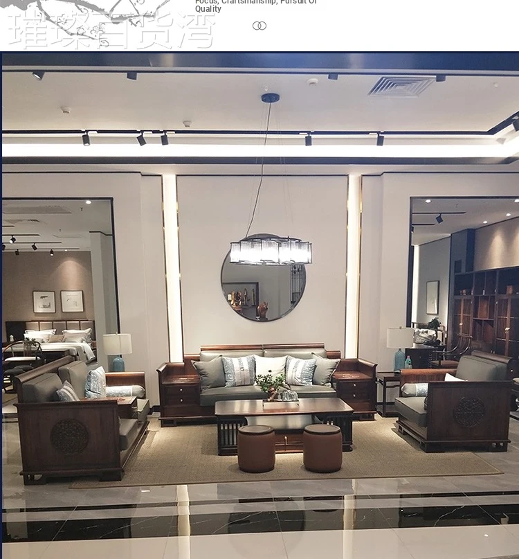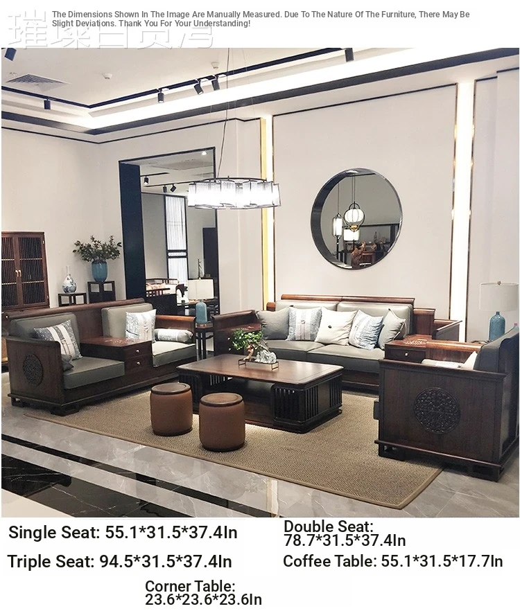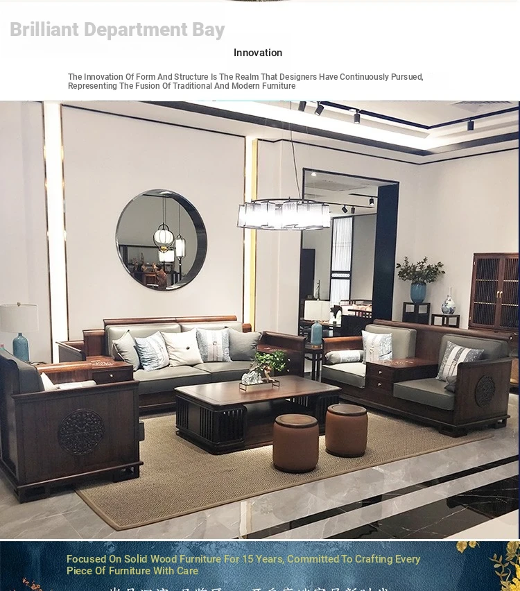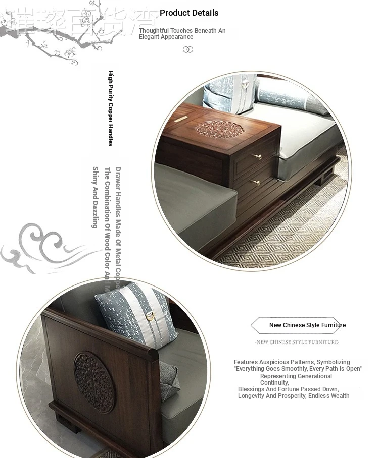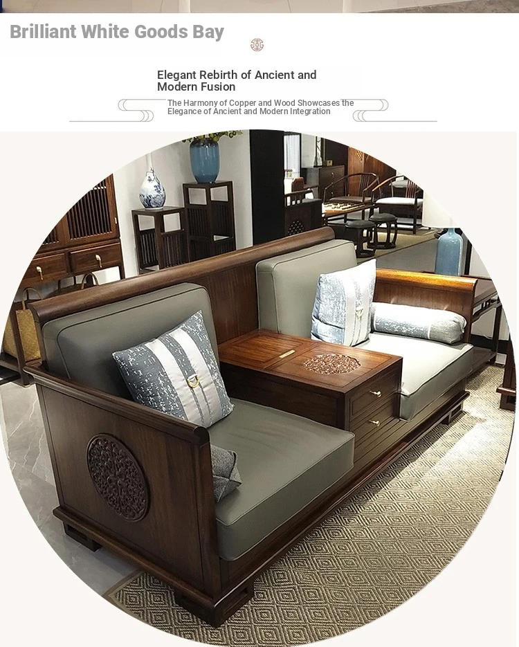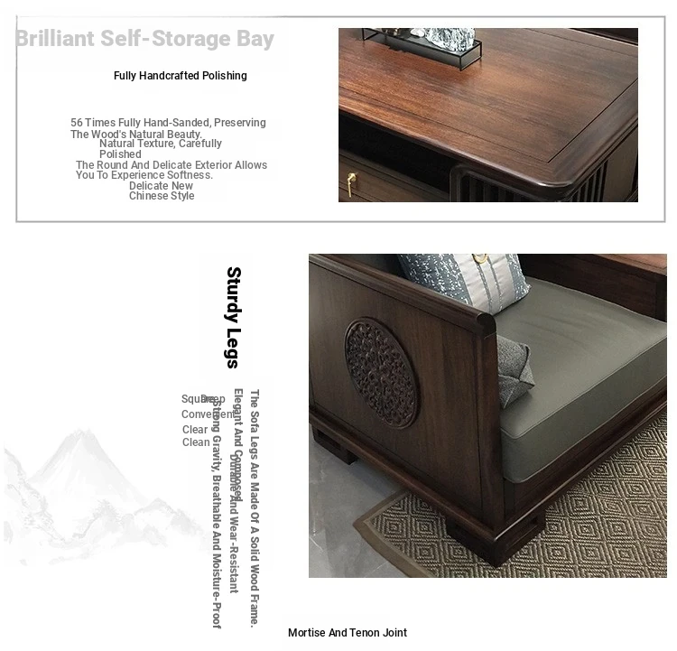 Modern Chinese Style Solid Wood Sofa Set - High-End Large and Small Living Room Furniture, Featuring Luxurious Black Gold Wood for Elegant Villas and Homes.