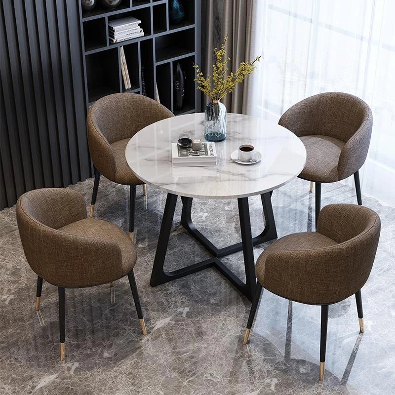 1 Table 4 black foot chair brown cotton linen imitation marble pattern