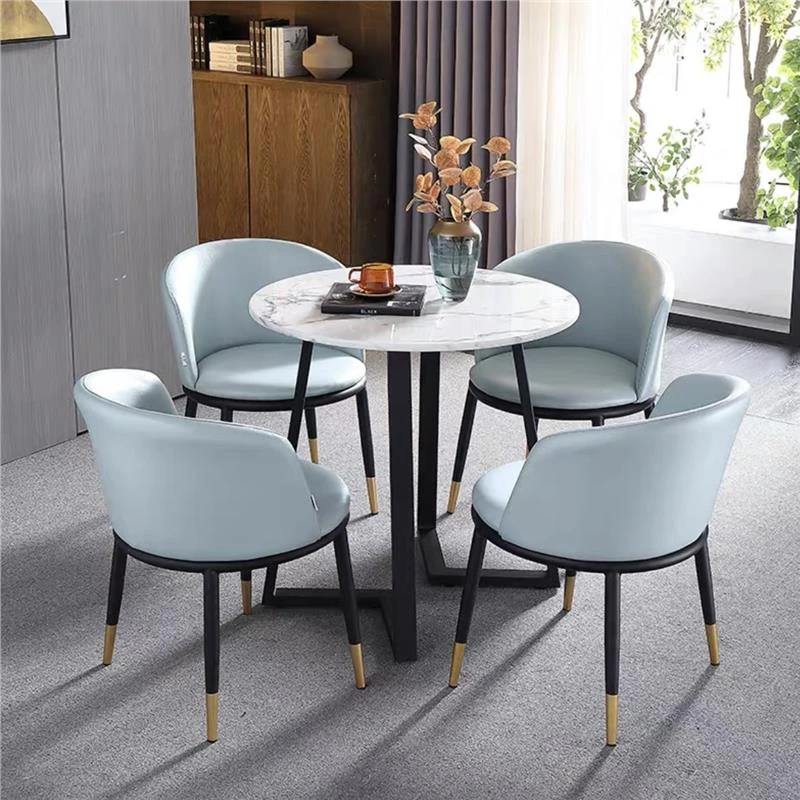 One table four chairs Tiffany blue PU leather gold feet White Matte