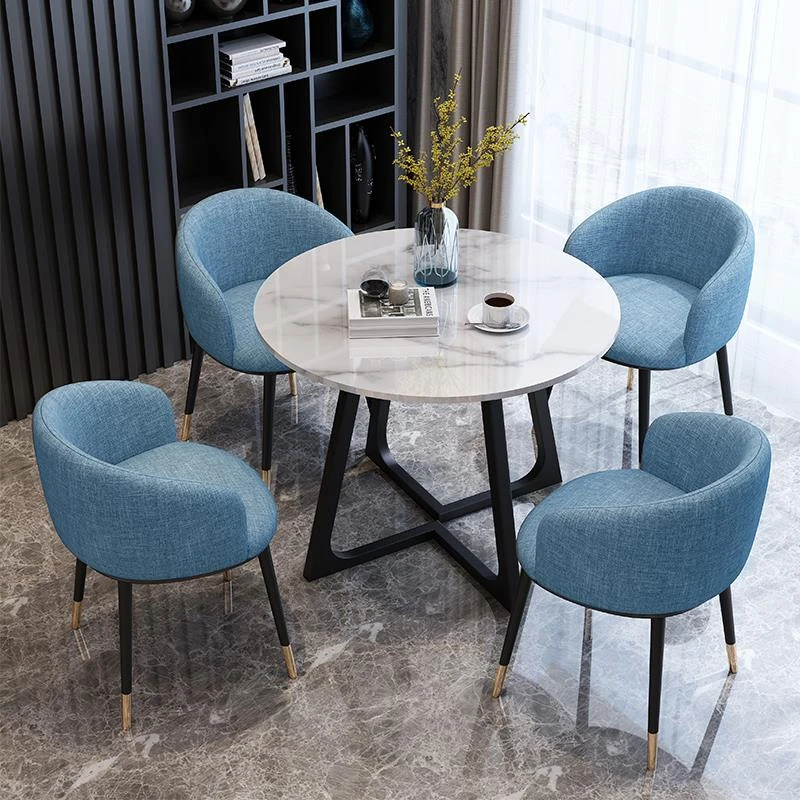1 Table 4 black foot chair blue cotton linen imitation marble pattern