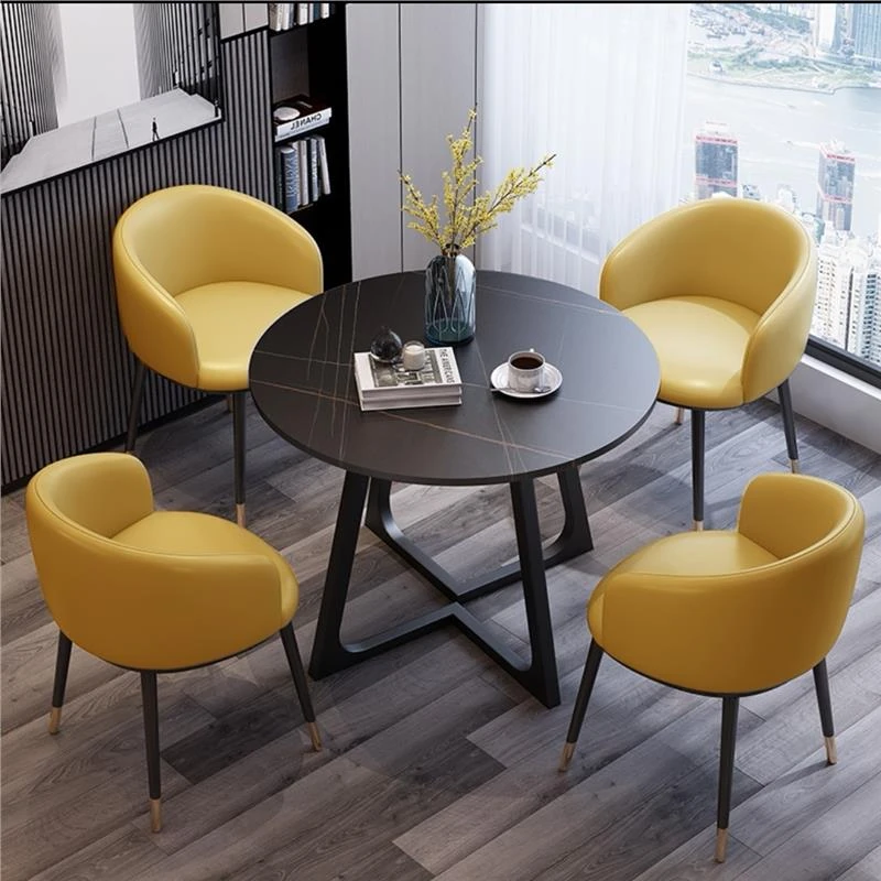 1 Table 4 black foot chair yellow cotton and linen imitation marble pattern