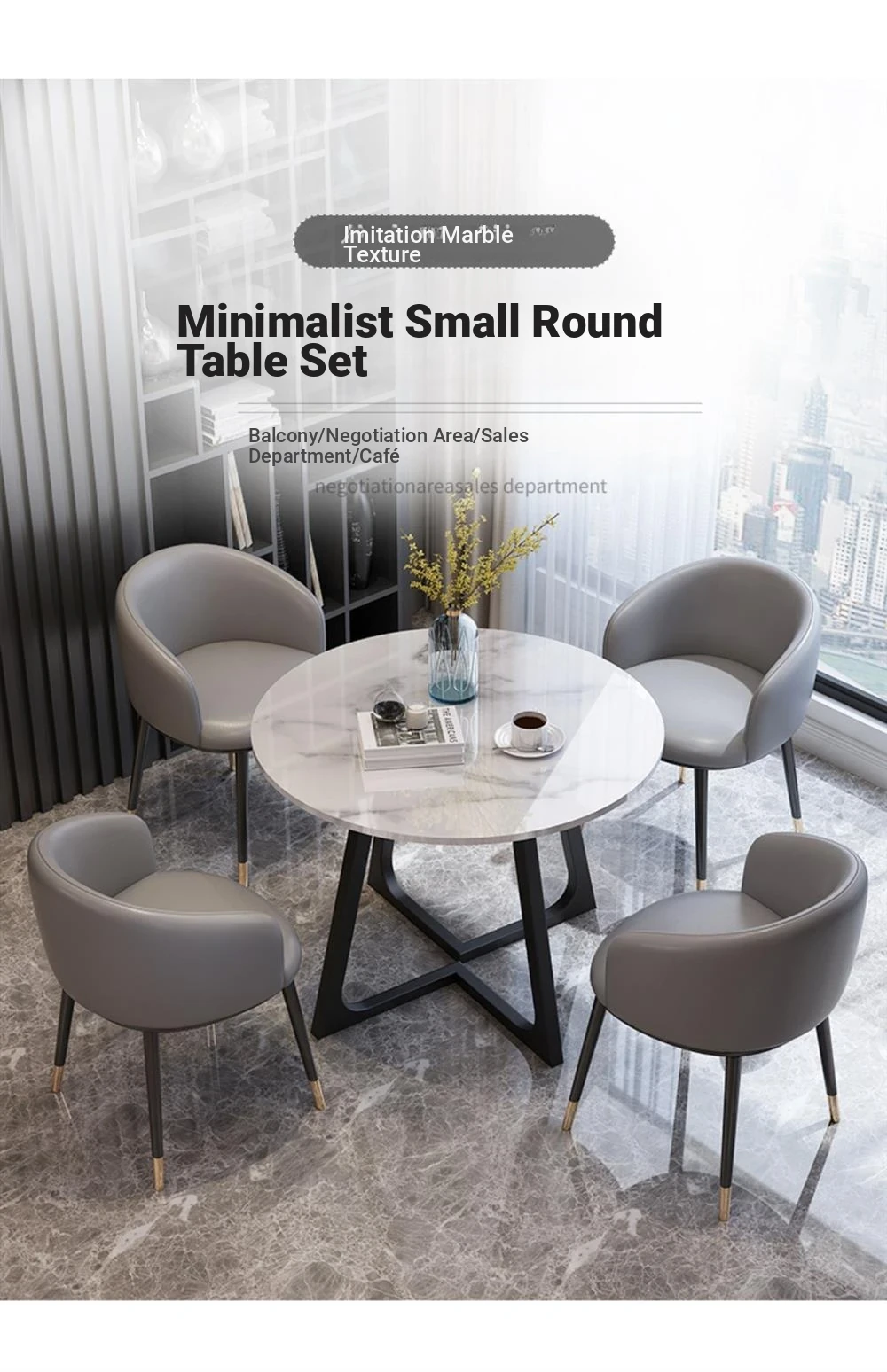 1 Table 4 black foot chair gray cotton linen imitation marble pattern
