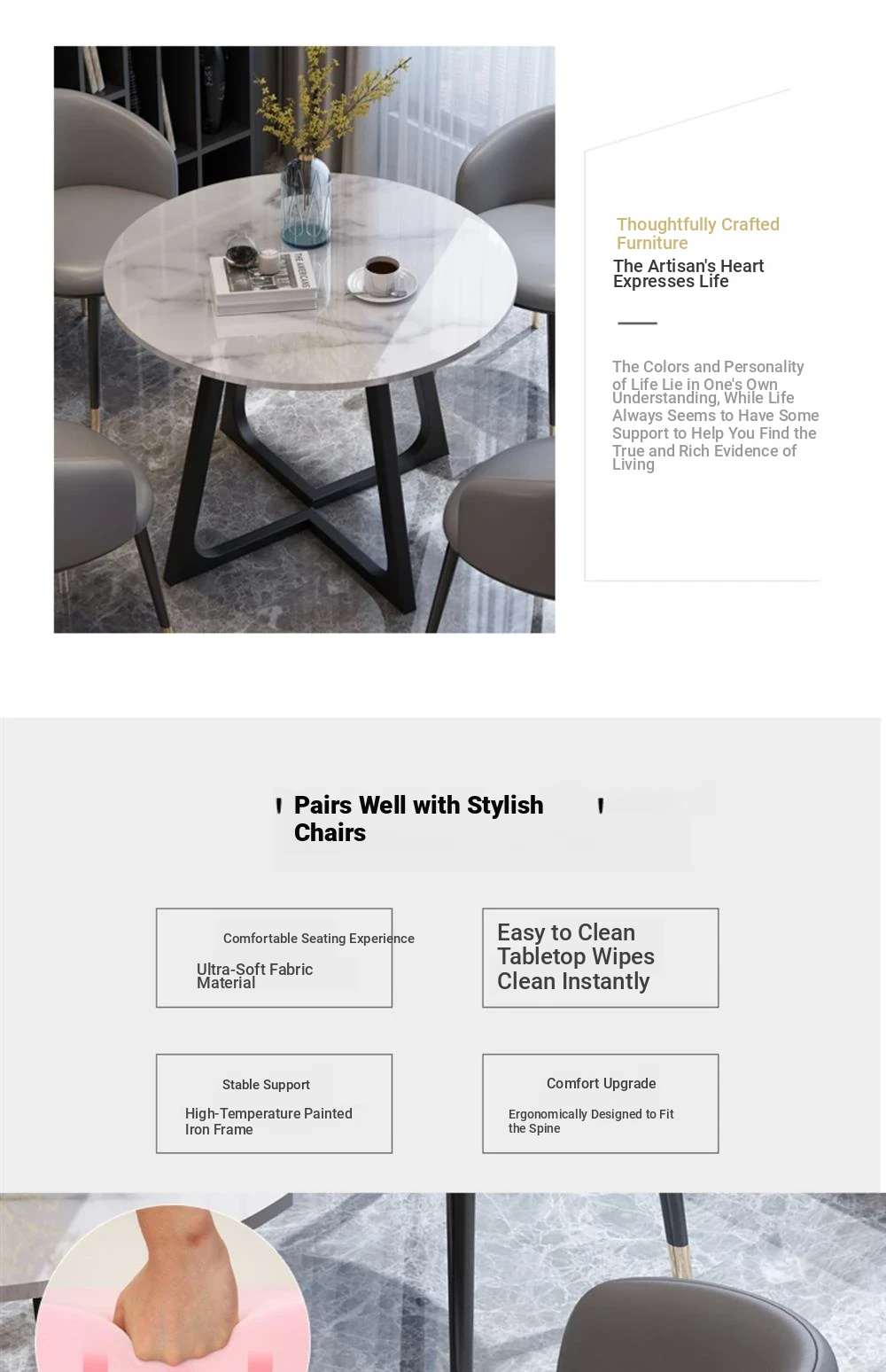 1 Table 3 black feet chair photographed indicate color imitation marble pattern