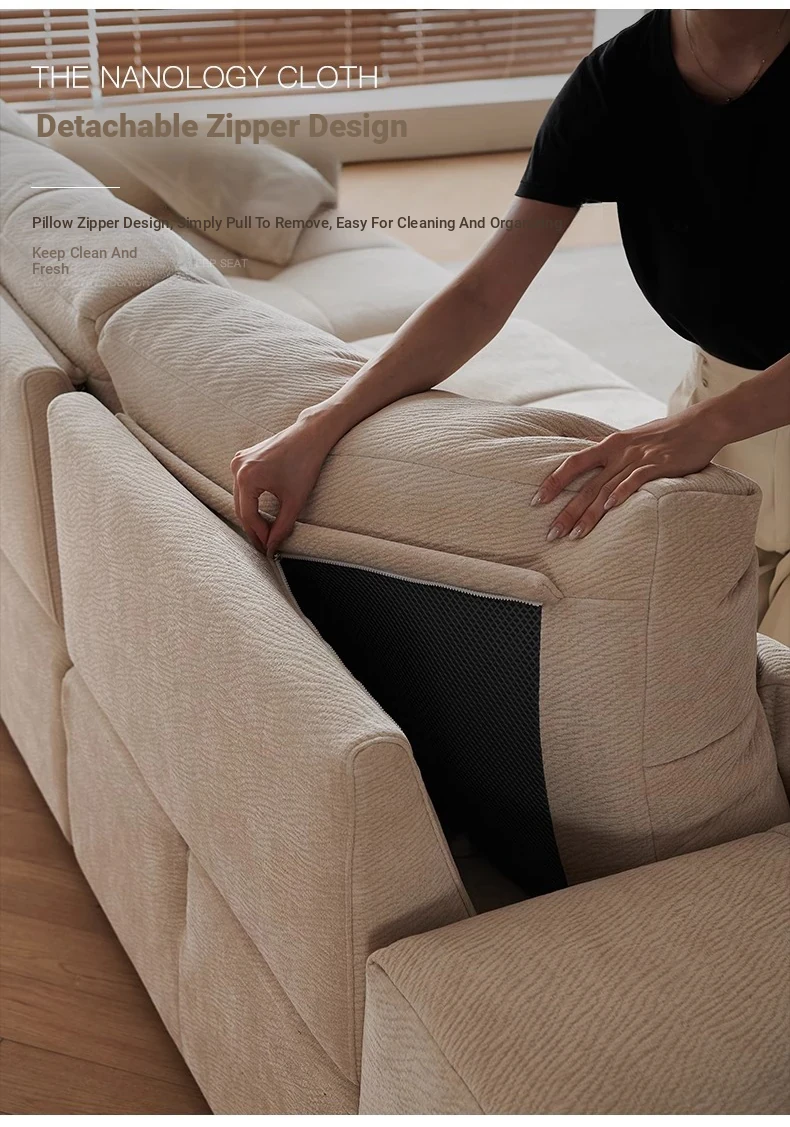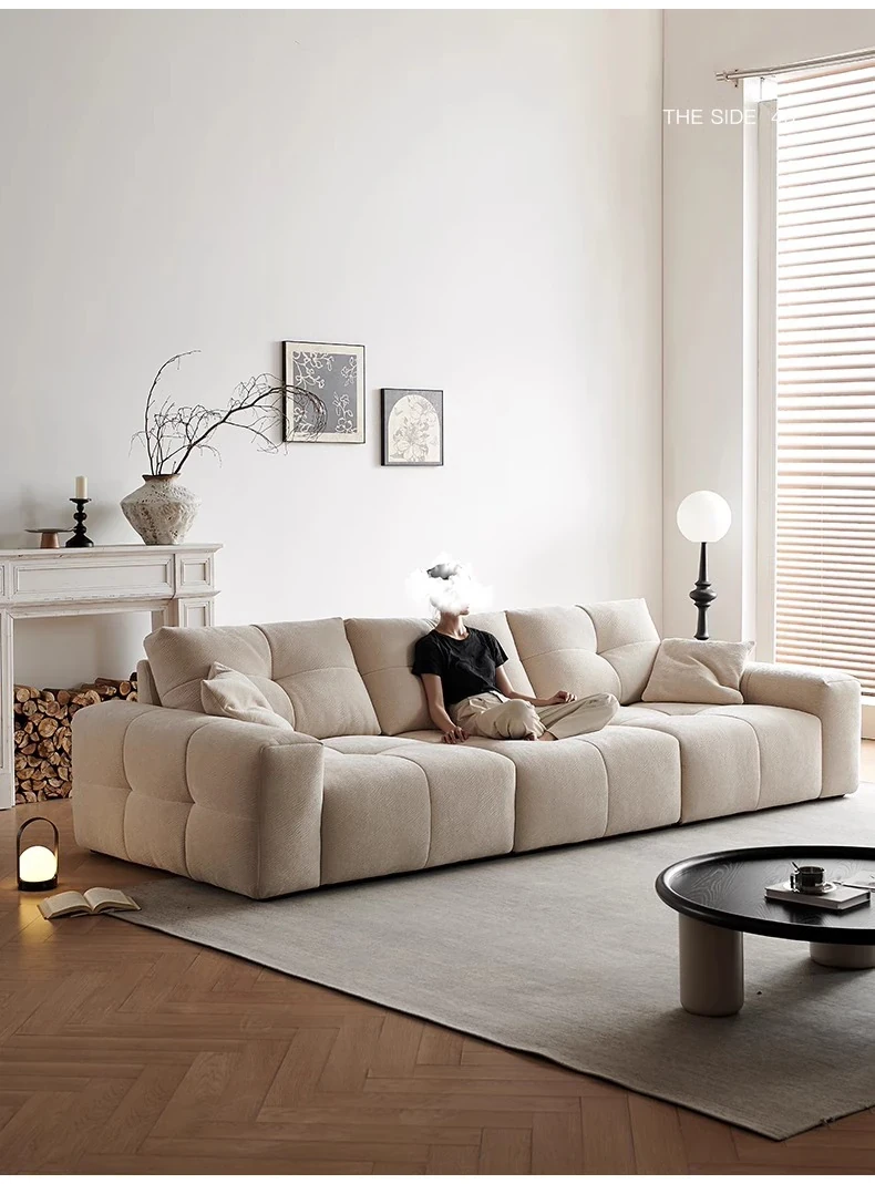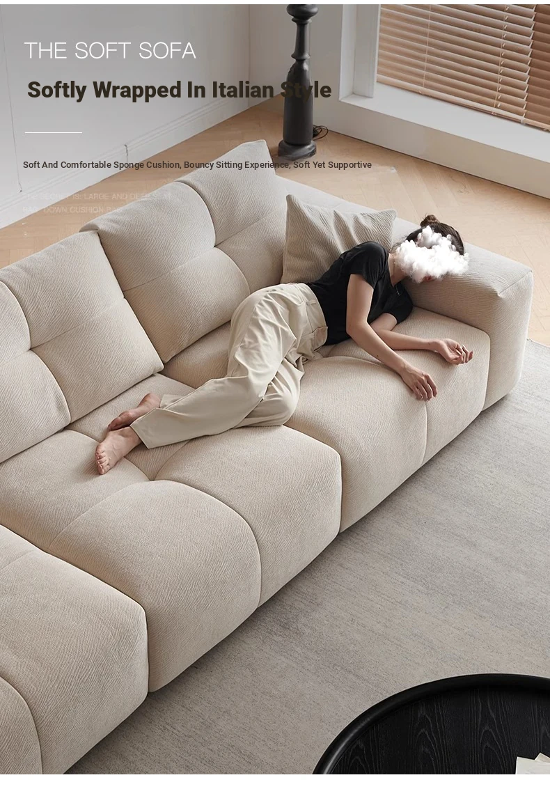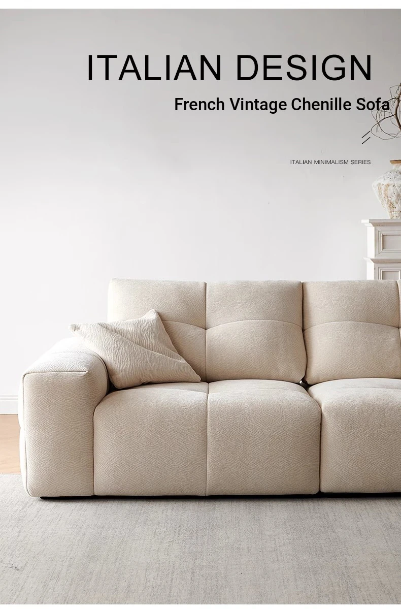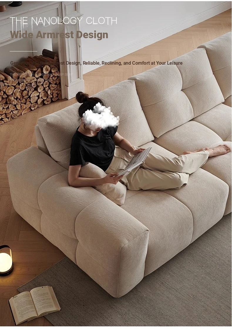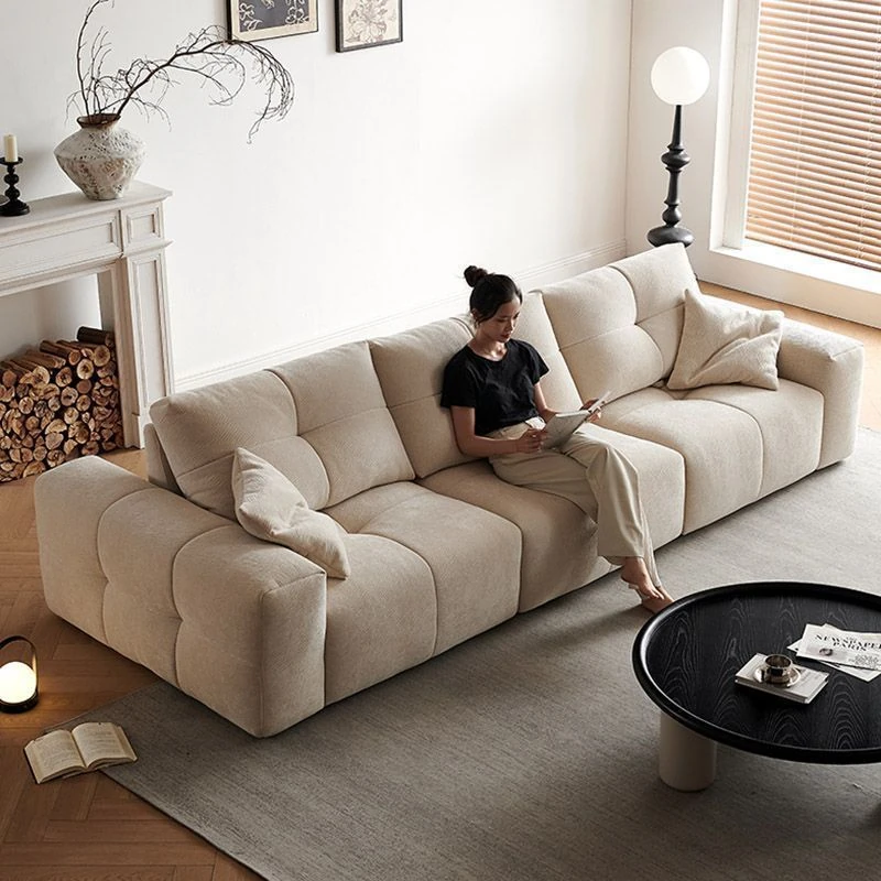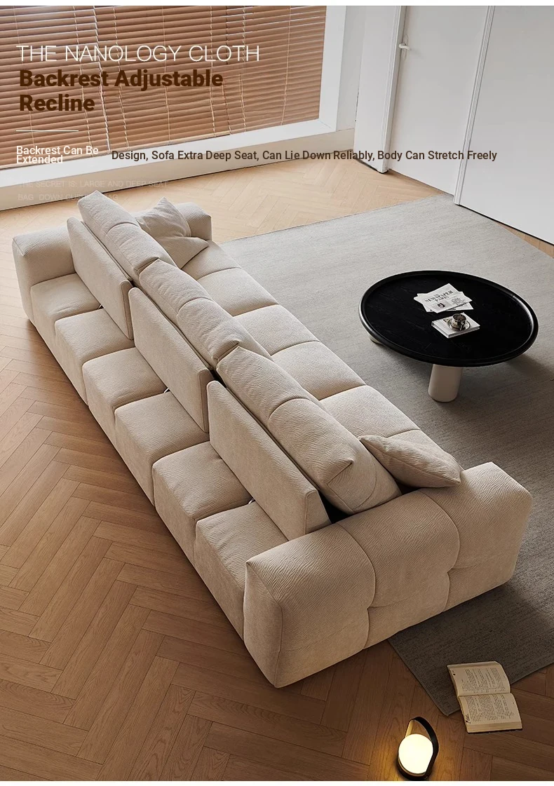 Modern Minimalist Cream Fabric Sofa with Adjustable Backrest - Pixel Sofa for Living Room, Deep Seat Chenille Material, Perfect for Style and Comfort